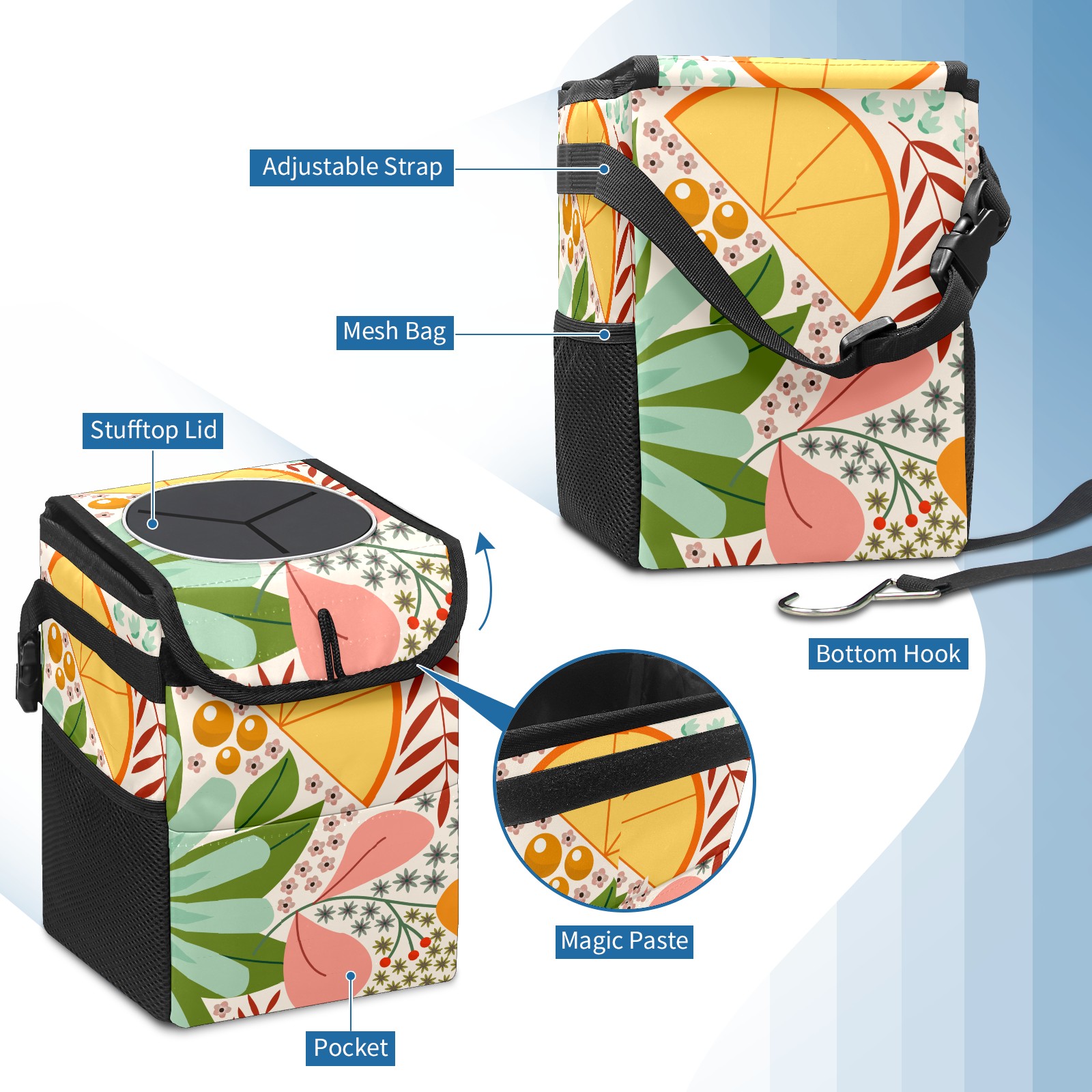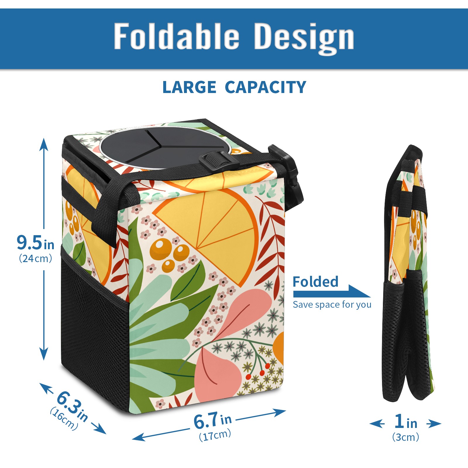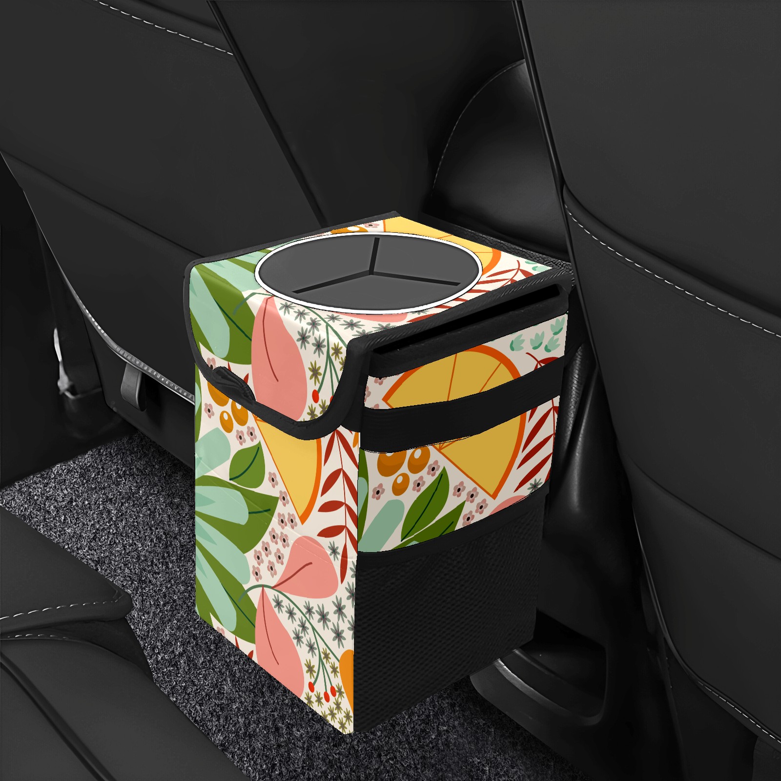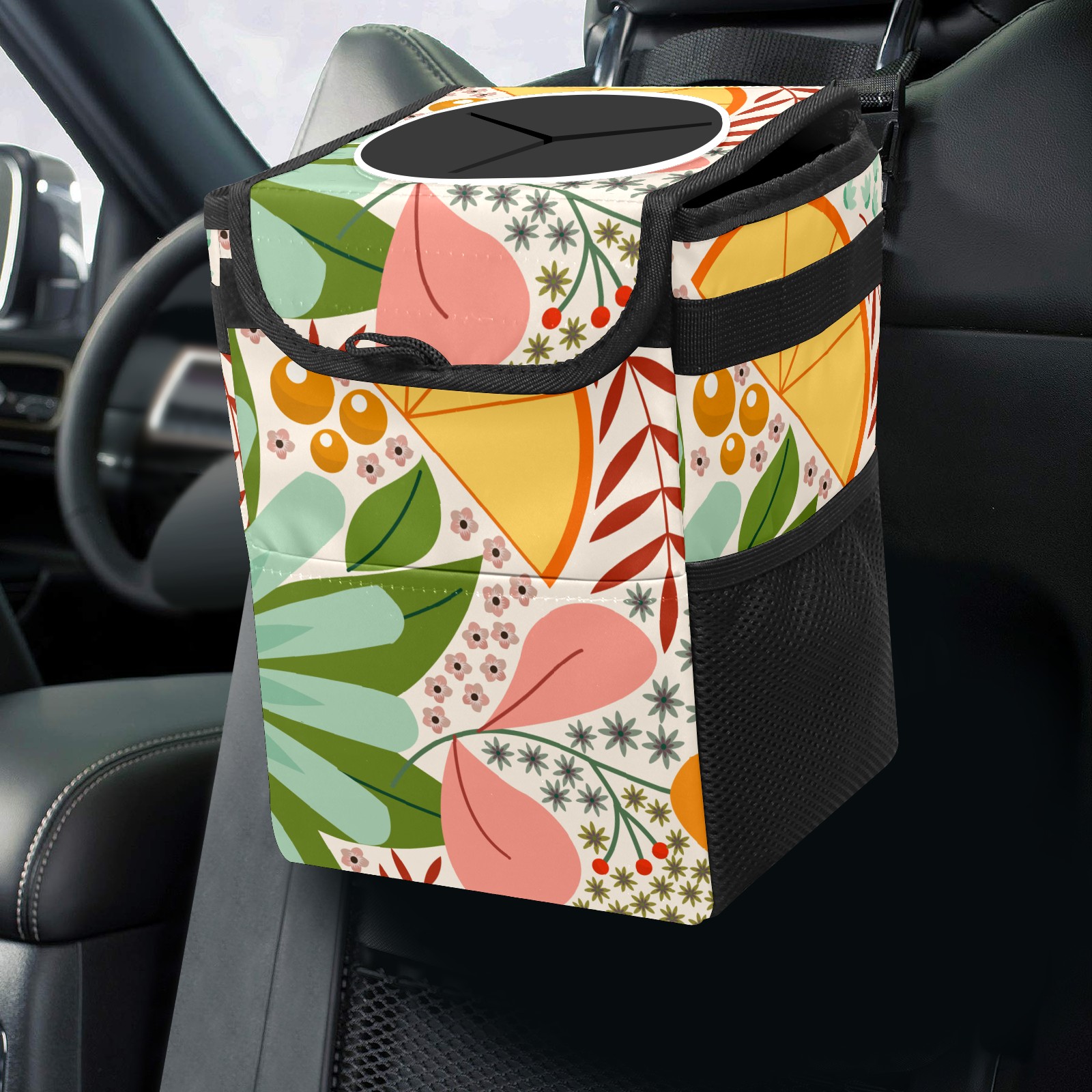 Car Garbage Can — Multi-functional, Lightweight Portable, Reusable Vehicle Trash Can, Waterproof with Sufficient Storage Capacity Floral Background