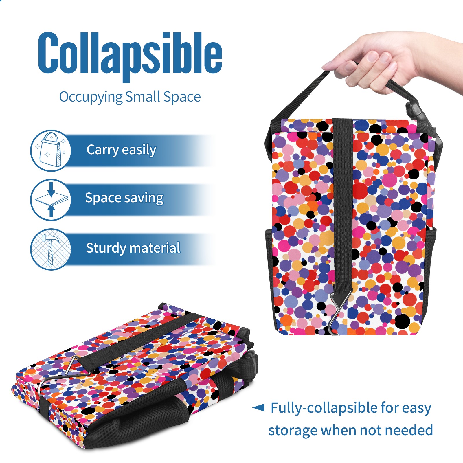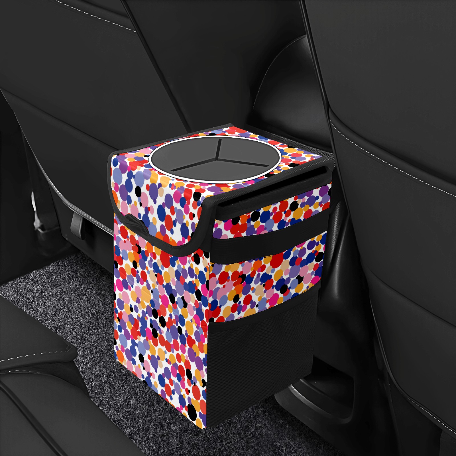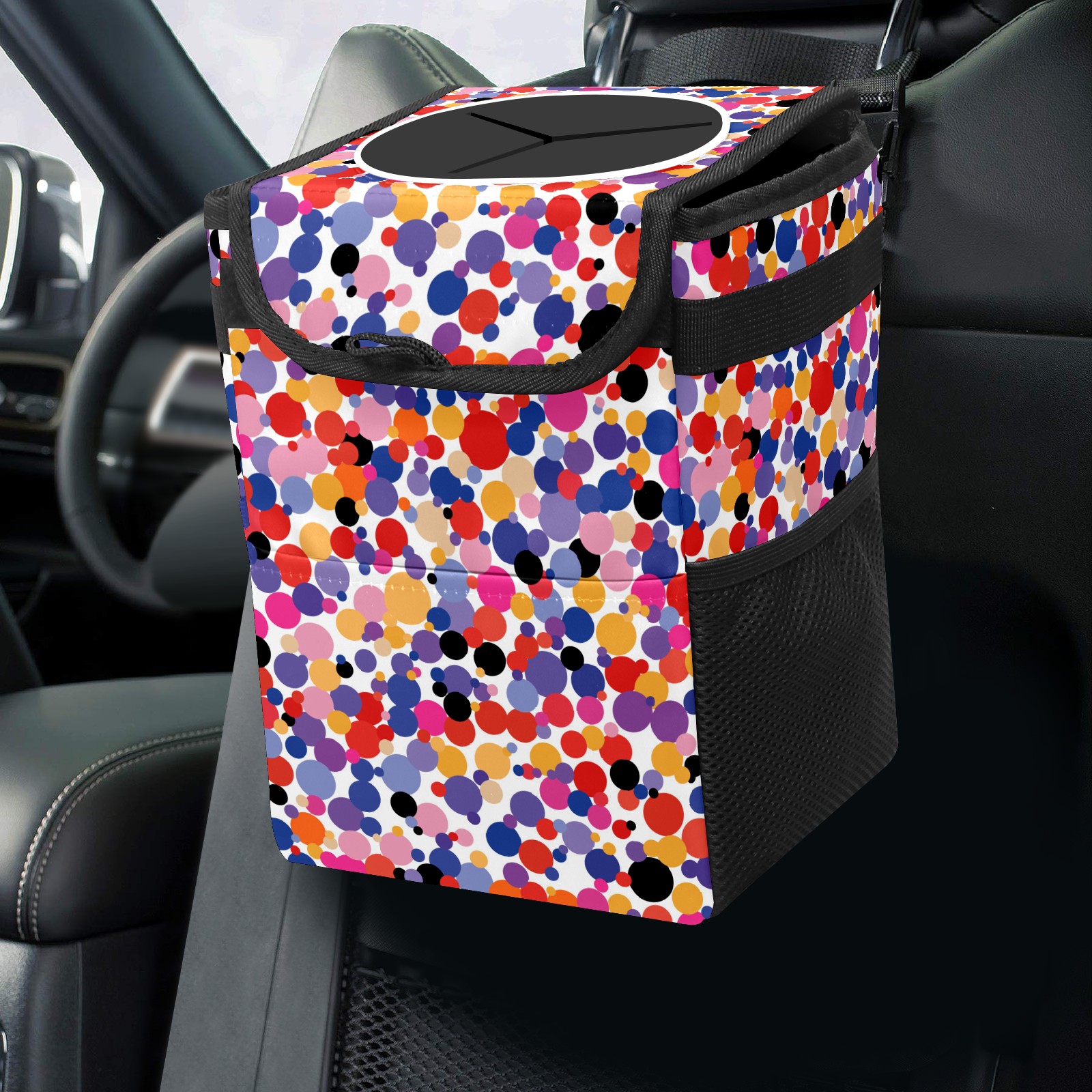 Car Garbage Can — Multi-functional, Lightweight Portable, Reusable Vehicle Trash Can, Waterproof with Sufficient Storage Capacity Colorful Dotted