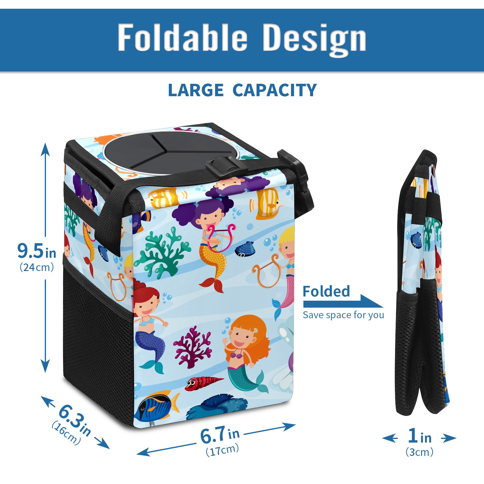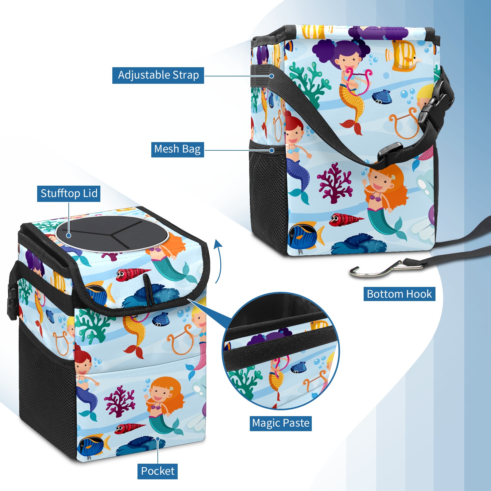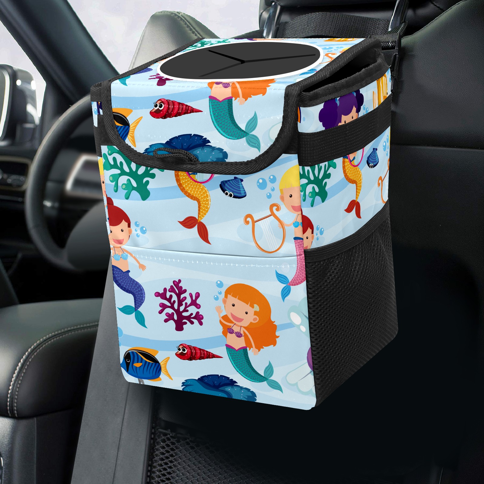 Car Garbage Can — Multi-functional, Lightweight Portable, Reusable Vehicle Trash Can, Waterproof with Sufficient Storage Capacity Mermaid Coral