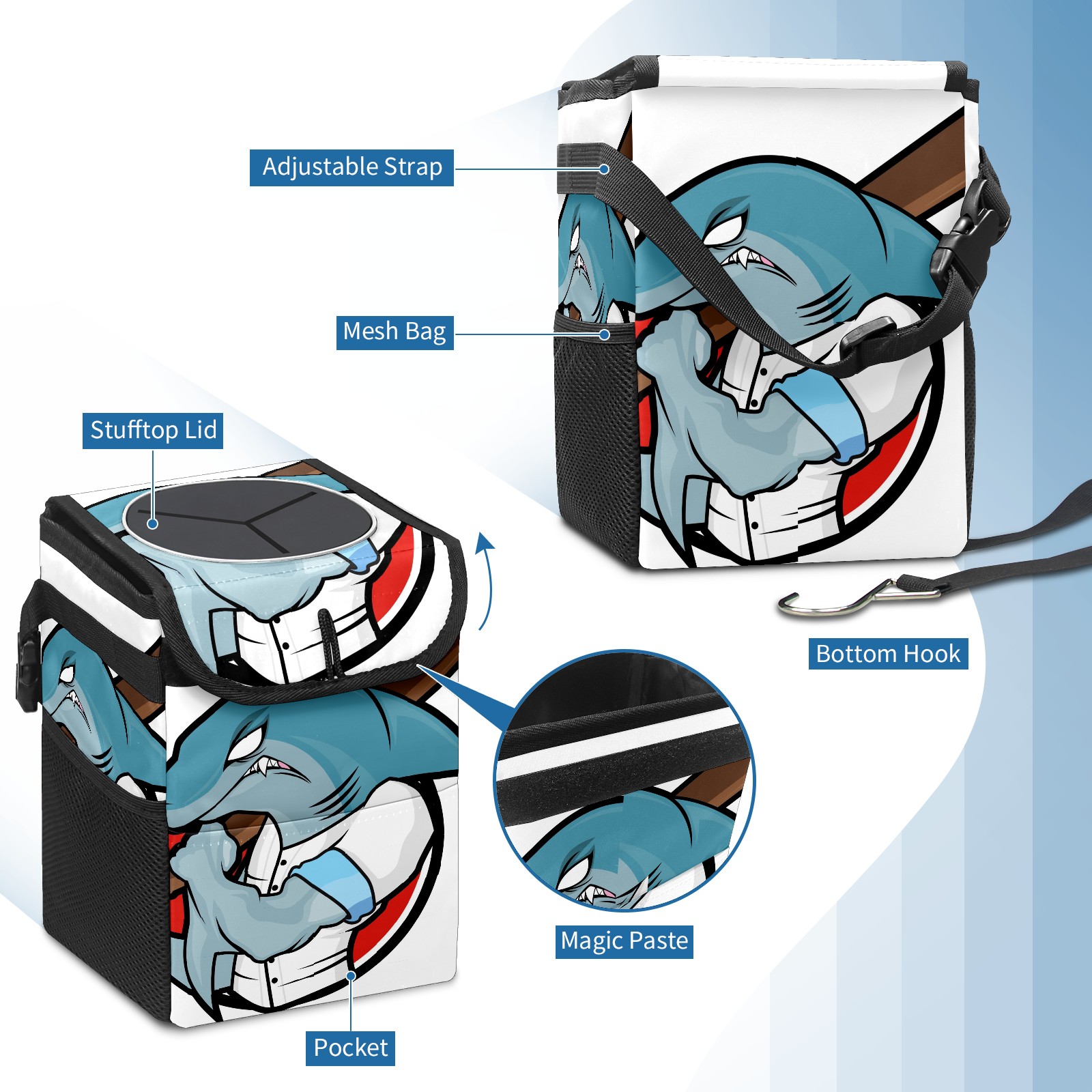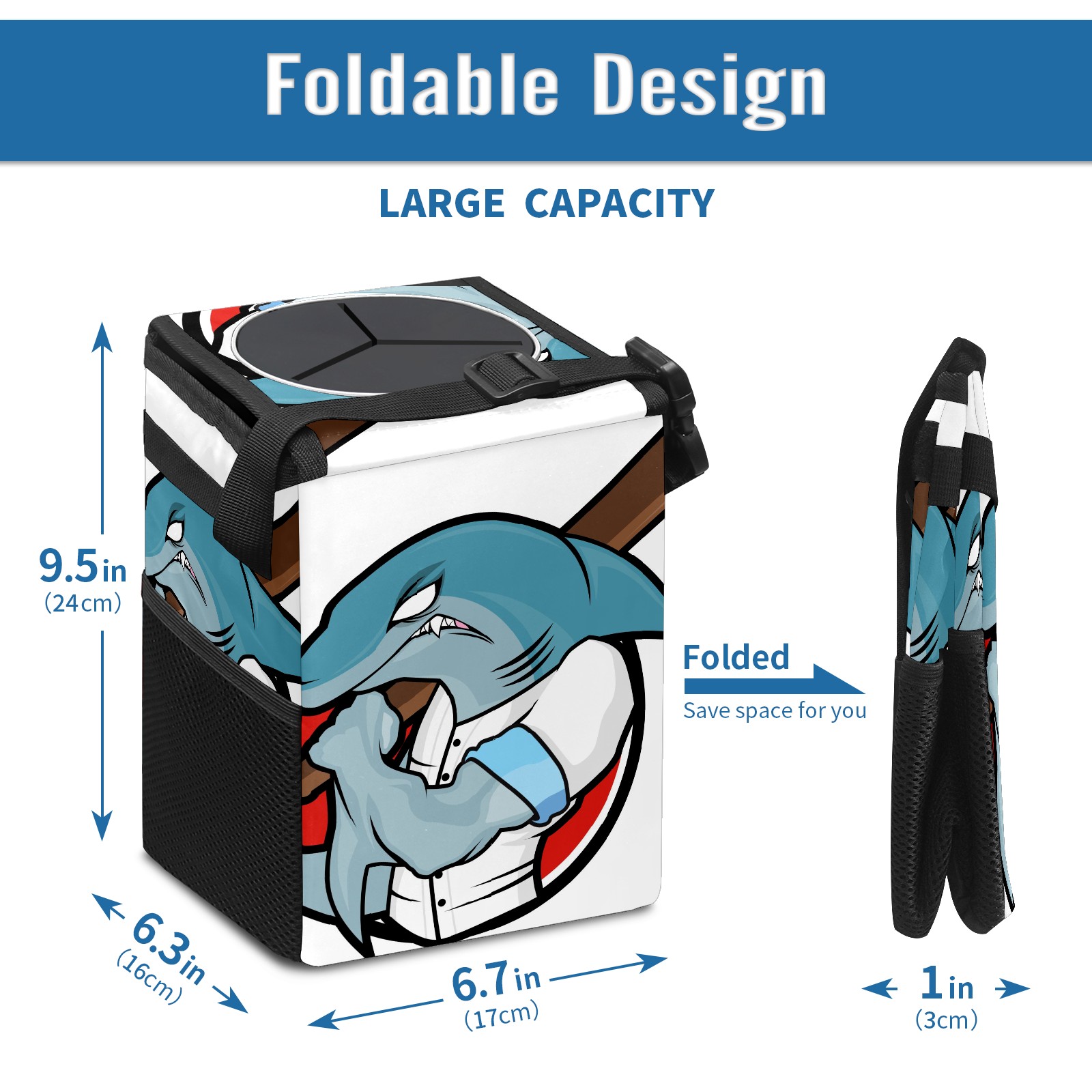 Car Garbage Can — Multi-functional, Lightweight Portable, Reusable Vehicle Trash Can, Waterproof with Sufficient Storage Capacity Baseball Shark