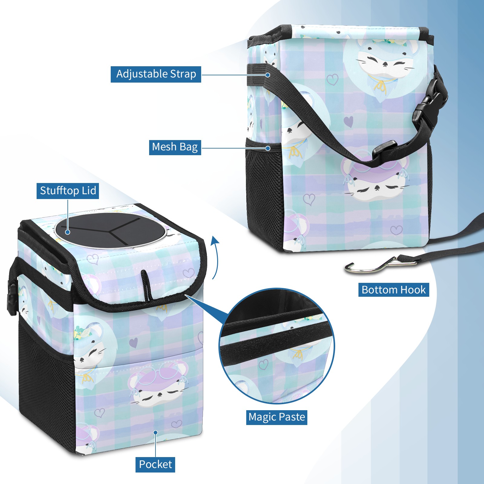Car Garbage Can — Multi-functional, Lightweight Portable, Reusable Vehicle Trash Can, Waterproof with Sufficient Storage Capacity Cute Animal