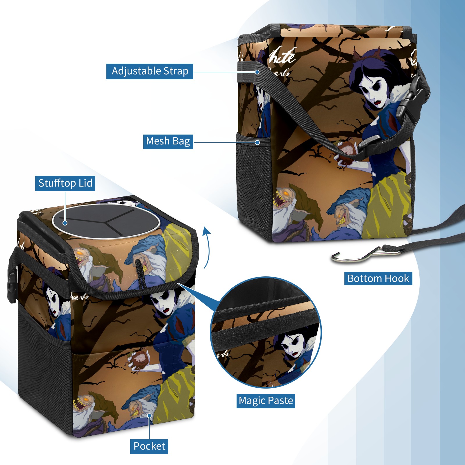 • <p>Keep your car neat with this practical car trash can—built for durability, versatility, and on-the-go convenience! Crafted from quality twill fabric with a waterproof lining, it prevents leaks, keeping seats/floors clean. Clean easily: empty directly or secure a disposable bag with side clips. Adjustable pull cord fits floor, seat, or headrest. 9.5x6.3x6.7 inches, ample space for daily trash, folds flat for storage. More than a trash can, it doubles as a storage bag for cups, toys, docs, and small gadgets—must-have car interior accessory. Installs in seconds on seats, console, or gear shift; adjustable straps keep it stable, no slipping on bumpy roads. Perfect gift for new car owners!</p>