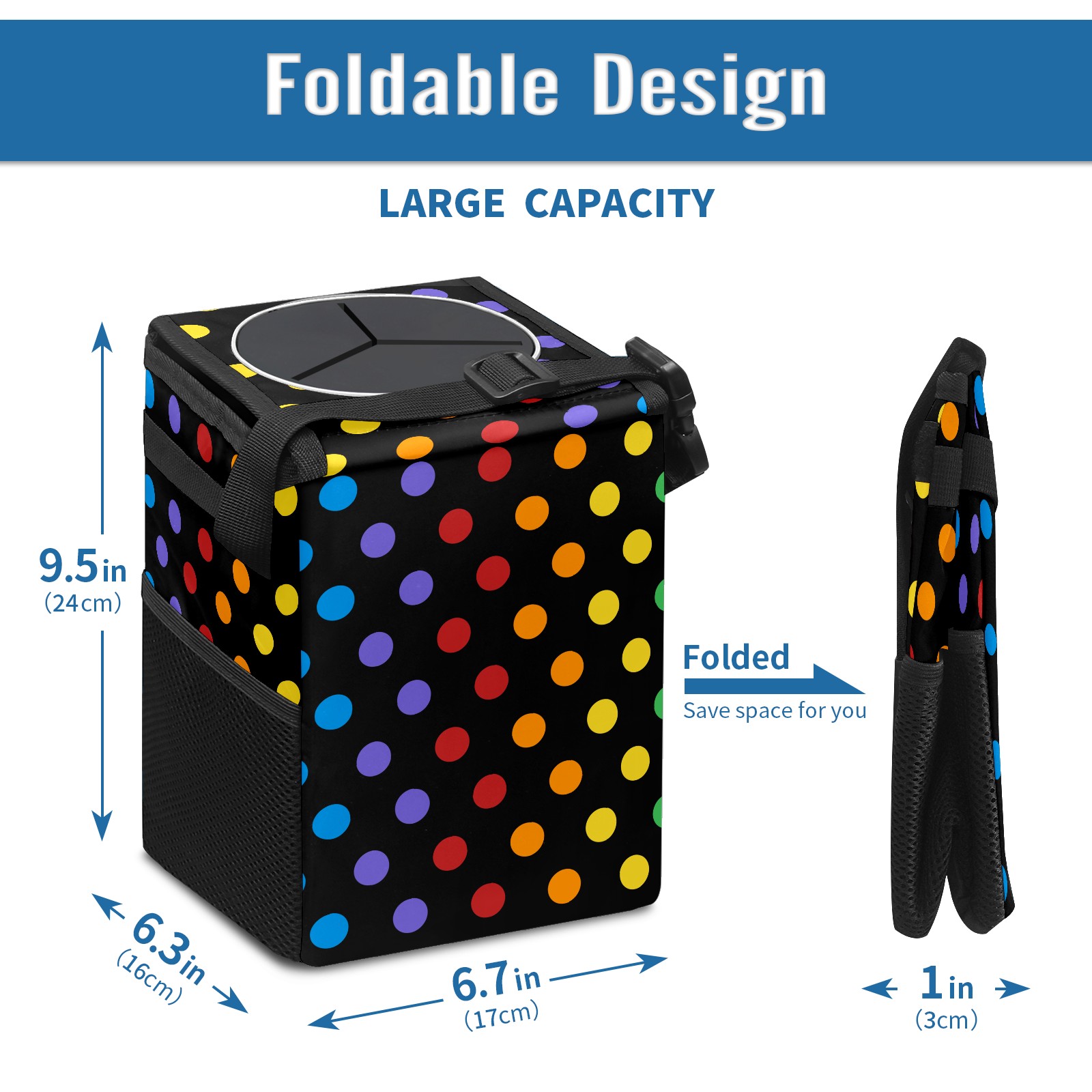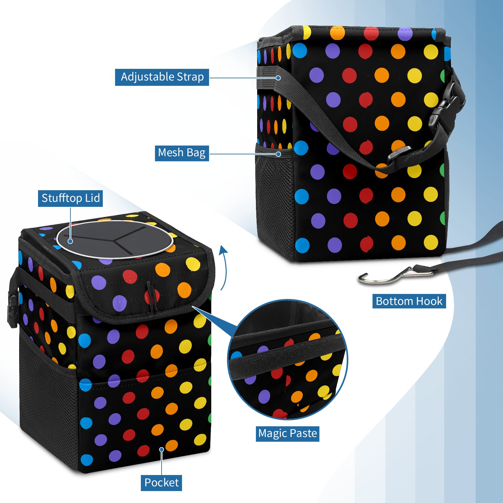 Car Garbage Can — Multi-functional, Lightweight Portable, Reusable Vehicle Trash Can, Waterproof with Sufficient Storage Capacity Rainbowpattern