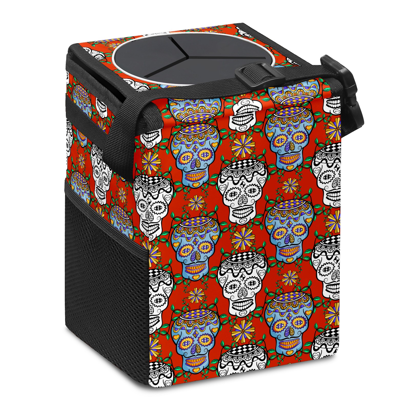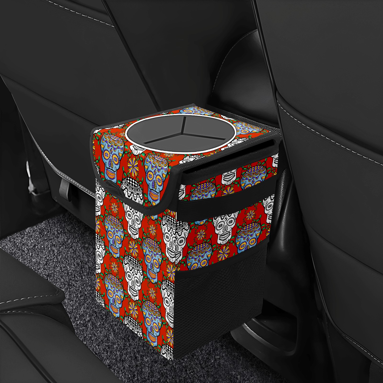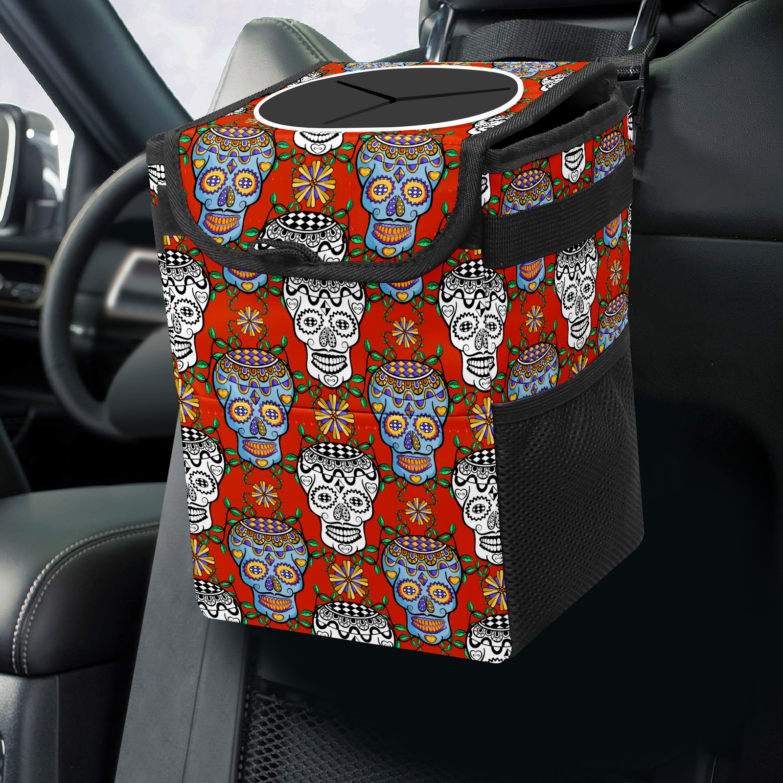 Car Garbage Can — Multi-functional, Lightweight Portable, Reusable Vehicle Trash Can, Waterproof with Sufficient Storage Capacity Art Skull