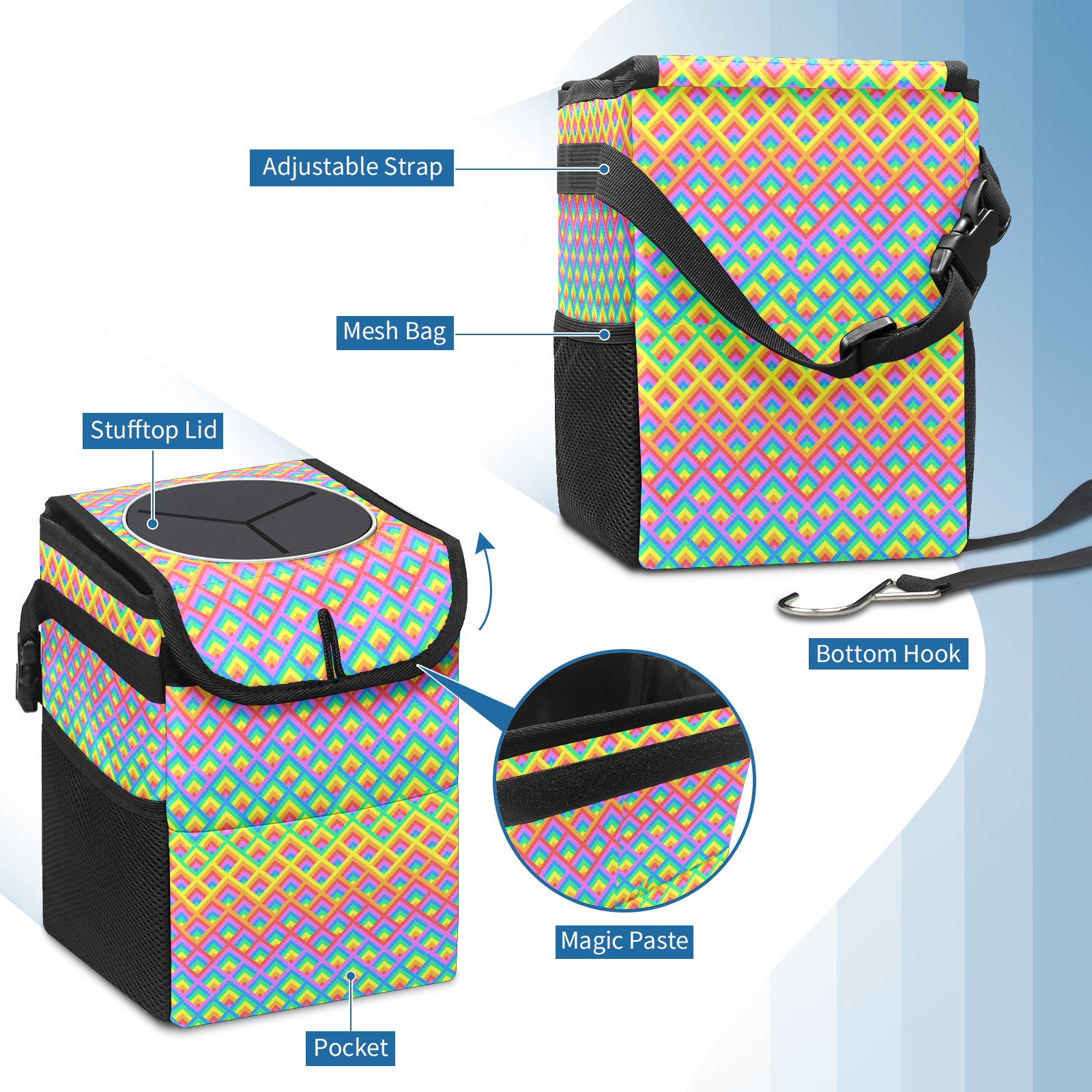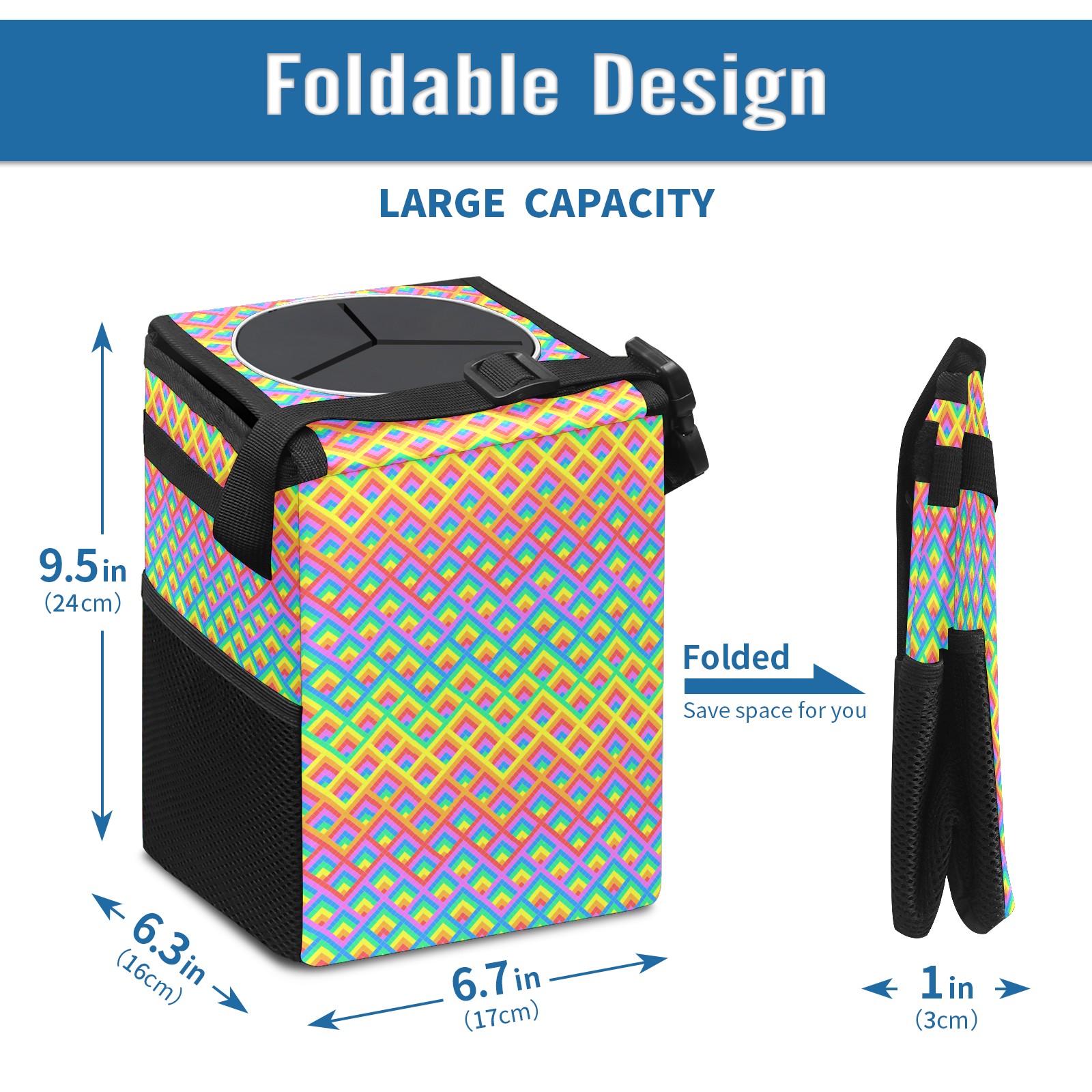 Car Garbage Can — Multi-functional, Lightweight Portable, Reusable Vehicle Trash Can, Waterproof with Sufficient Storage Capacity Rainbow 3d