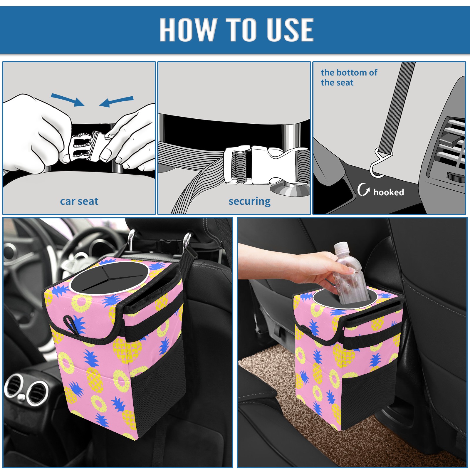 Car Garbage Can — Multi-functional, Lightweight Portable, Reusable Vehicle Trash Can, Waterproof with Sufficient Storage Capacity Art Pineapple