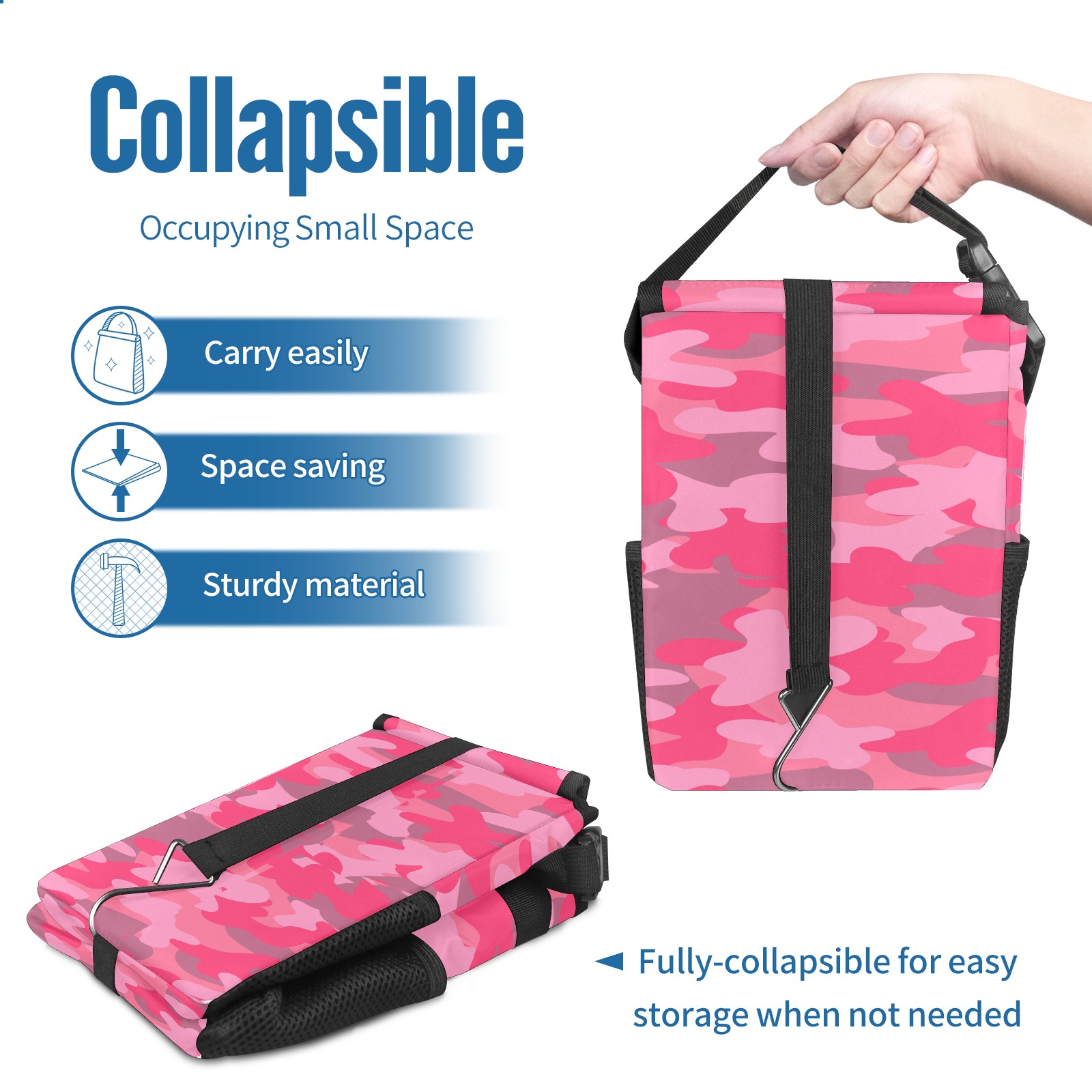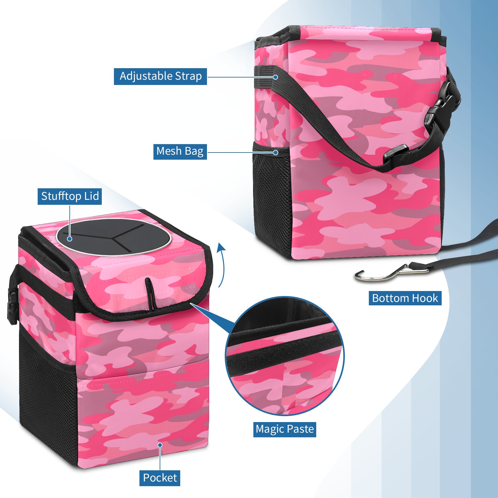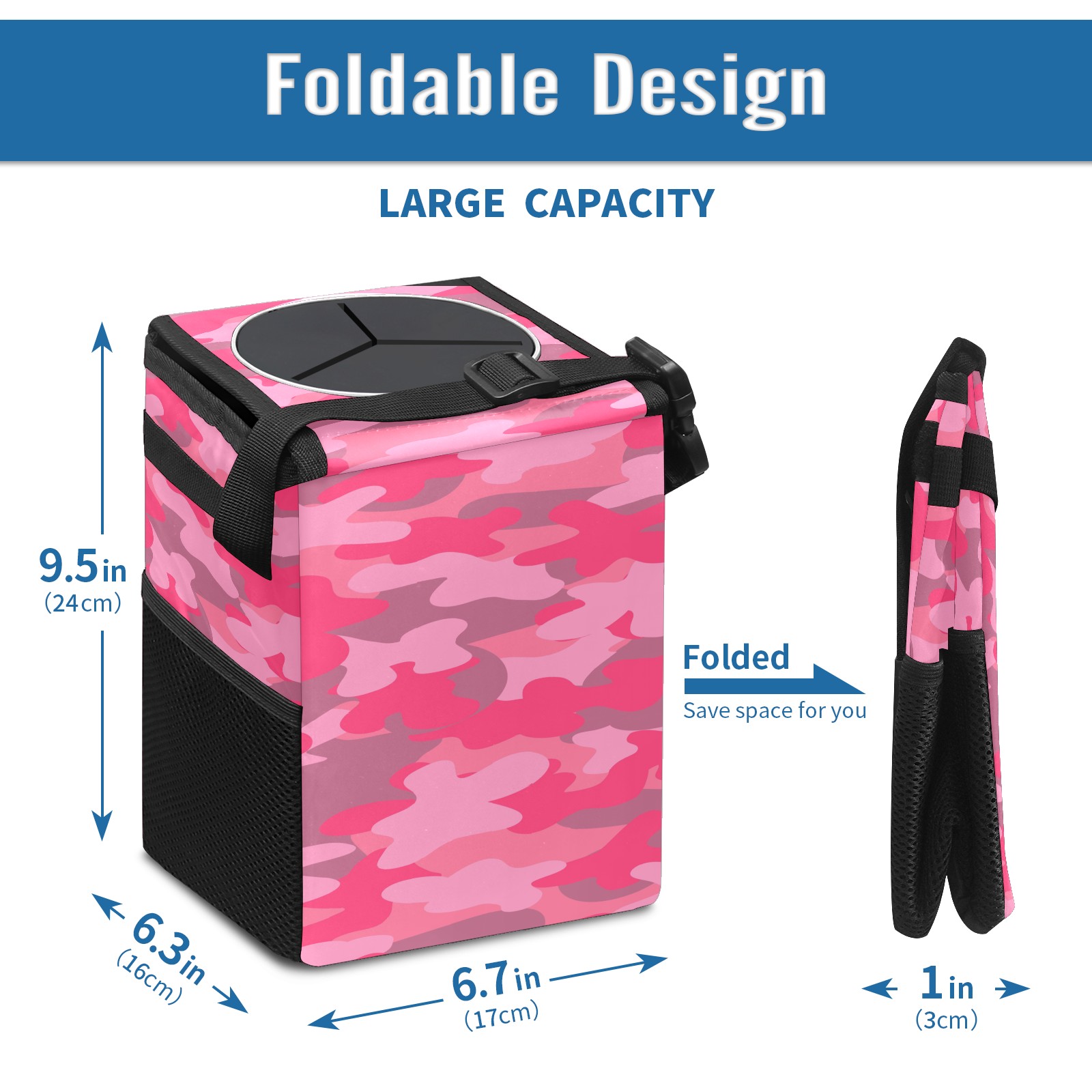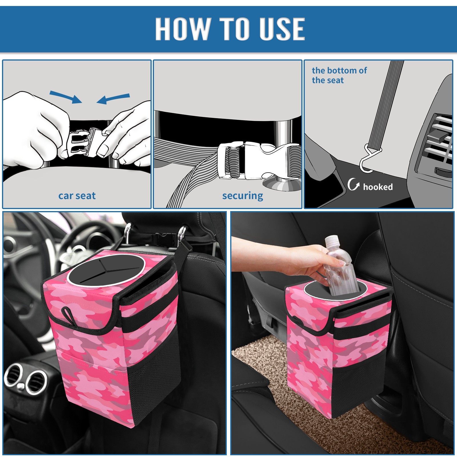 Car Garbage Can — Multi-functional, Lightweight Portable, Reusable Vehicle Trash Can, Waterproof with Sufficient Storage Capacity Pink Camo