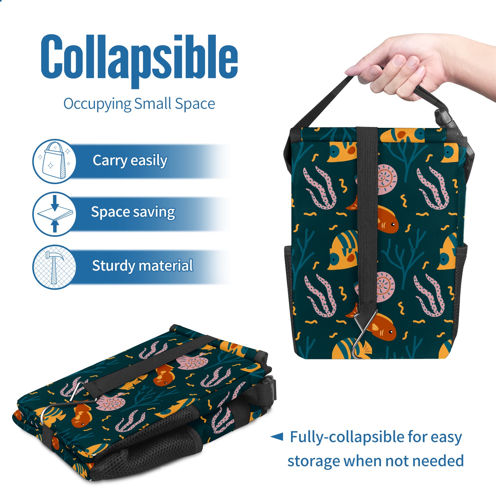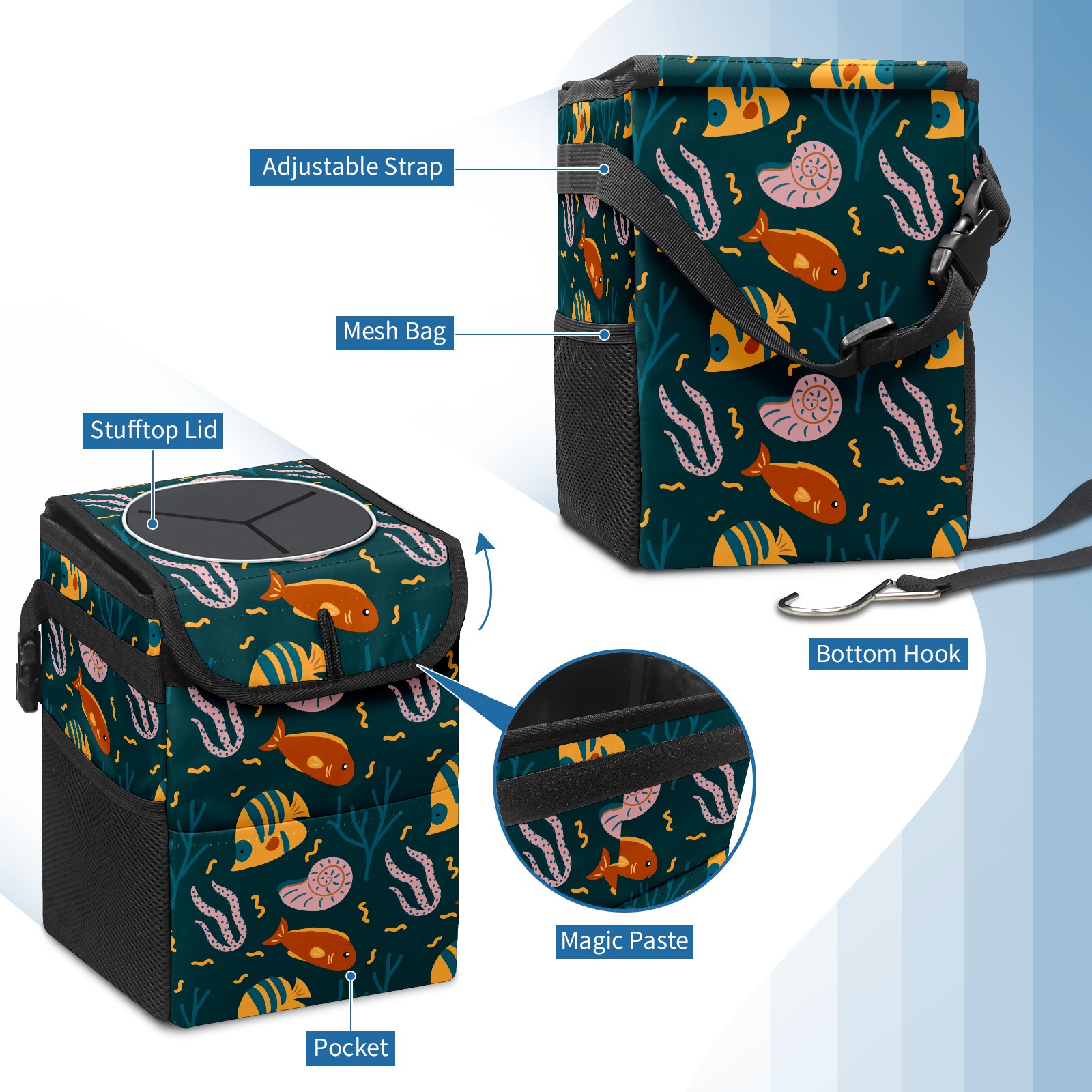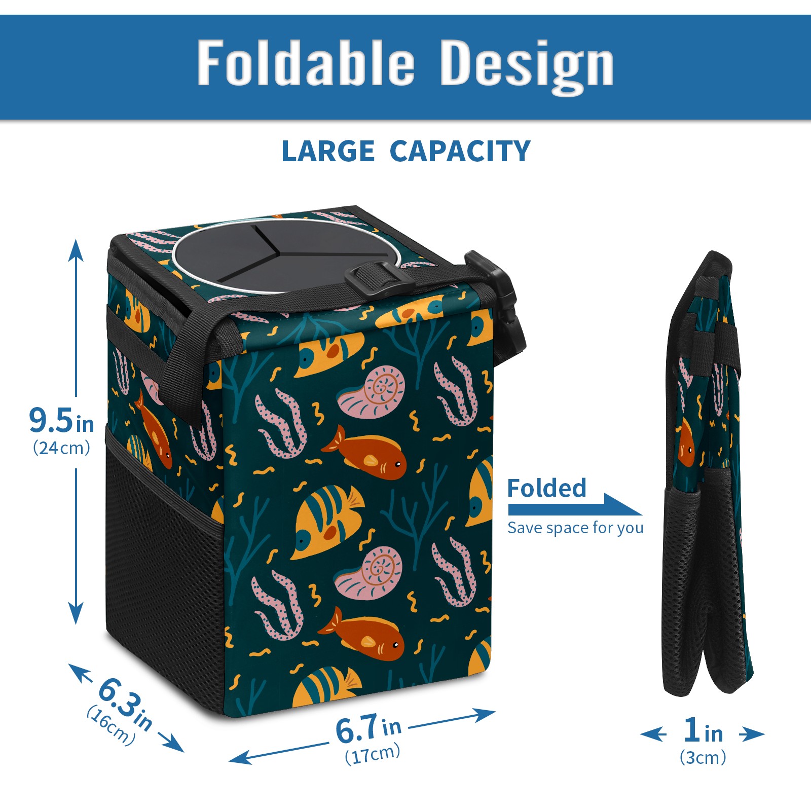 Car Garbage Can — Multi-functional, Lightweight Portable, Reusable Vehicle Trash Can, Waterproof with Sufficient Storage Capacity Coral Sea