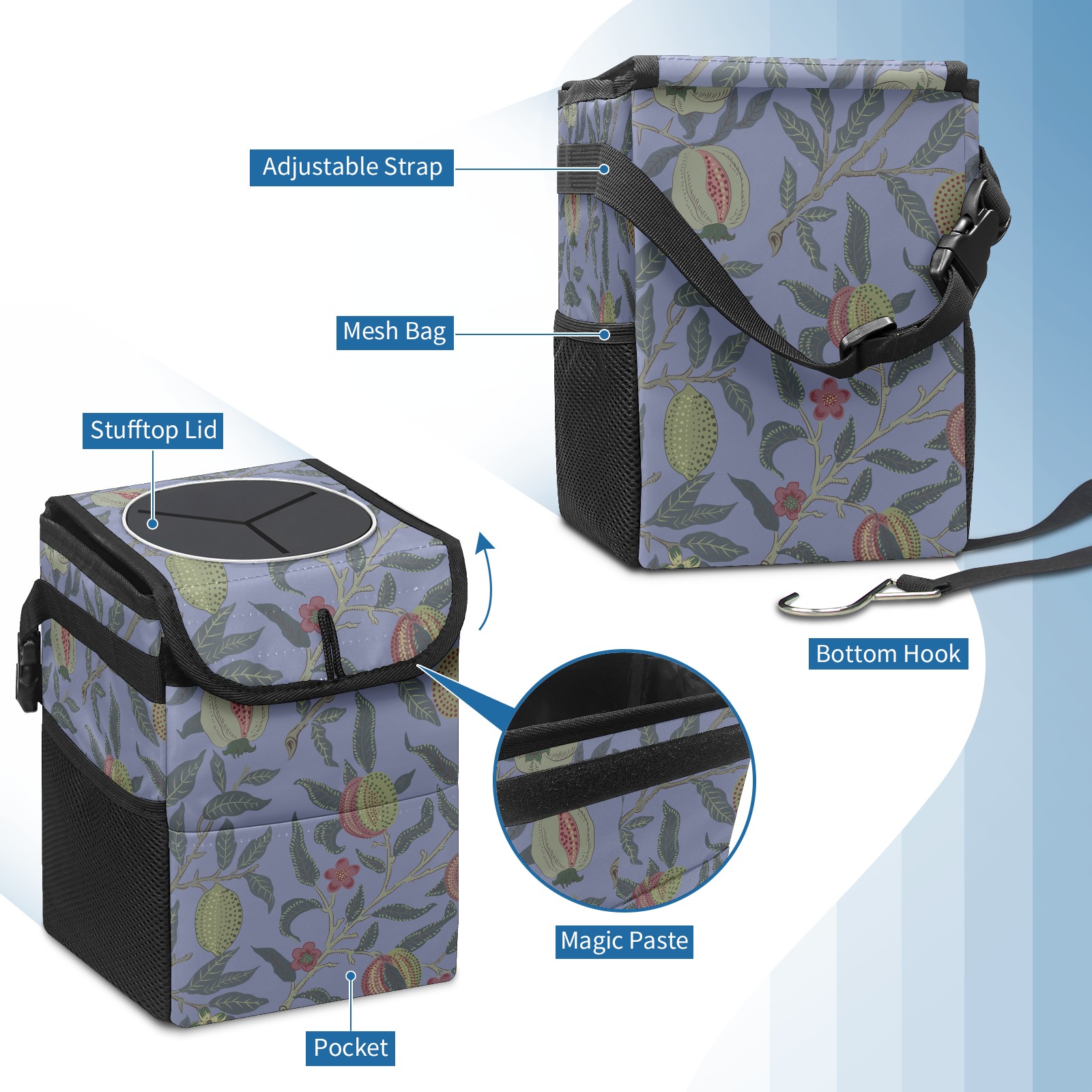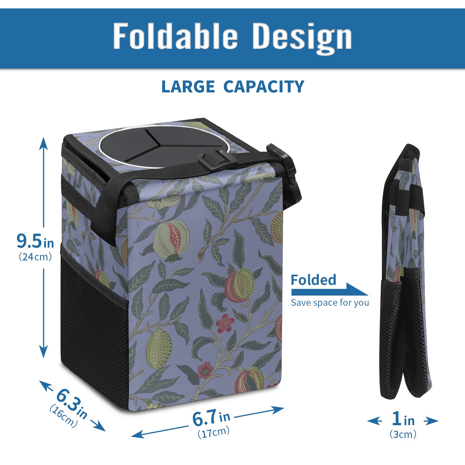 Car Garbage Can — Multi-functional, Lightweight Portable, Reusable Vehicle Trash Can, Waterproof with Sufficient Storage Capacity Fruit Tree