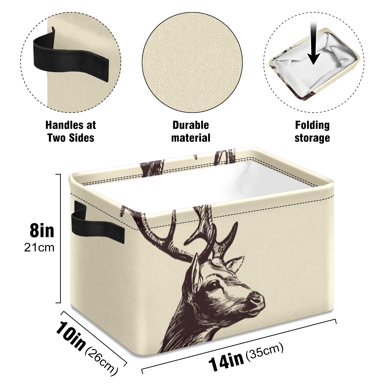 【Материал】Оксфордская ткань из полиэстера 600D; ручки изготовлены из полиэстера. 【Описание материала】Внешняя ткань: Оксфордская ткань полотняного переплетения высокой плотности 300D (ПВХ); Подкладка: белая ткань 750D; Ручки: черная композитная ткань 290T. 【Размер】26x35x21 см (10x14x8 дюймов) 【Описание продукта】Эта корзина для хранения с ручками с обеих сторон предлагает достаточно места для хранения предметов разных размеров, что делает ее подходящей для различных случаев, таких как дом, офис и школа. Ручки с обеих сторон закреплены гвоздями для долговечности. Прочный металлический каркас окружает корзину, поддерживая ее форму. Складная корзина для хранения: Наши корзины для хранения легко складываются, когда не используются. Эти ящики для хранения изготовлены из легко моющейся оксфордской ткани и при необходимости могут быть аккуратно протерты мягким мылом и водой. Из-за внутреннего металлического каркаса и жесткого дна машинная стирка не рекомендуется. 【Подходящие сценарии использования】Дом, офис и школа 【Инструкции по стирке】Рекомендуется ручная стирка; избегайте длительного воздействия прямых солнечных лучей.