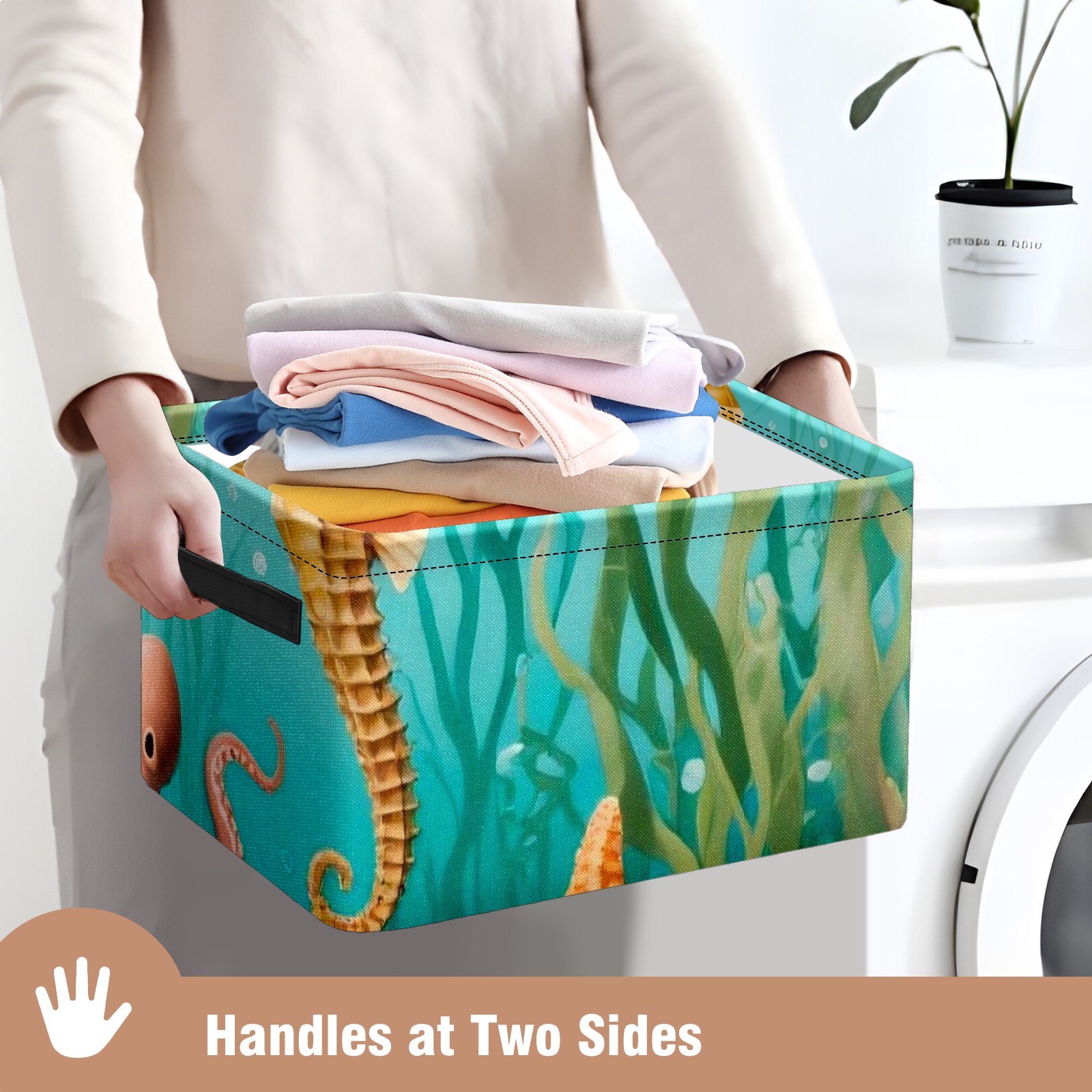 • 【Материал】Оксфордская ткань из полиэстера 600D; ручки изготовлены из полиэстера. 【Описание материала】Внешняя ткань: Оксфордская ткань полотняного переплетения высокой плотности 300D (ПВХ); Подкладка: белая ткань 750D; Ручки: черная композитная ткань 290T. 【Размер】26x35x21 см (10x14x8 дюймов) 【Описание продукта】Эта корзина для хранения с ручками с обеих сторон предлагает достаточно места для хранения предметов разных размеров, что делает ее подходящей для различных случаев, таких как дом, офис и школа. Ручки с обеих сторон закреплены гвоздями для долговечности. Прочный металлический каркас окружает корзину, поддерживая ее форму. Складная корзина для хранения: Наши корзины для хранения легко складываются, когда не используются. Эти ящики для хранения изготовлены из легко моющейся оксфордской ткани и при необходимости могут быть аккуратно протерты мягким мылом и водой. Из-за внутреннего металлического каркаса и жесткого дна машинная стирка не рекомендуется. 【Подходящие сценарии использования】Дом, офис и школа 【Инструкции по стирке】Рекомендуется ручная стирка; избегайте длительного воздействия прямых солнечных лучей.