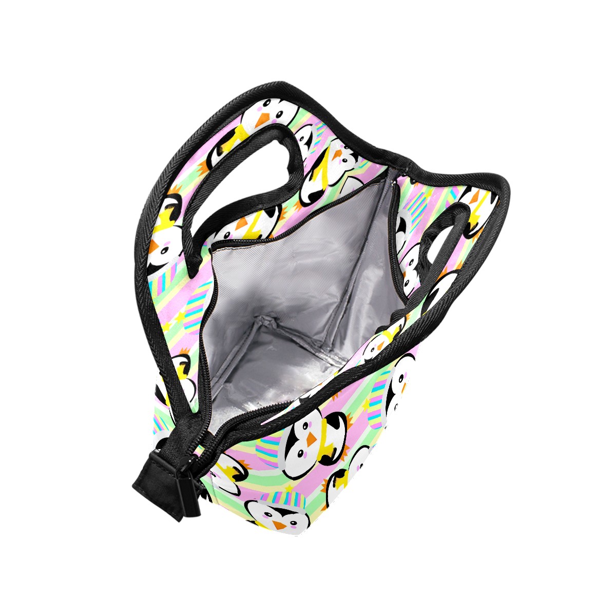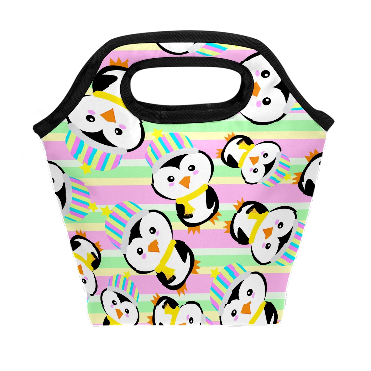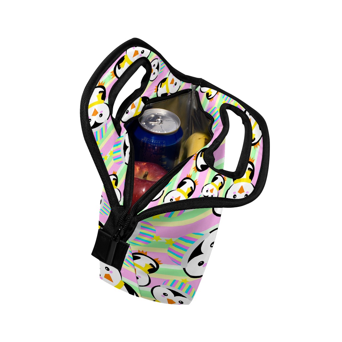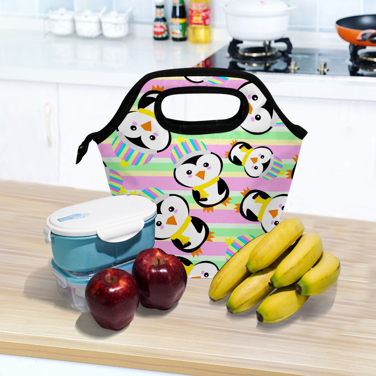手提餐包 Happy Birthday Penguin Colorful Stripes Background