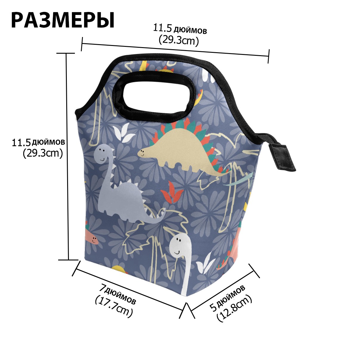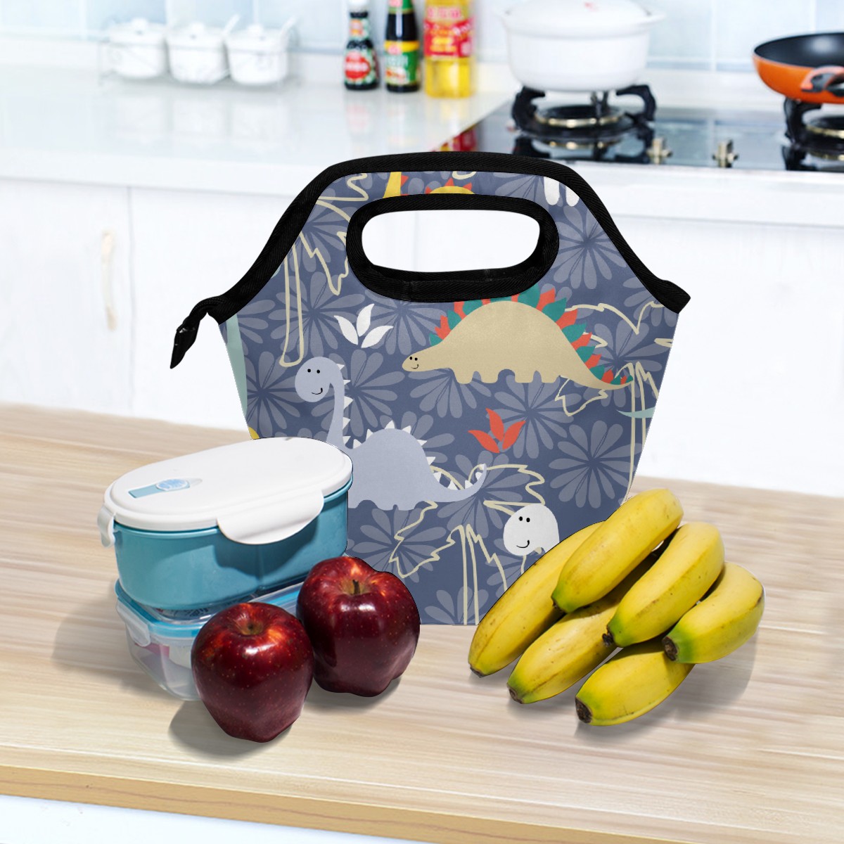 手提餐包 Cartoon Dinosaur Cute Animal Coconut Tree Pattern
