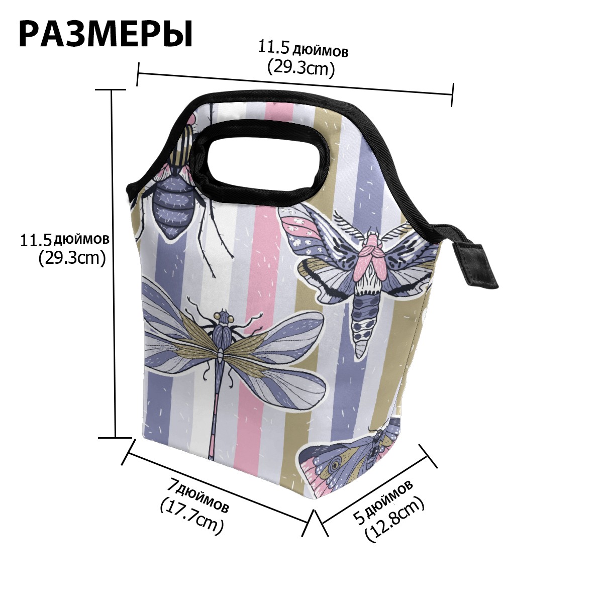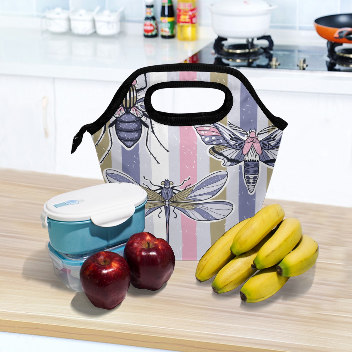 手提餐包 Dragonfly Butterfly Stripes Pattern