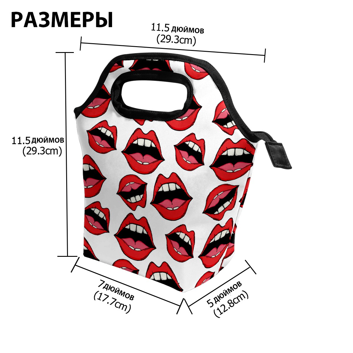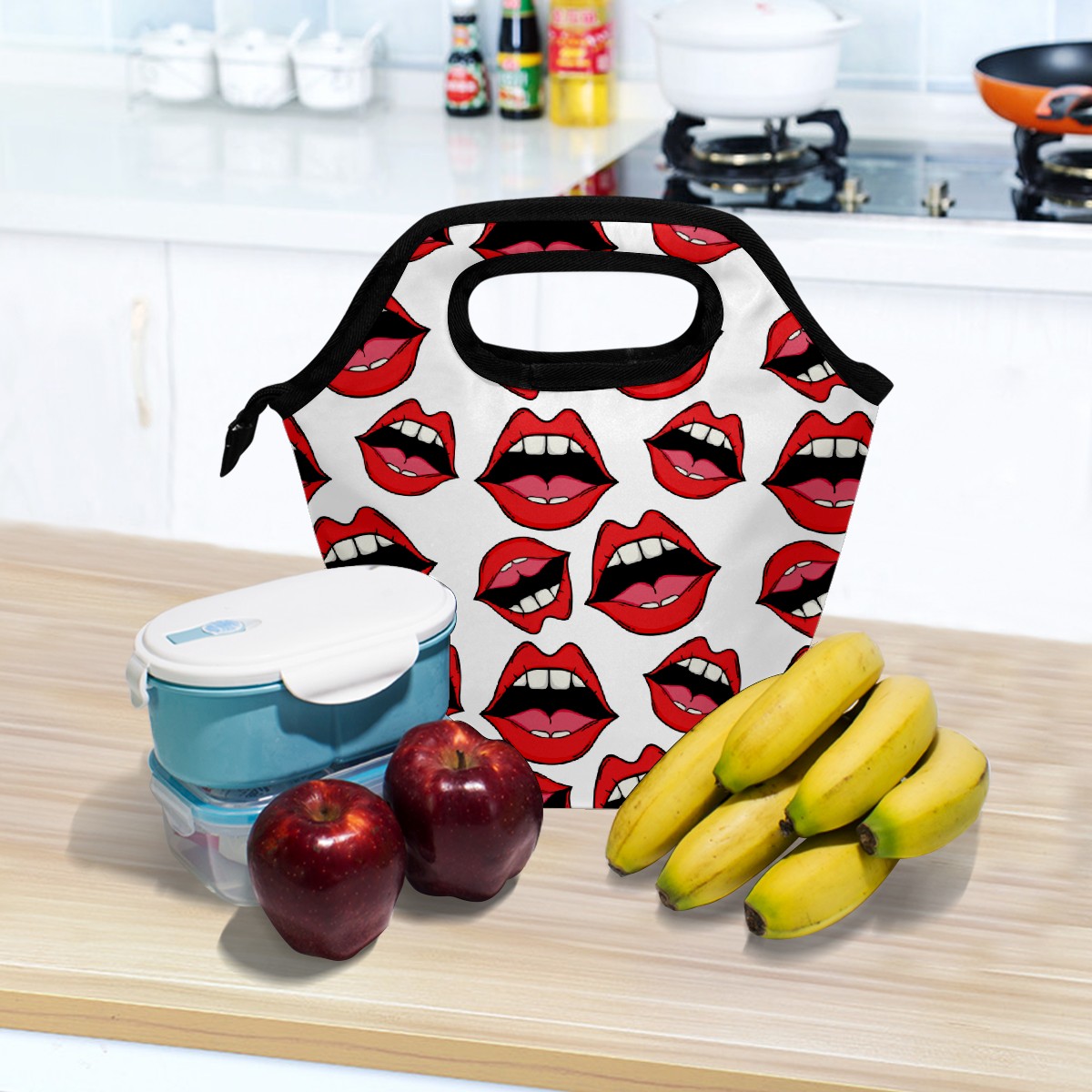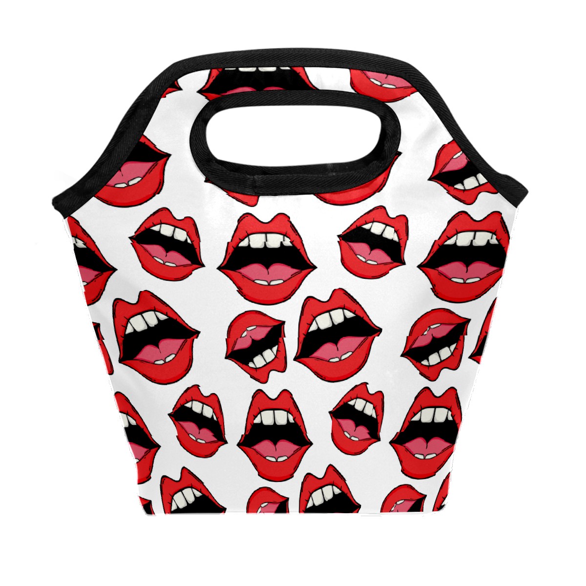 手提餐包 Pop Art Cartoon Red Lips Background