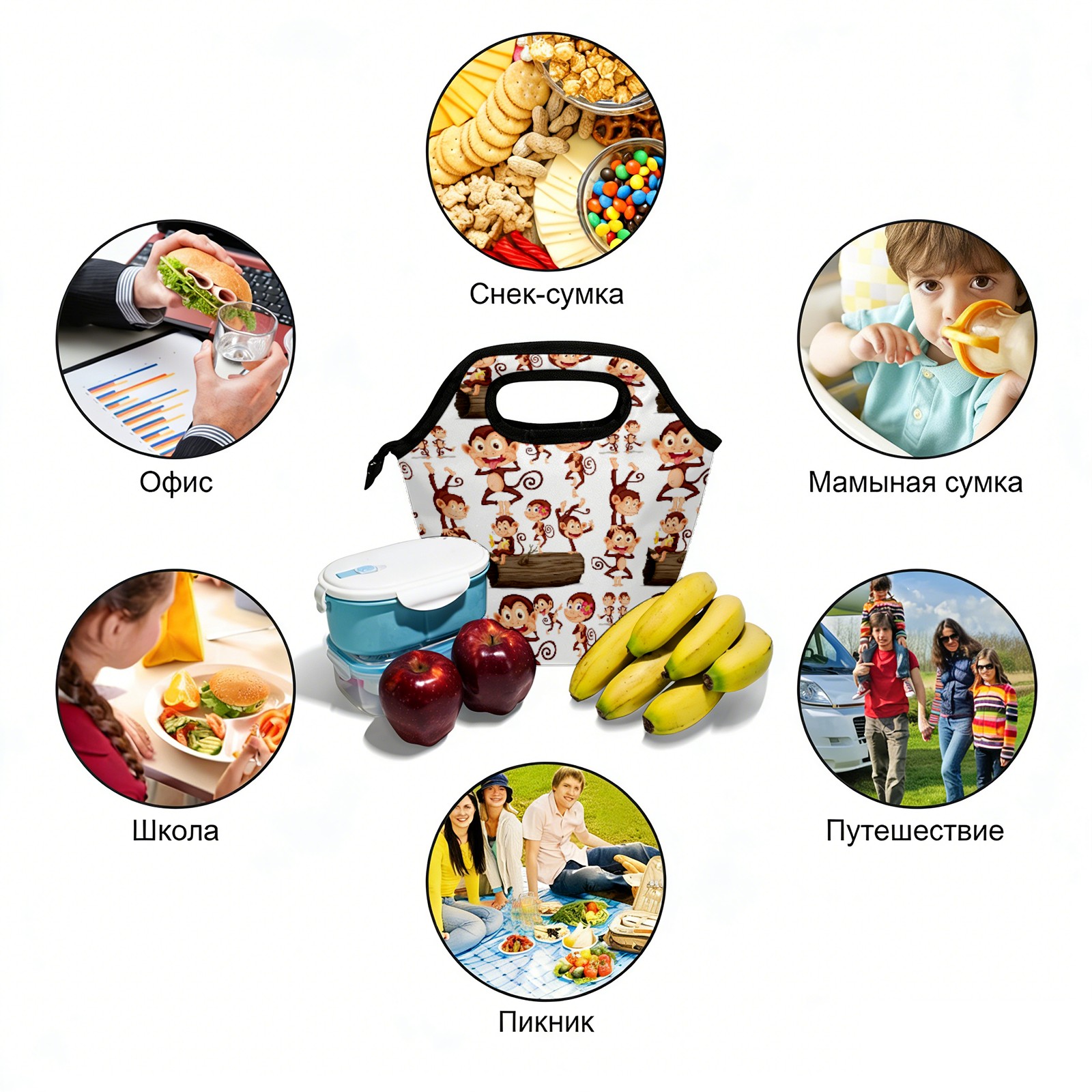 手提餐包 Funny Monkey Doing Different Thing
