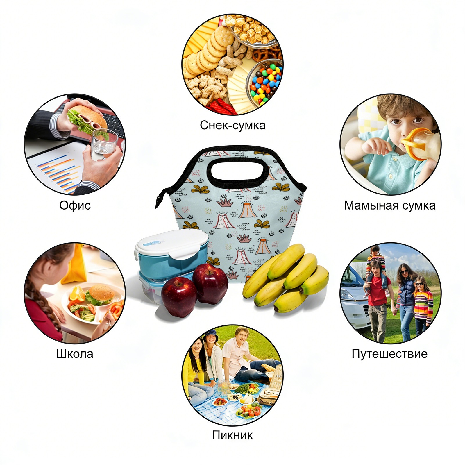 手提餐包 Cute Volcano Doodle Pattern