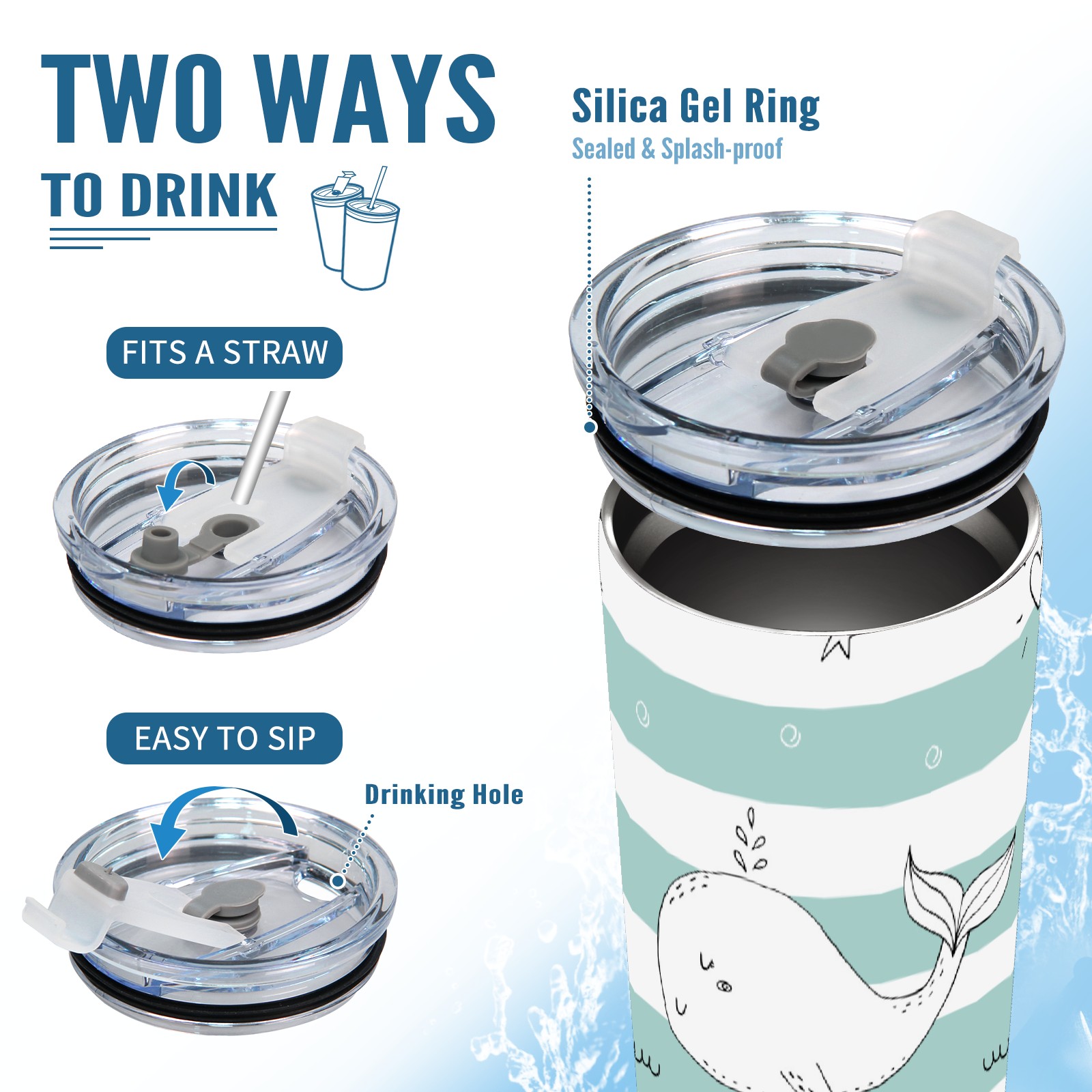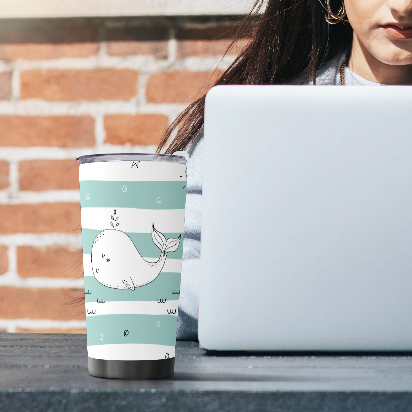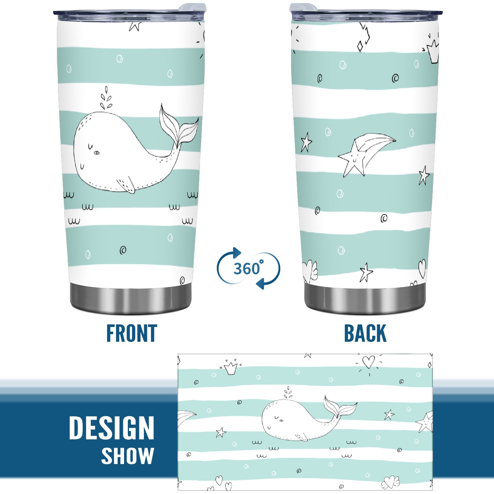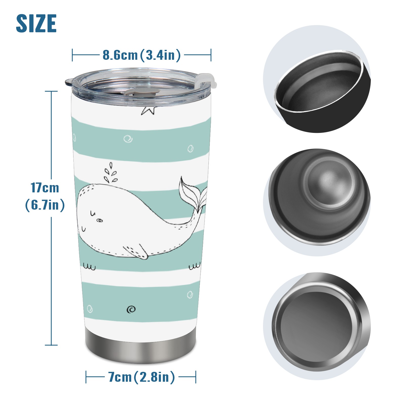 20 oz Tumbler Whale Stripe Stainless Steel Insulated Tumbler with Lid Double Wall Vacuum Insulated Travel Mug Cup for Coffee Ice Hot Drinks