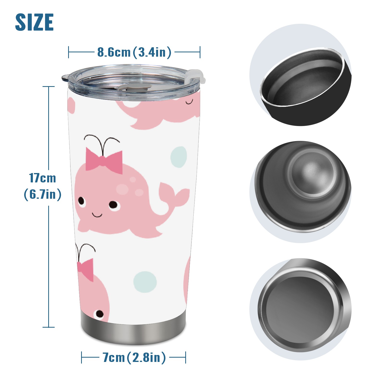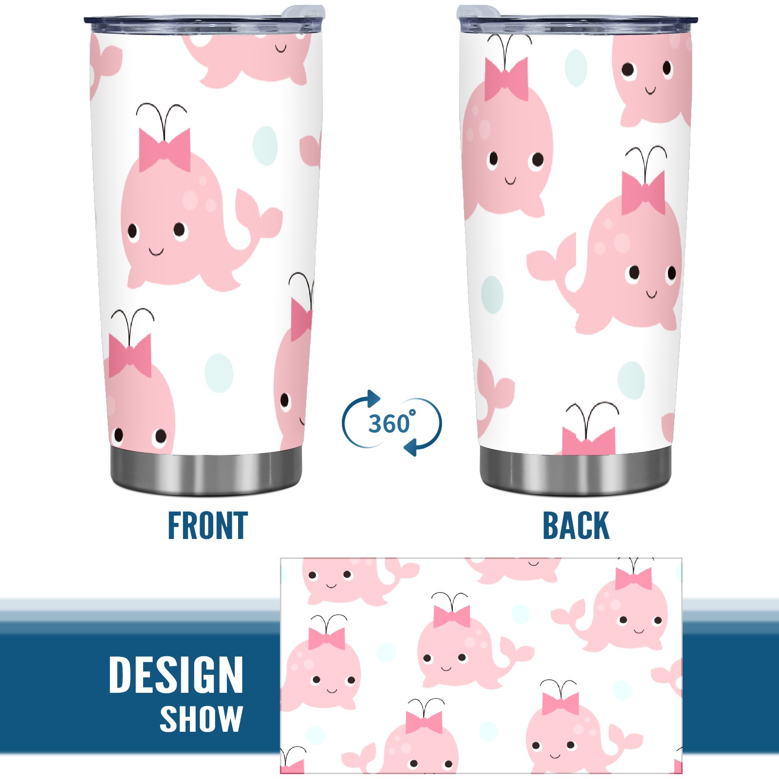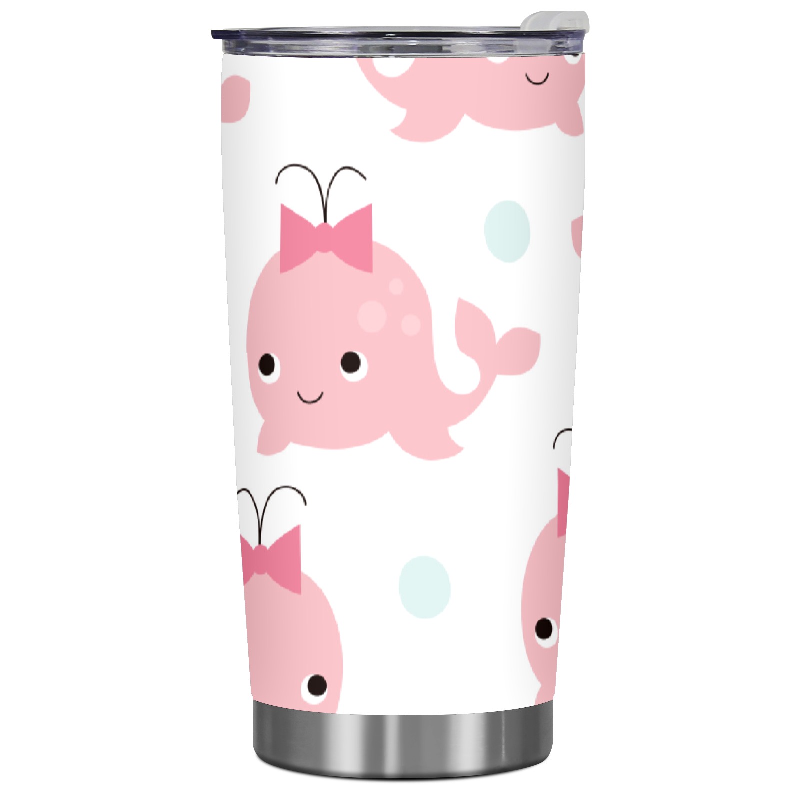 20 oz Tumbler Cute Pink Whale Pattern Stainless Steel Insulated Tumbler with Lid Double Wall Vacuum Insulated Travel Mug Cup for Coffee Ice Hot Drinks
