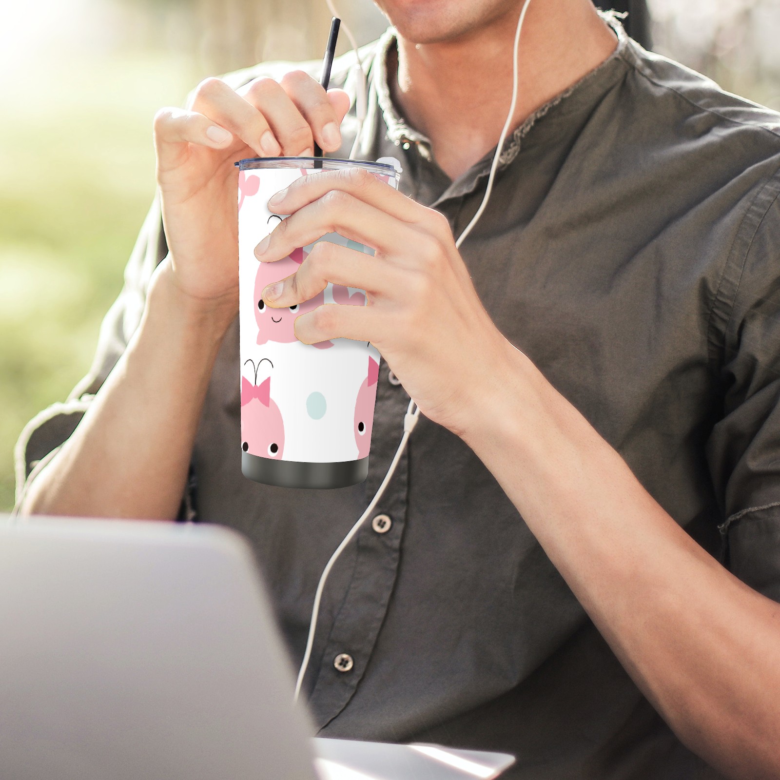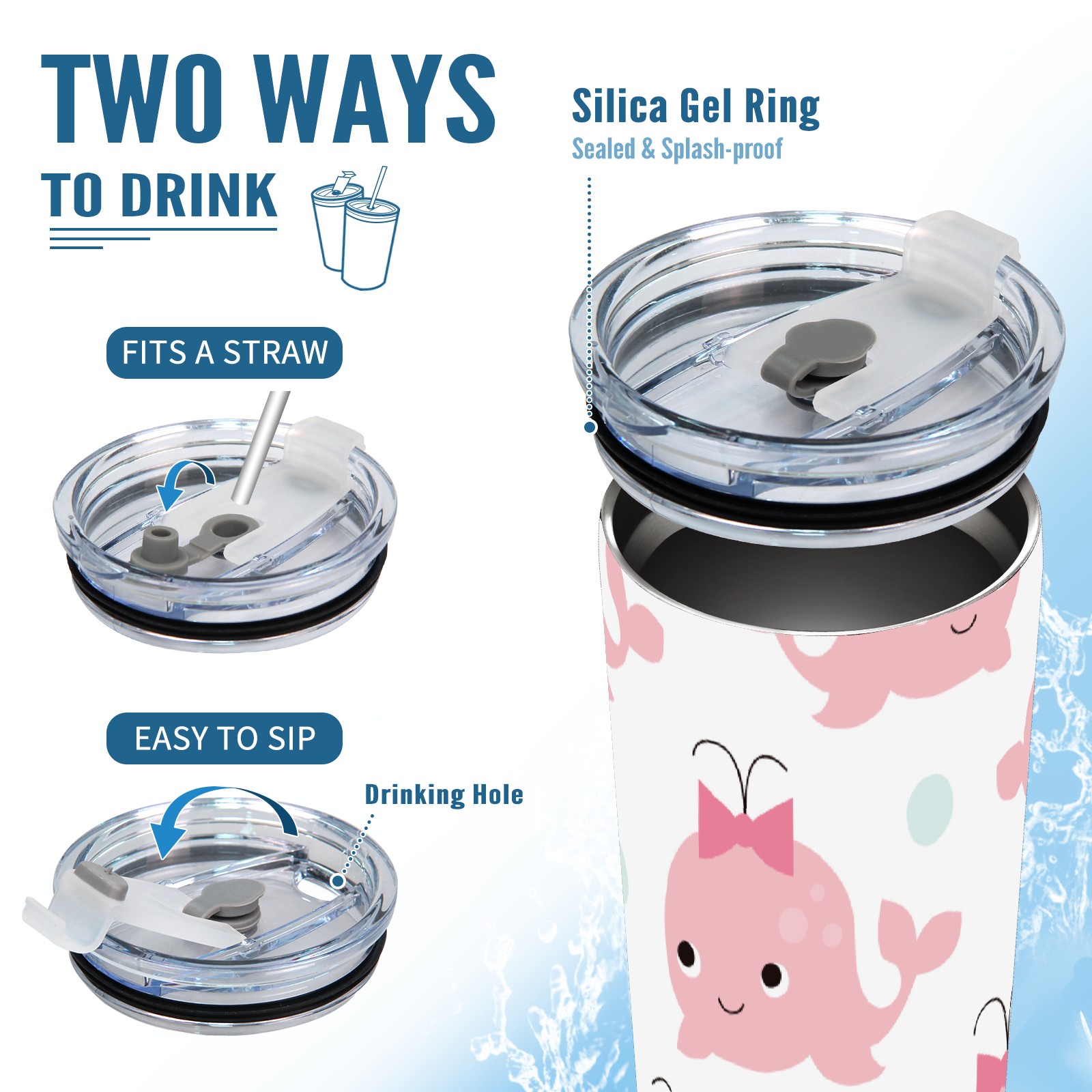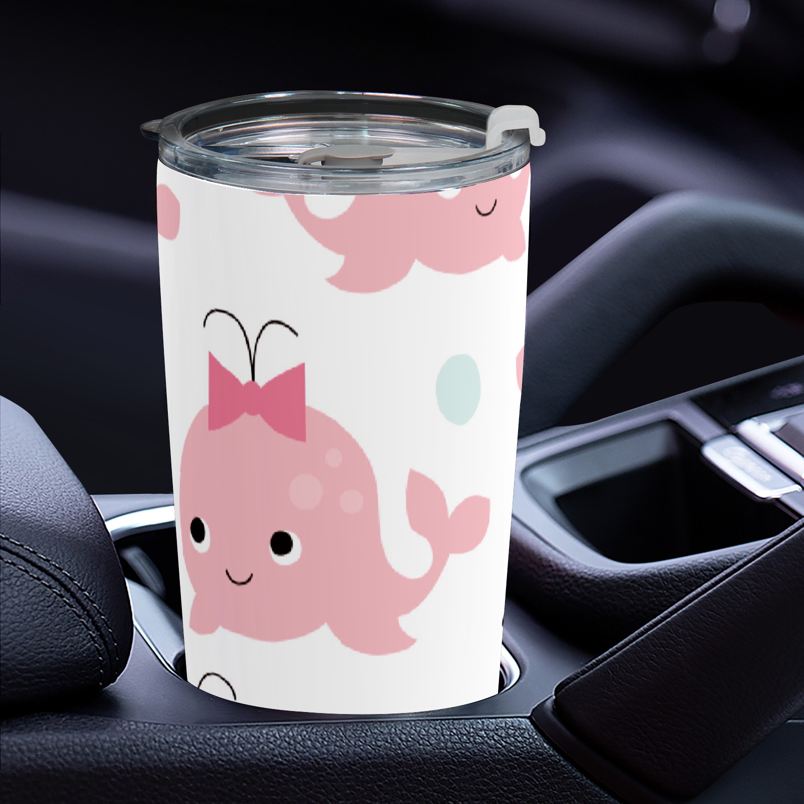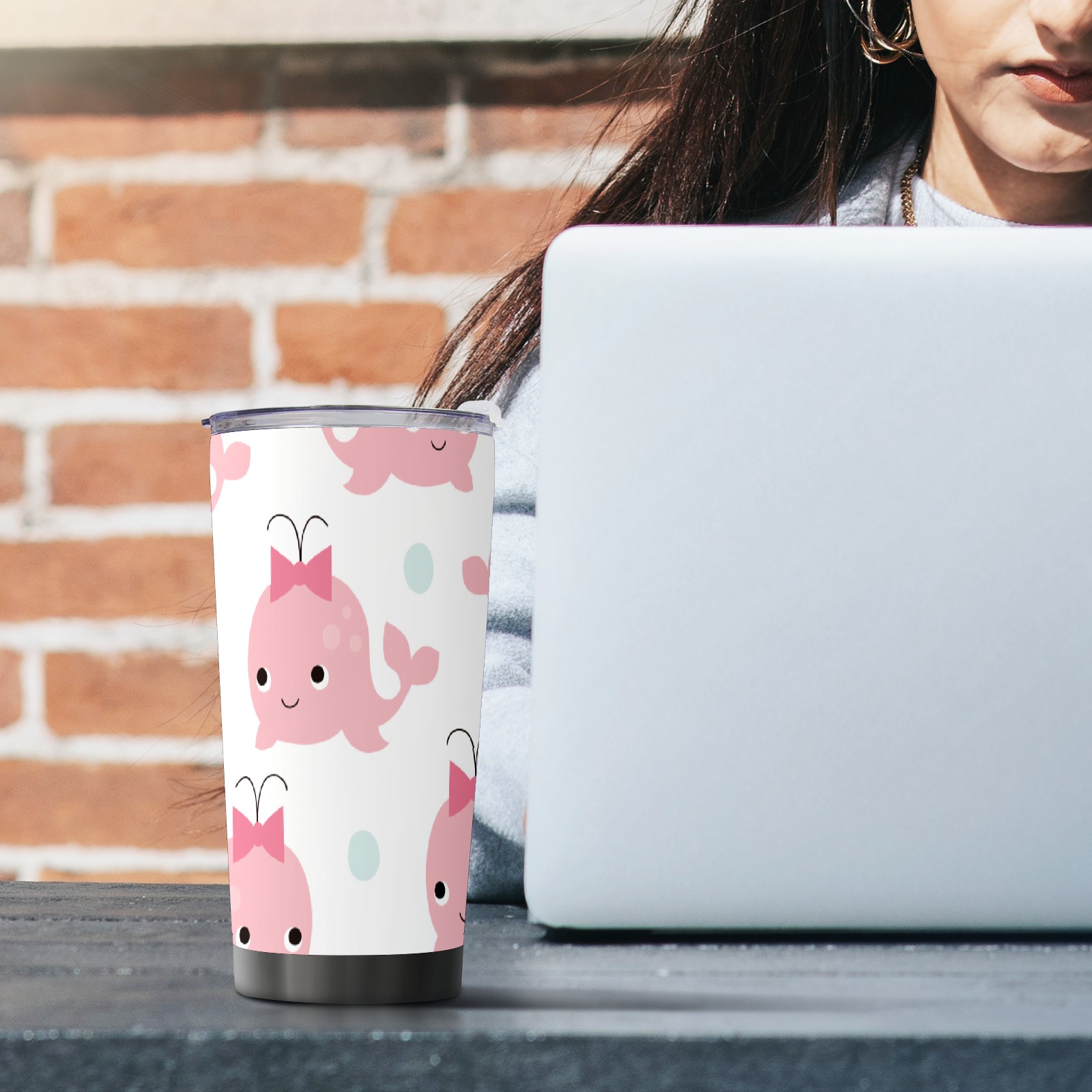 20 oz Tumbler Cute Pink Whale Pattern Stainless Steel Insulated Tumbler with Lid Double Wall Vacuum Insulated Travel Mug Cup for Coffee Ice Hot Drinks