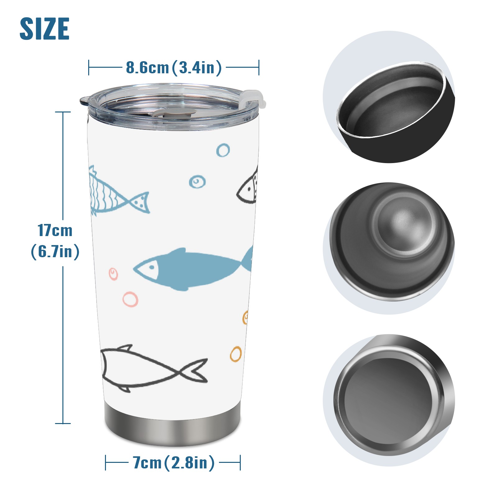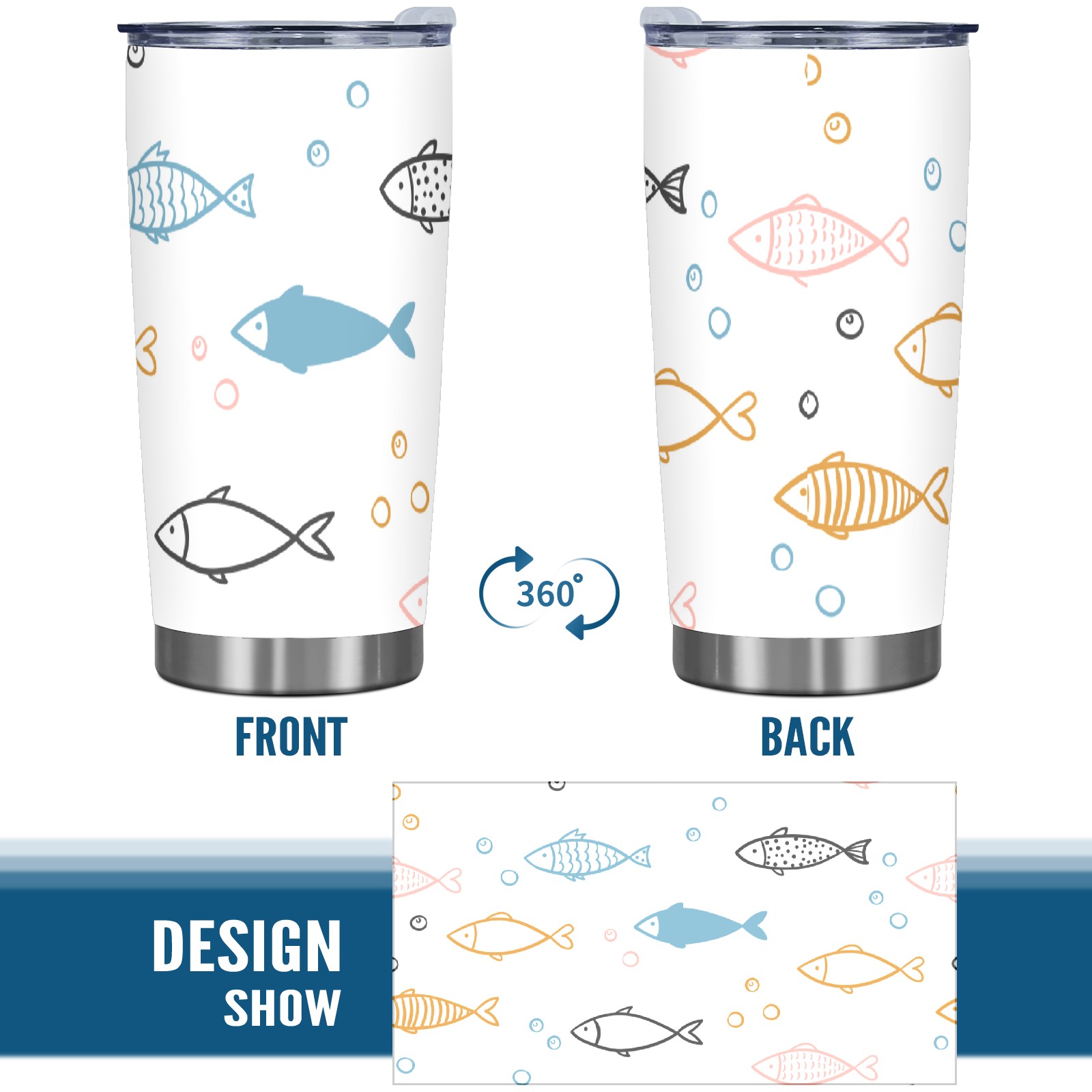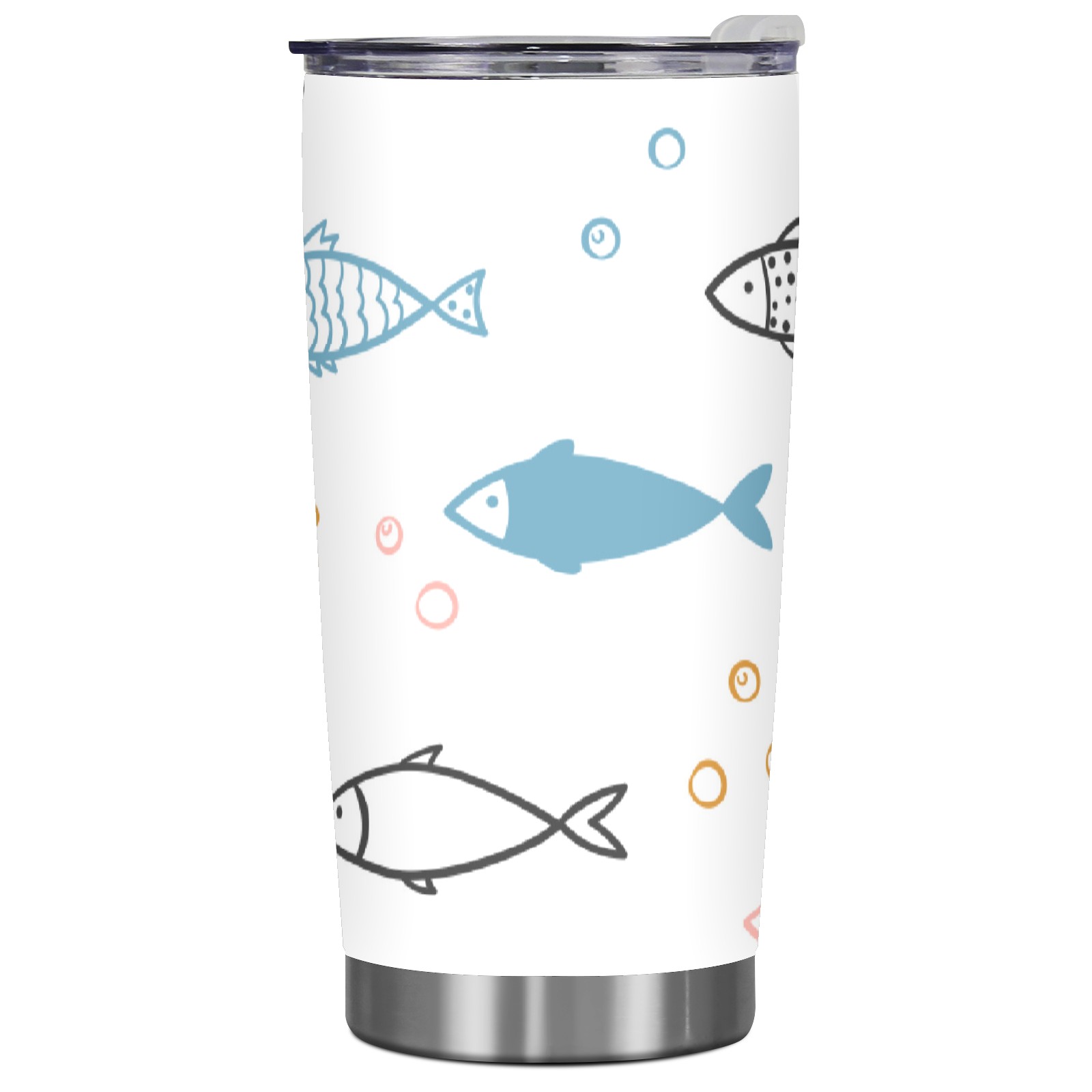 20 oz Tumbler Fish Simple Line-drawing Stainless Steel Insulated Tumbler with Lid Double Wall Vacuum Insulated Travel Mug Cup for Coffee Ice Hot Drinks
