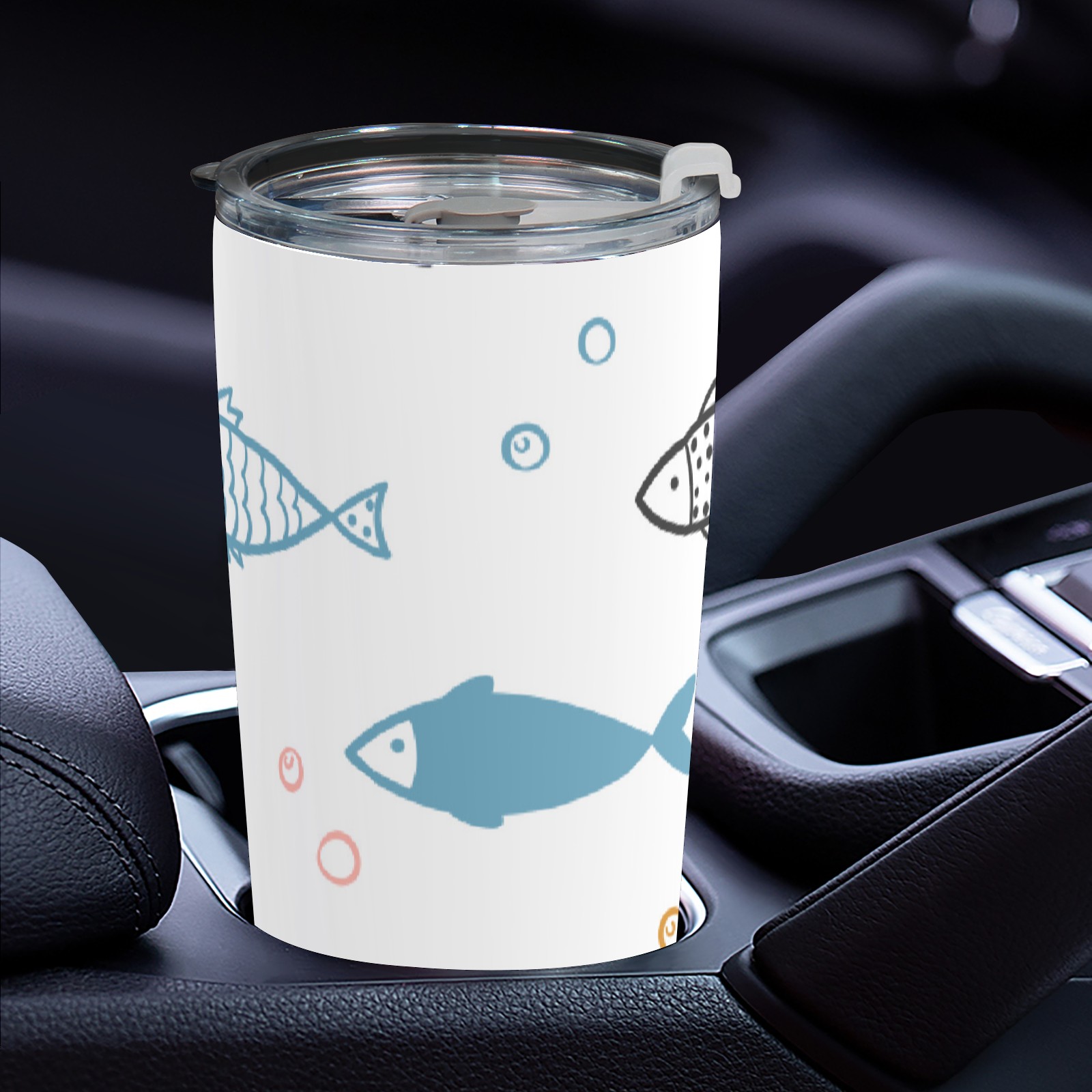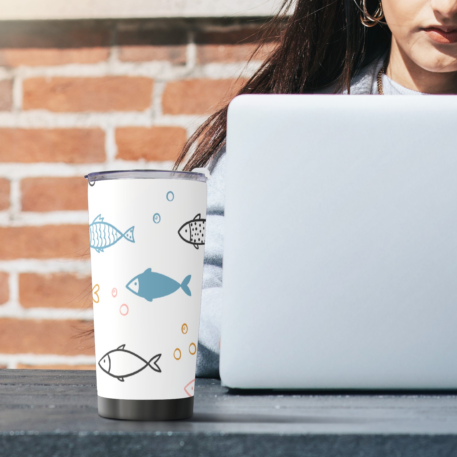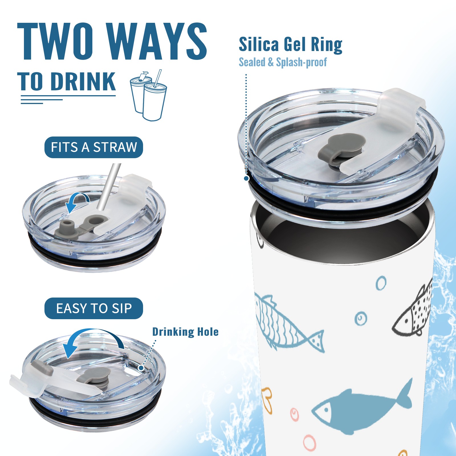 20 oz Tumbler Fish Simple Line-drawing Stainless Steel Insulated Tumbler with Lid Double Wall Vacuum Insulated Travel Mug Cup for Coffee Ice Hot Drinks