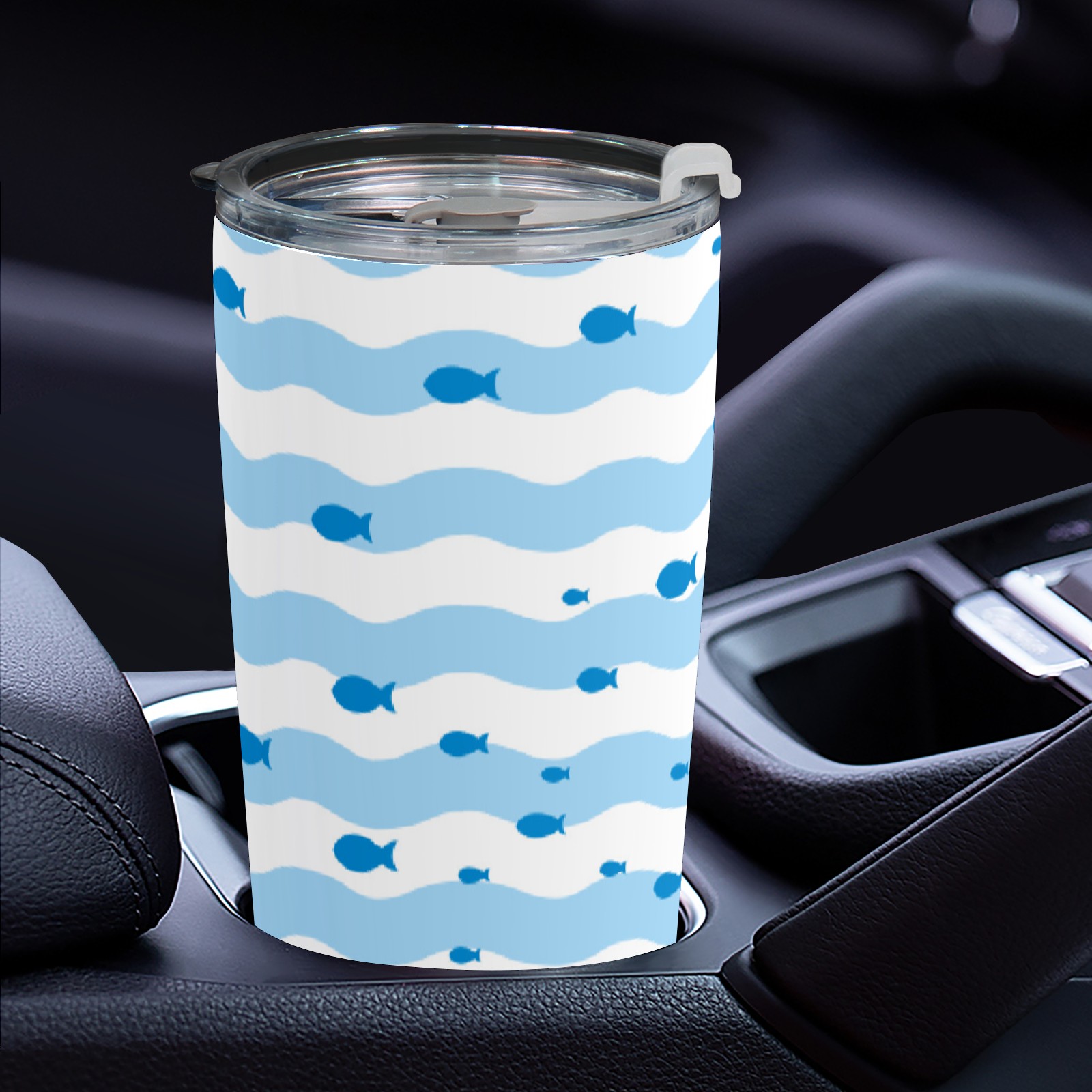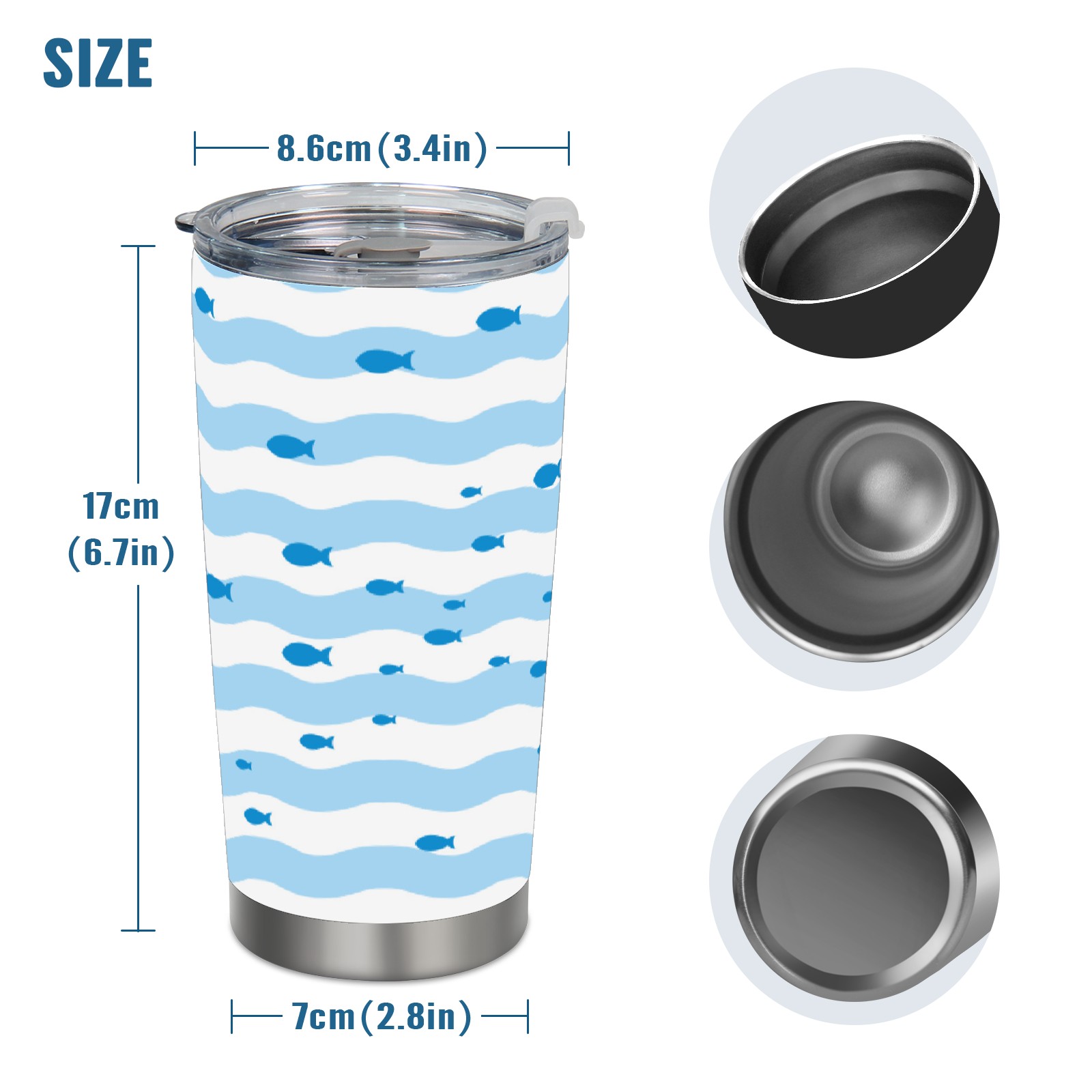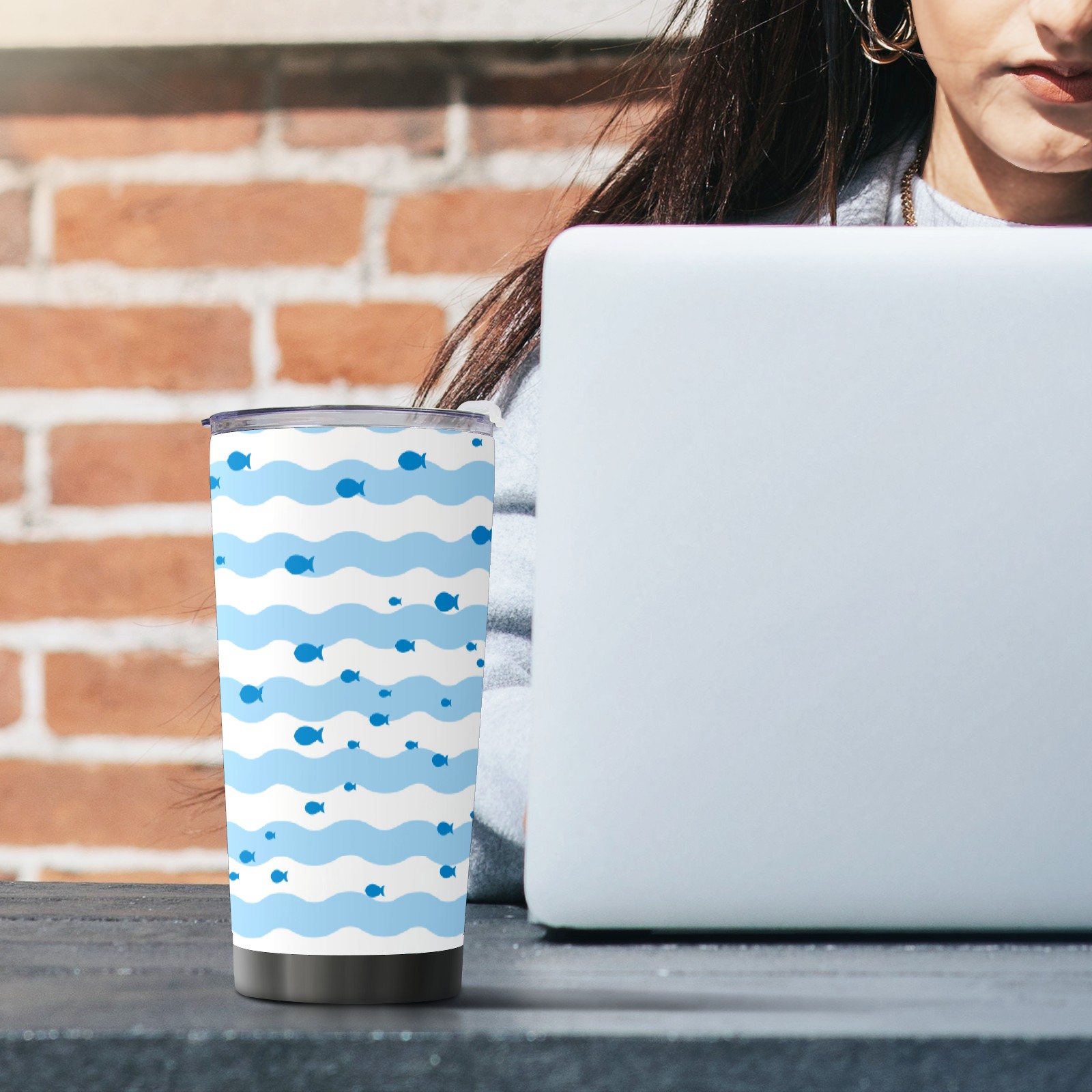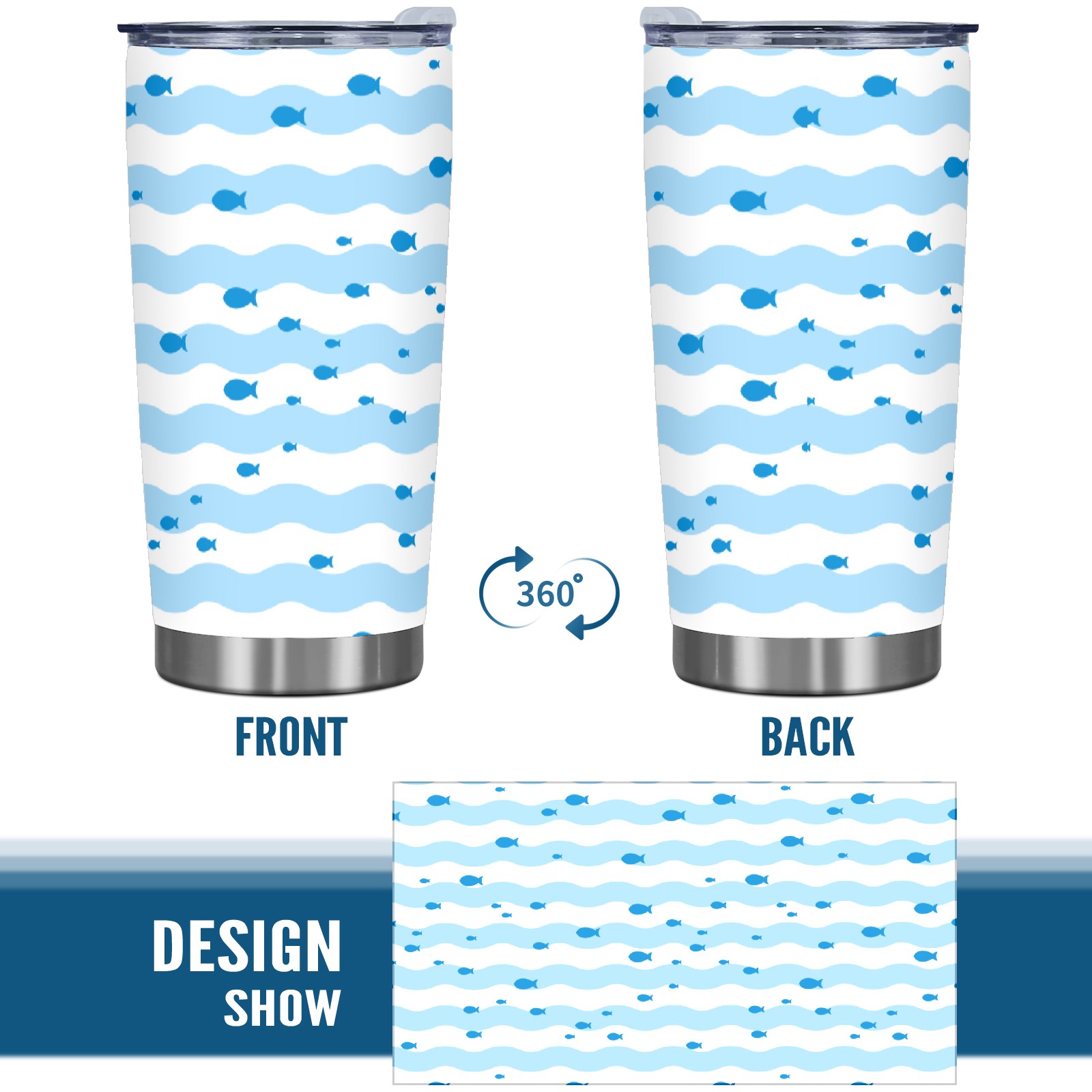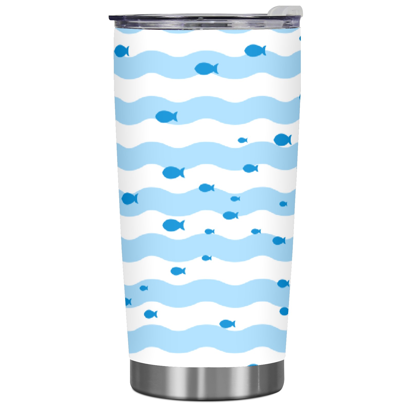 20 oz Tumbler Blue White Wavy Pattern Stainless Steel Insulated Tumbler with Lid Double Wall Vacuum Insulated Travel Mug Cup for Coffee Ice Hot Drinks
