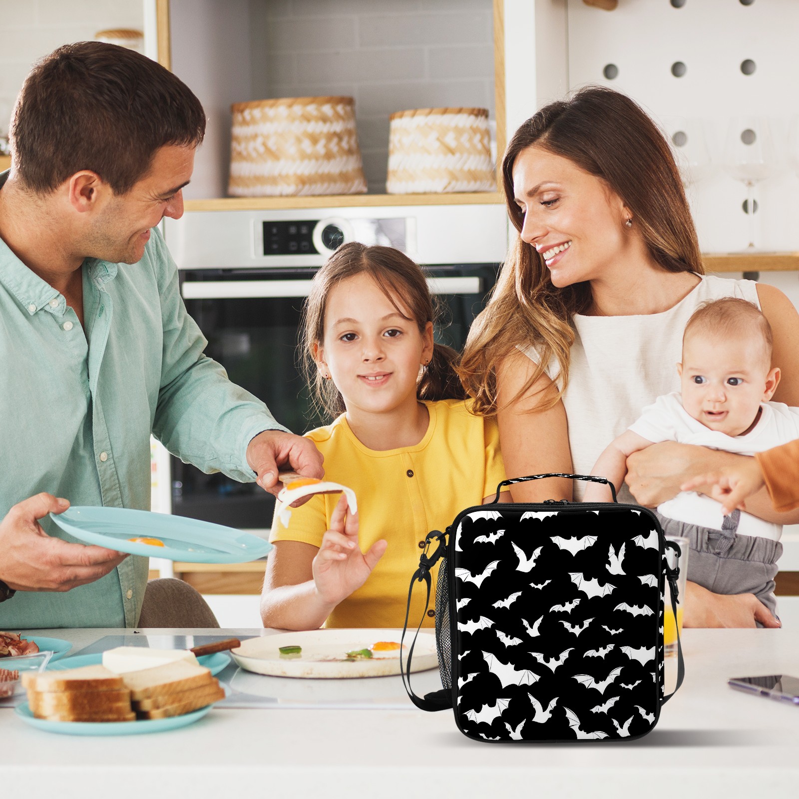 方形餐包 Black And White Goth Bats