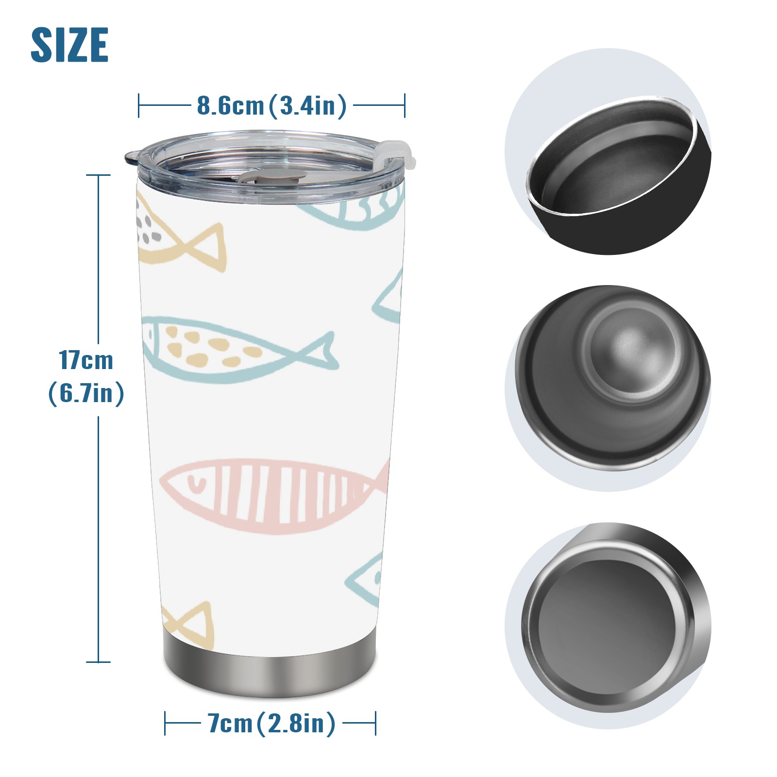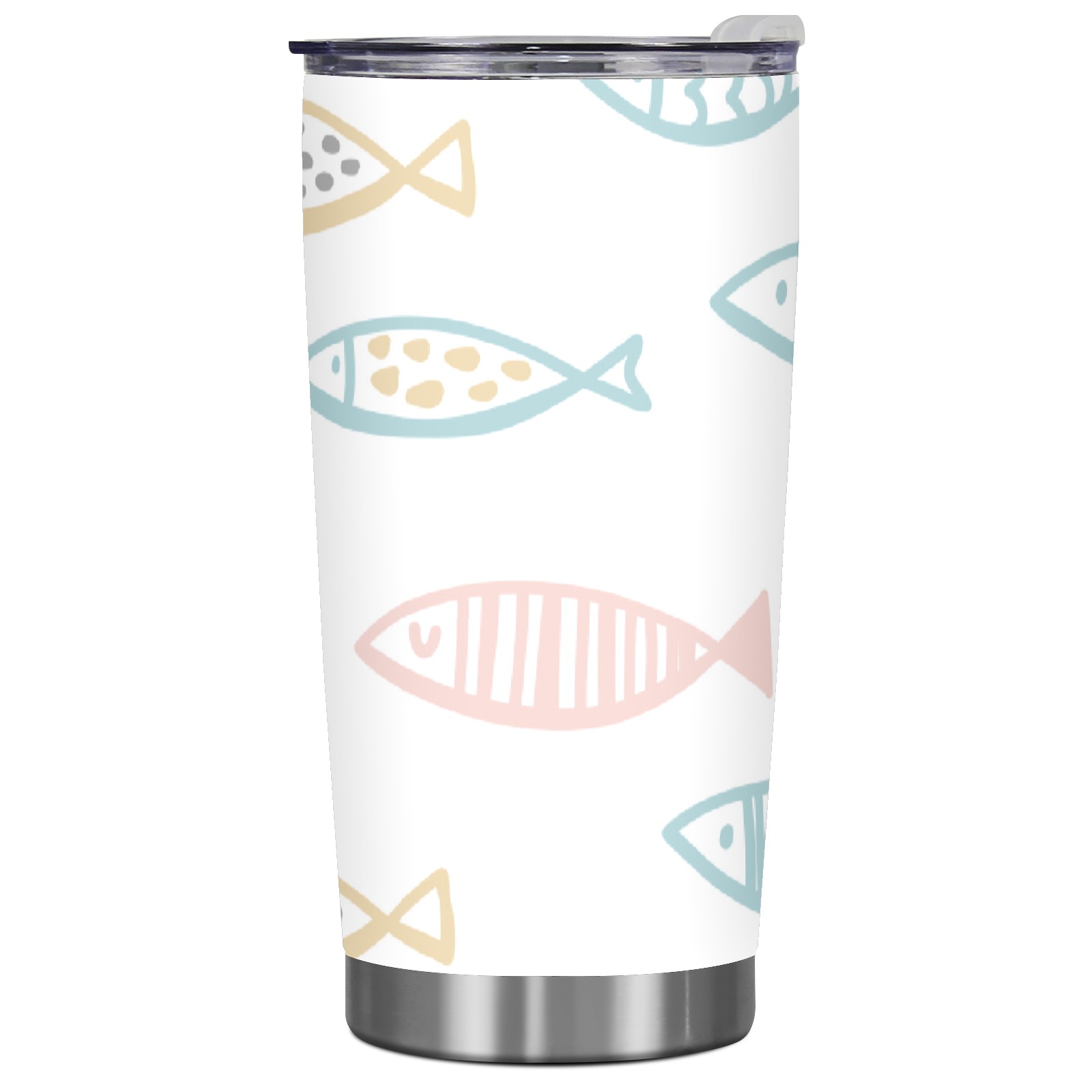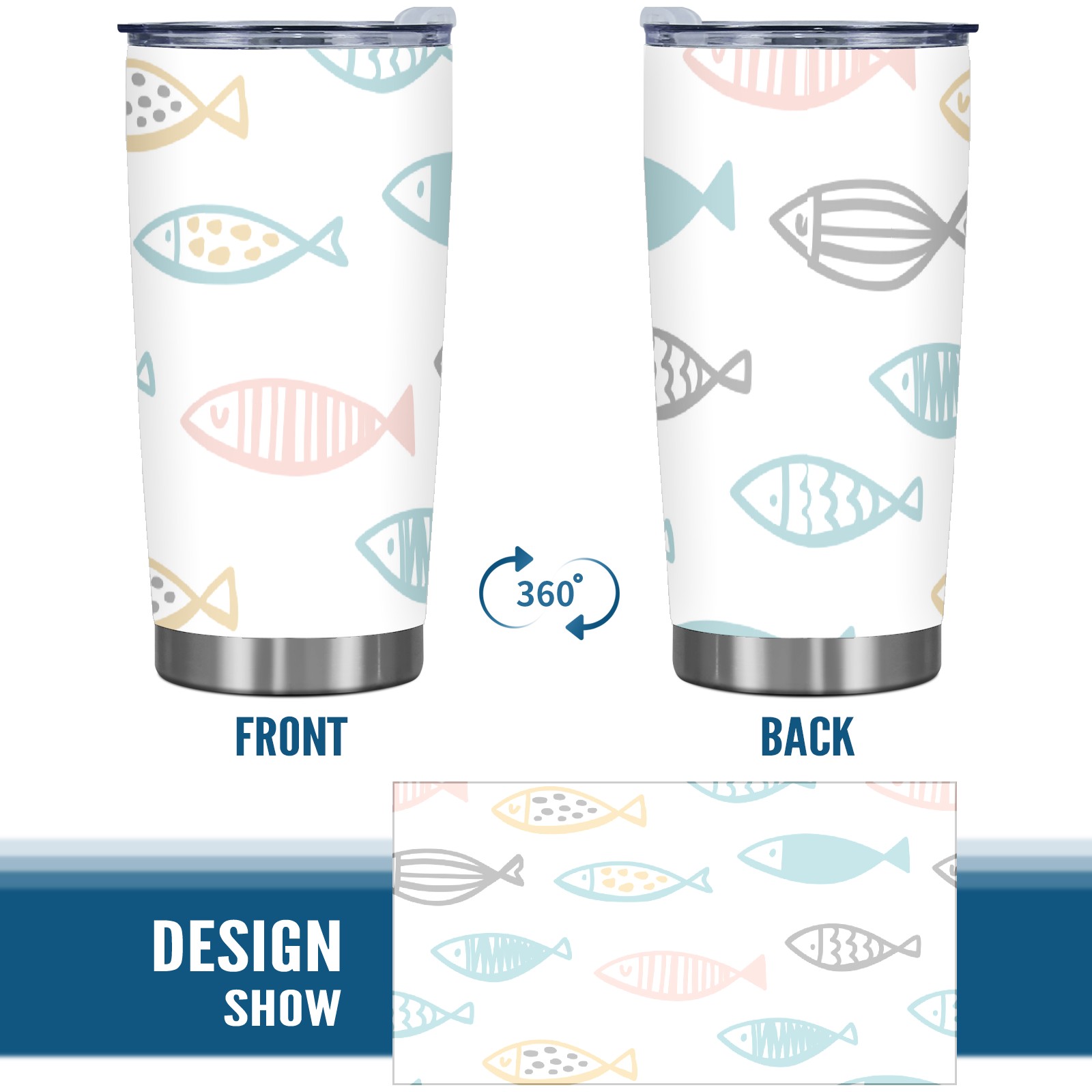 20 oz Tumbler Line Fish Pattern Stainless Steel Insulated Tumbler with Lid Double Wall Vacuum Insulated Travel Mug Cup for Coffee Ice Hot Drinks