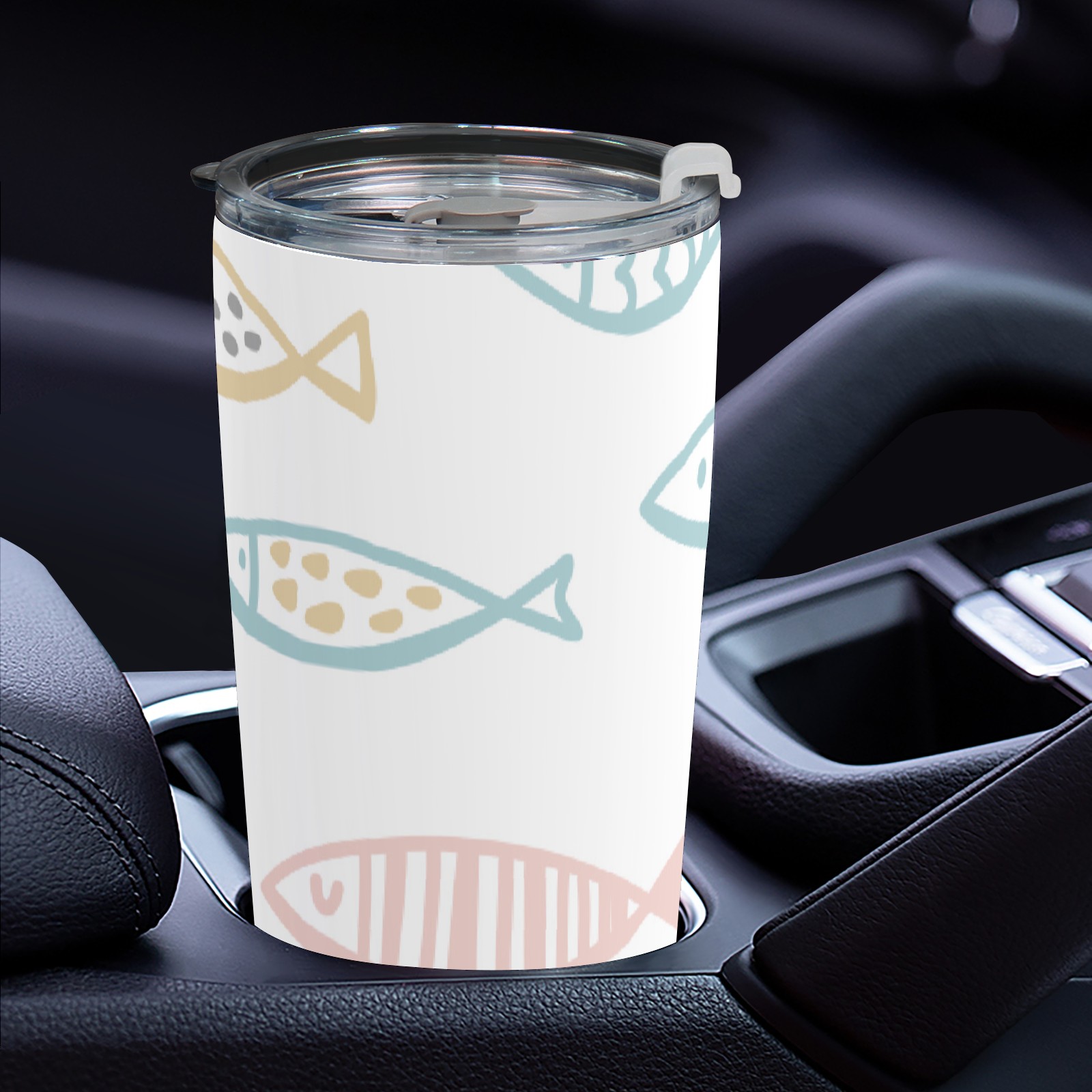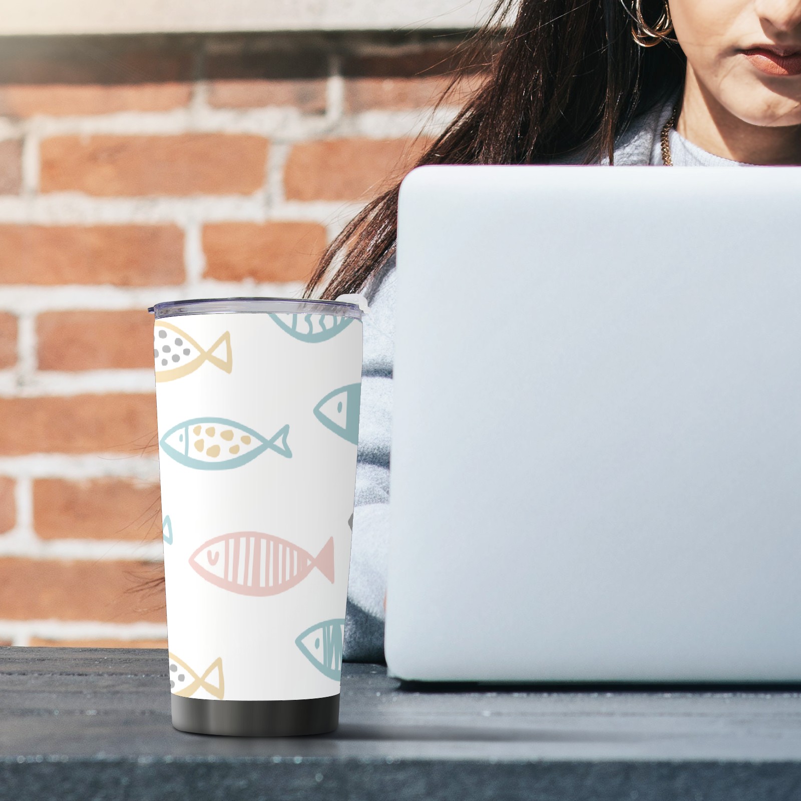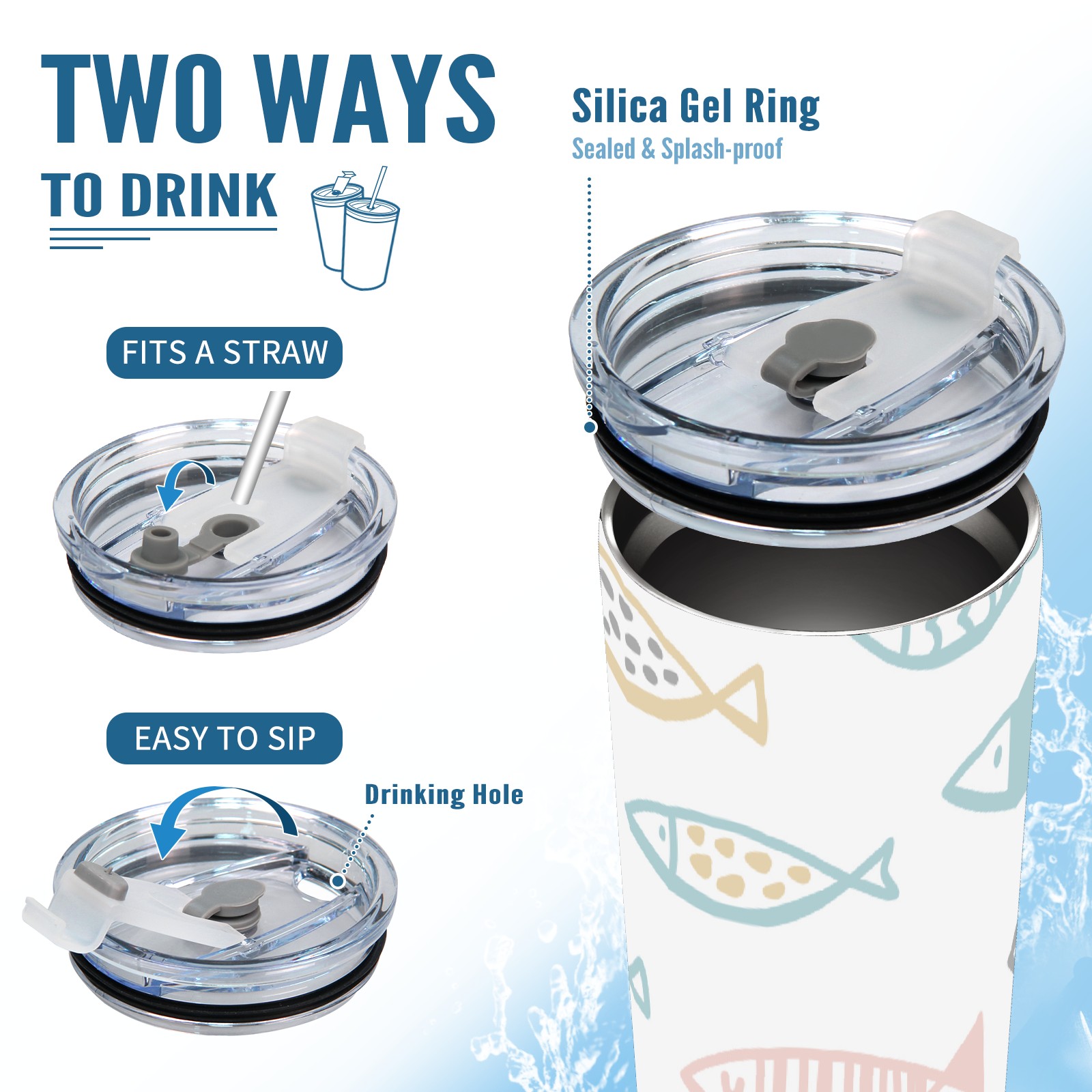 20 oz Tumbler Line Fish Pattern Stainless Steel Insulated Tumbler with Lid Double Wall Vacuum Insulated Travel Mug Cup for Coffee Ice Hot Drinks