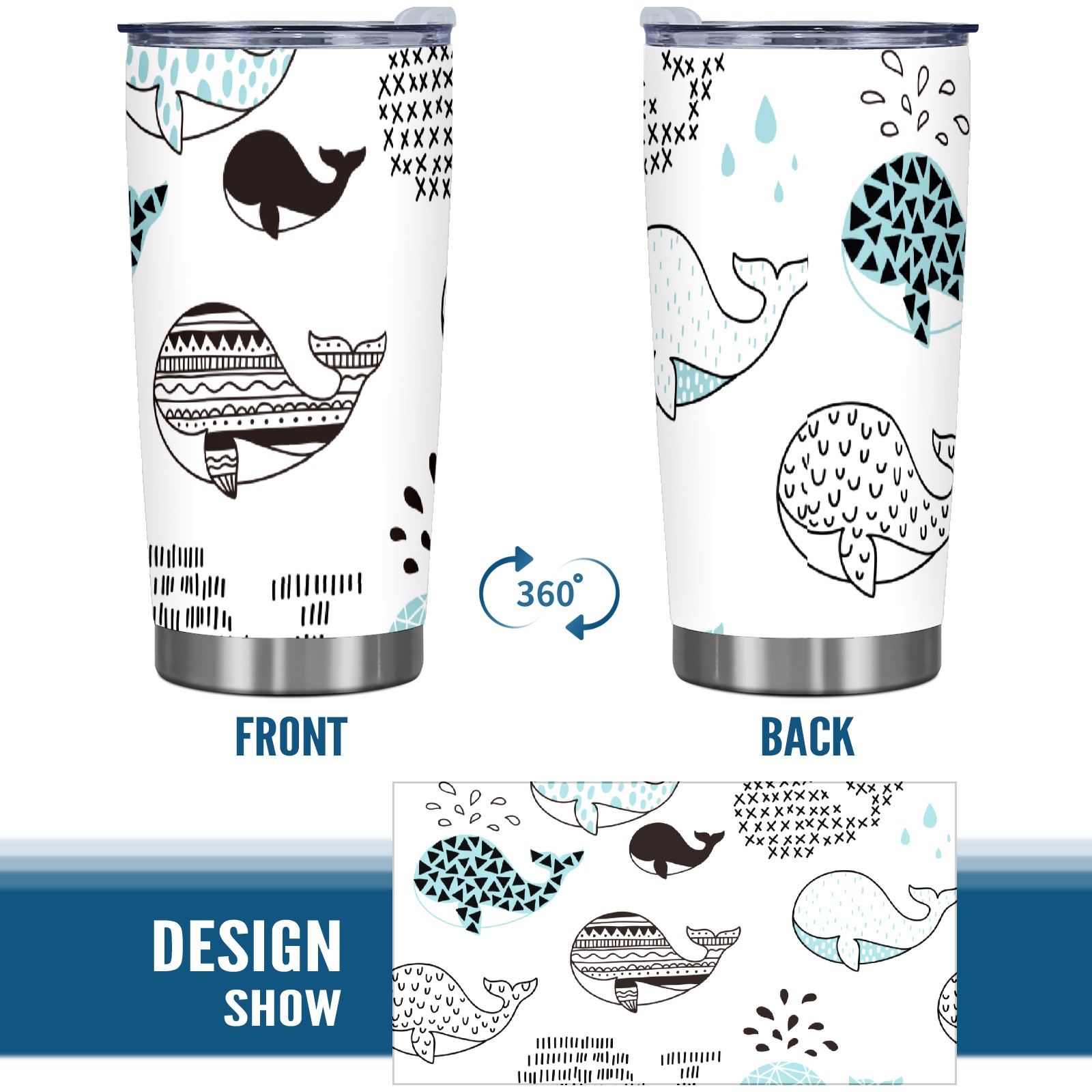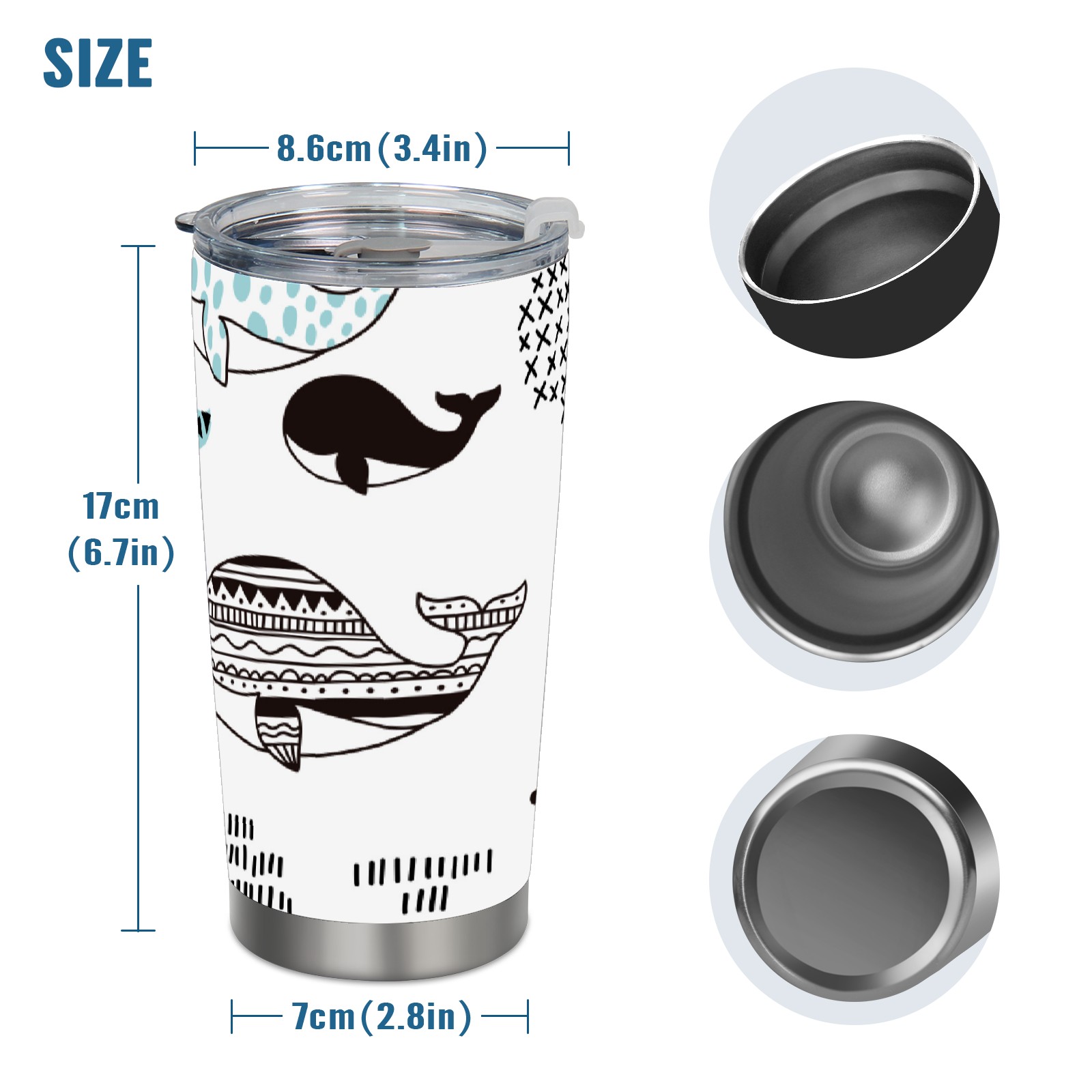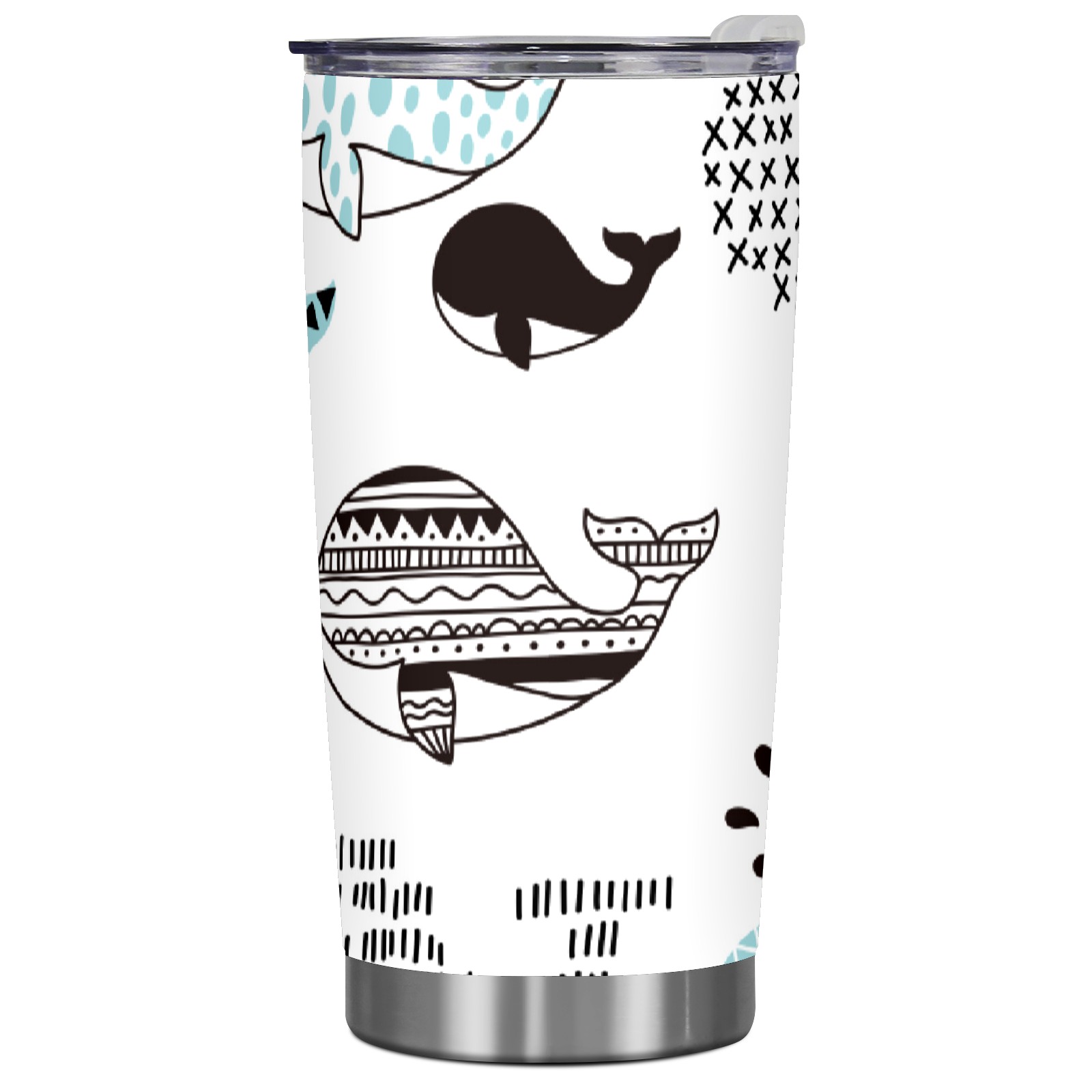 20 oz Tumbler Cute Hand Drawn Whale Pattern Stainless Steel Insulated Tumbler with Lid Double Wall Vacuum Insulated Travel Mug Cup for Coffee Ice Hot Drinks