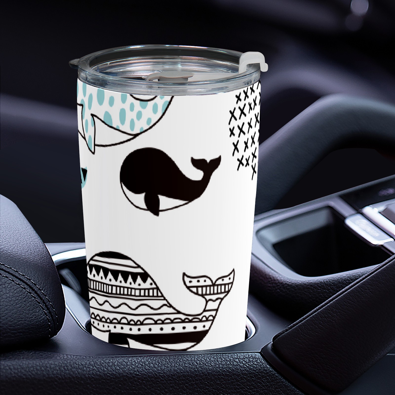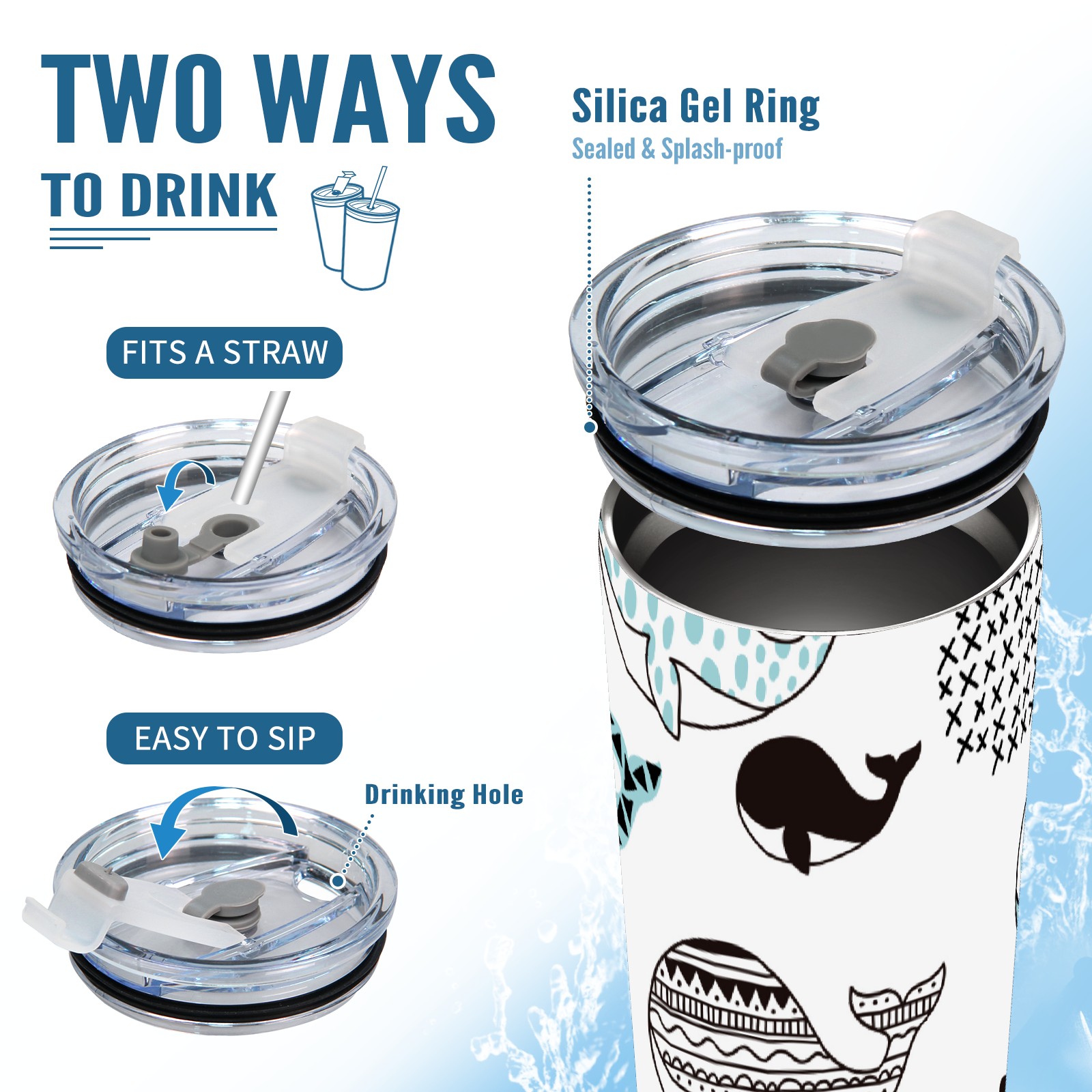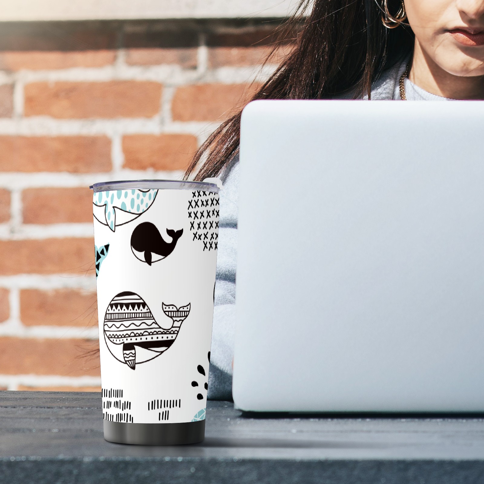 20 oz Tumbler Cute Hand Drawn Whale Pattern Stainless Steel Insulated Tumbler with Lid Double Wall Vacuum Insulated Travel Mug Cup for Coffee Ice Hot Drinks