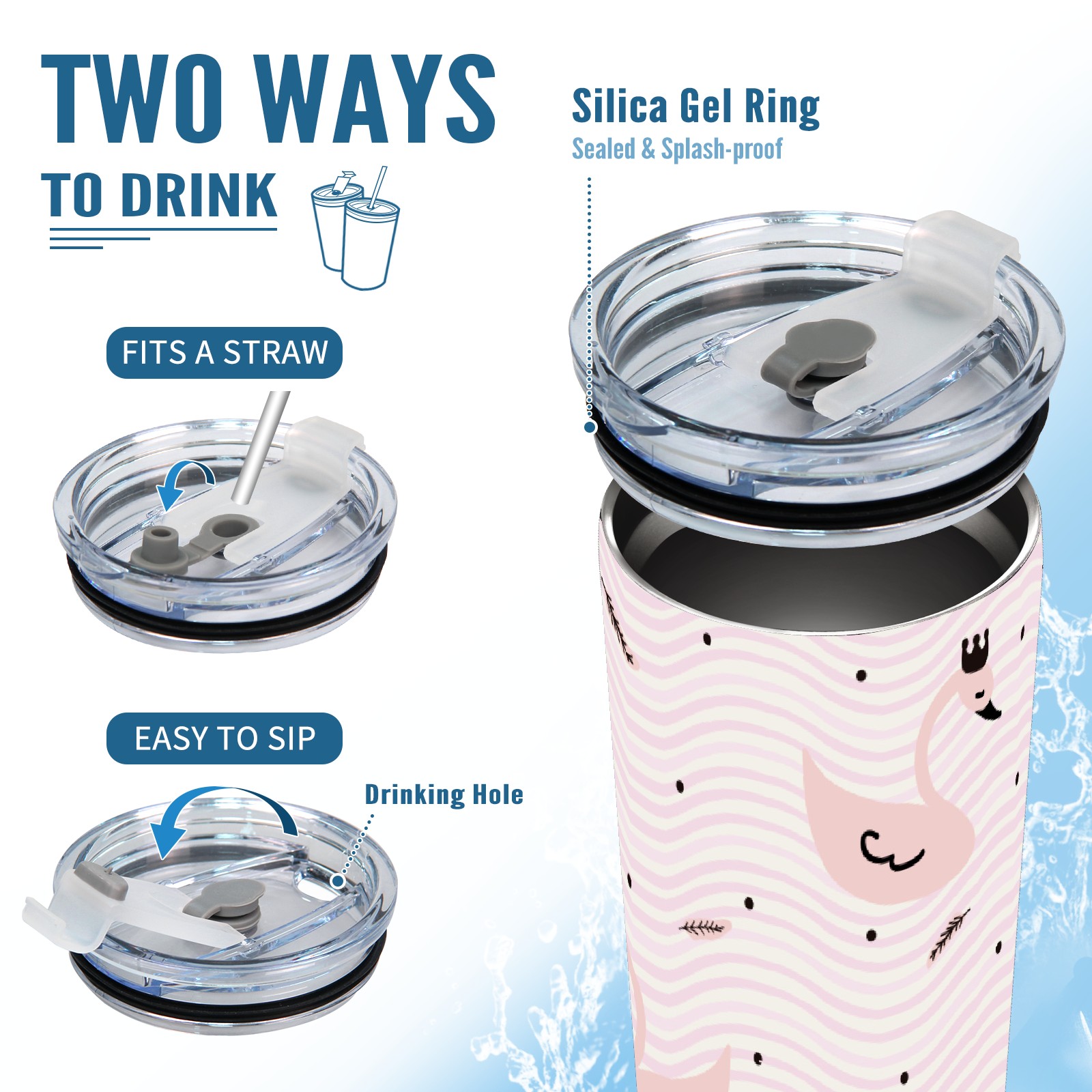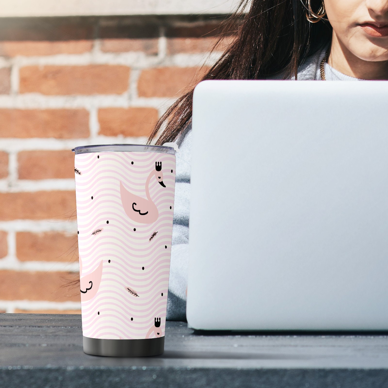 20 oz Tumbler Pink Swan Wave Stainless Steel Insulated Tumbler with Lid Double Wall Vacuum Insulated Travel Mug Cup for Coffee Ice Hot Drinks