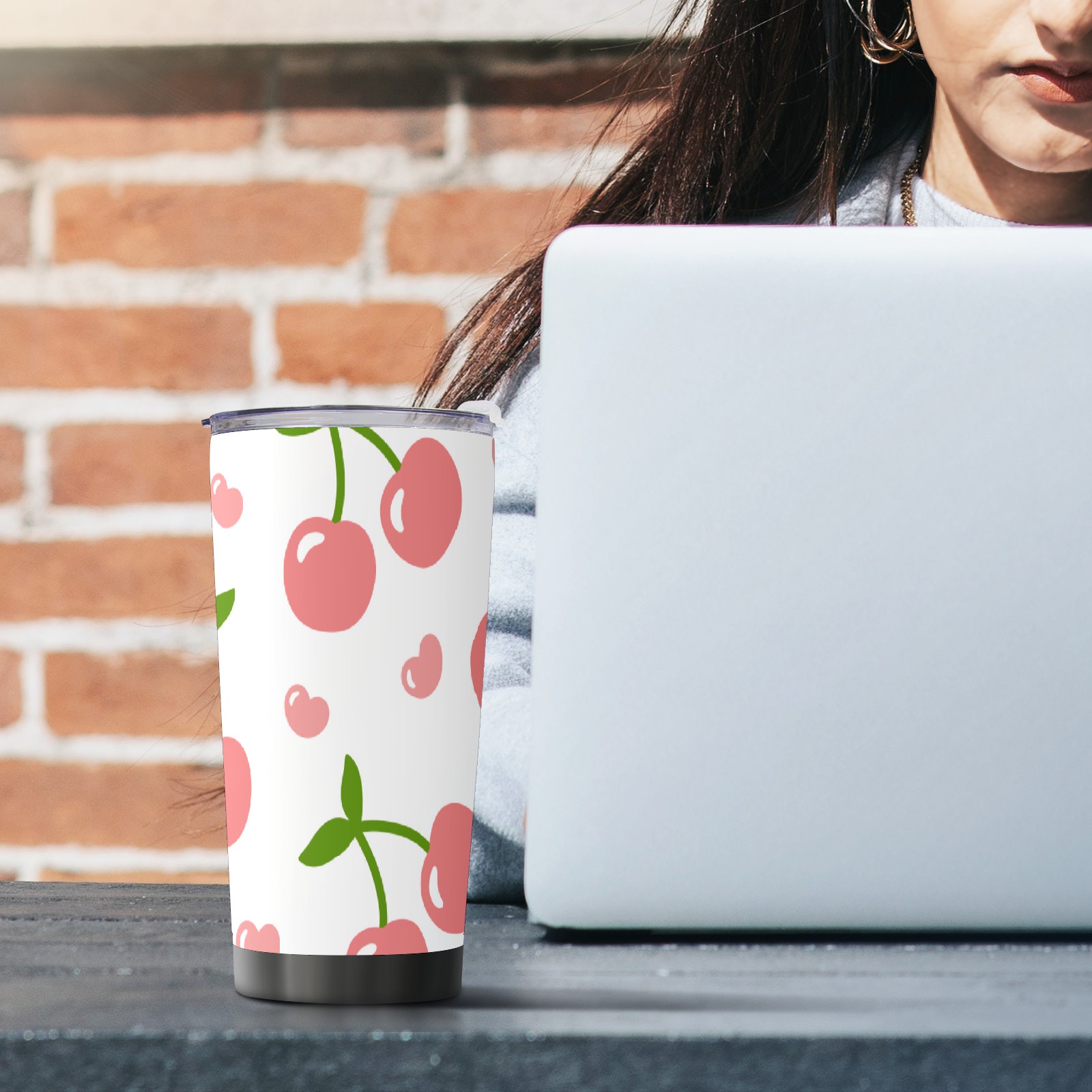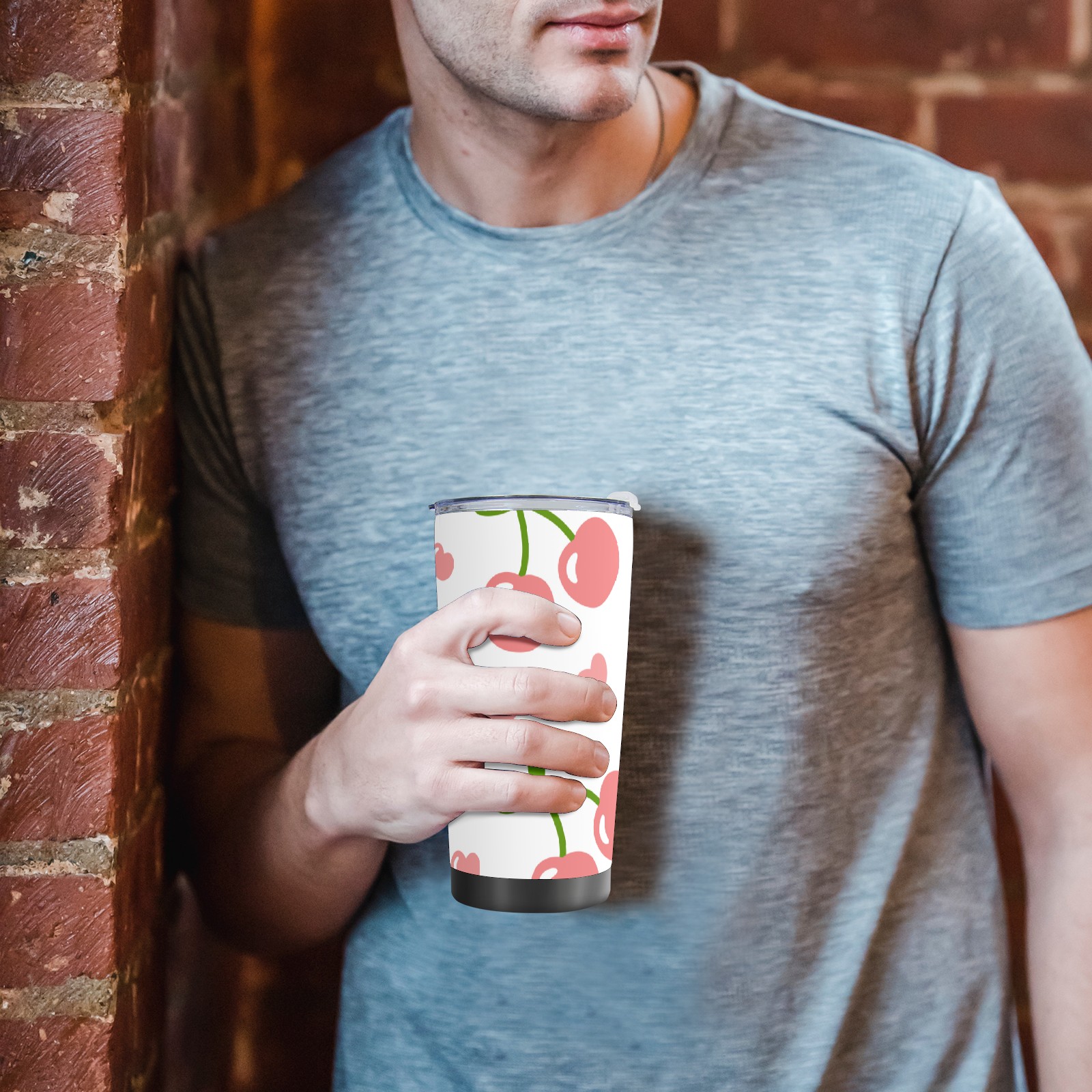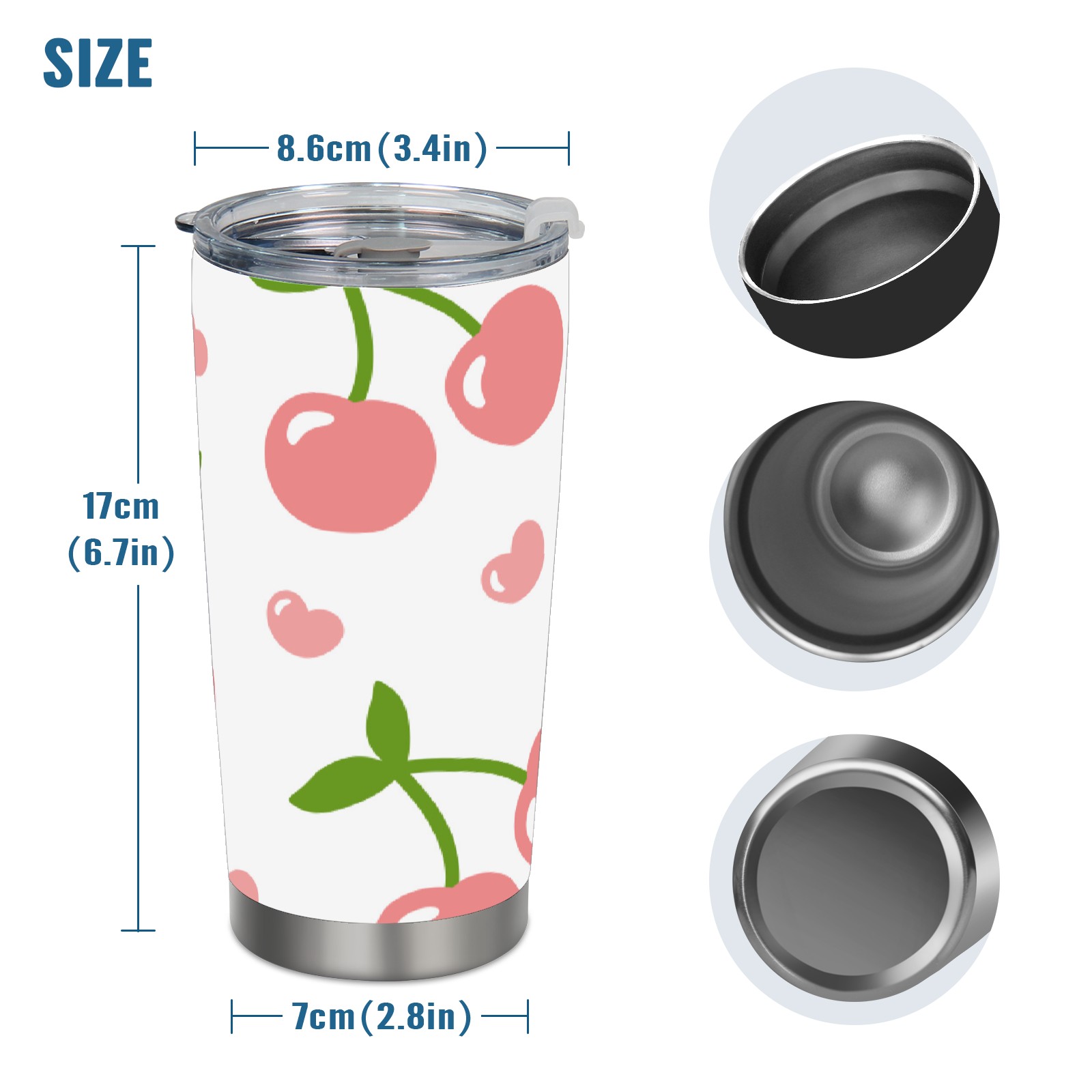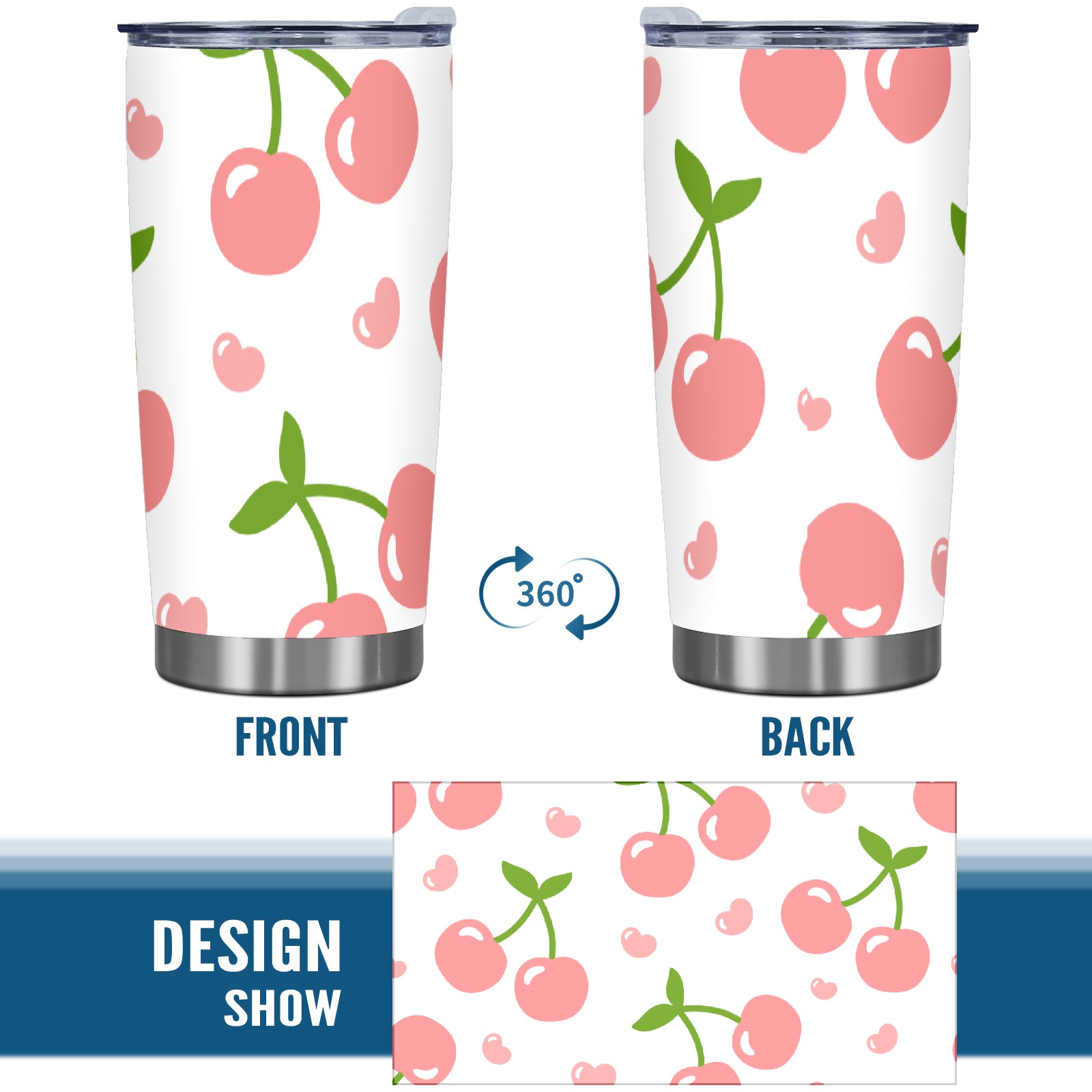 20 oz Tumbler Pink Cherry Pattern Stainless Steel Insulated Tumbler with Lid Double Wall Vacuum Insulated Travel Mug Cup for Coffee Ice Hot Drinks