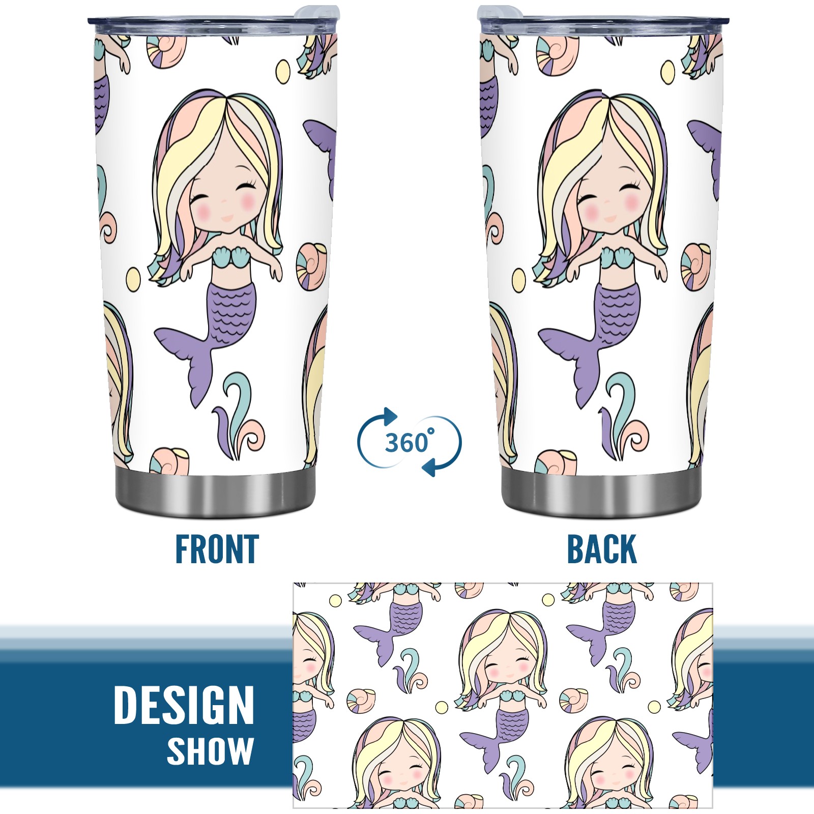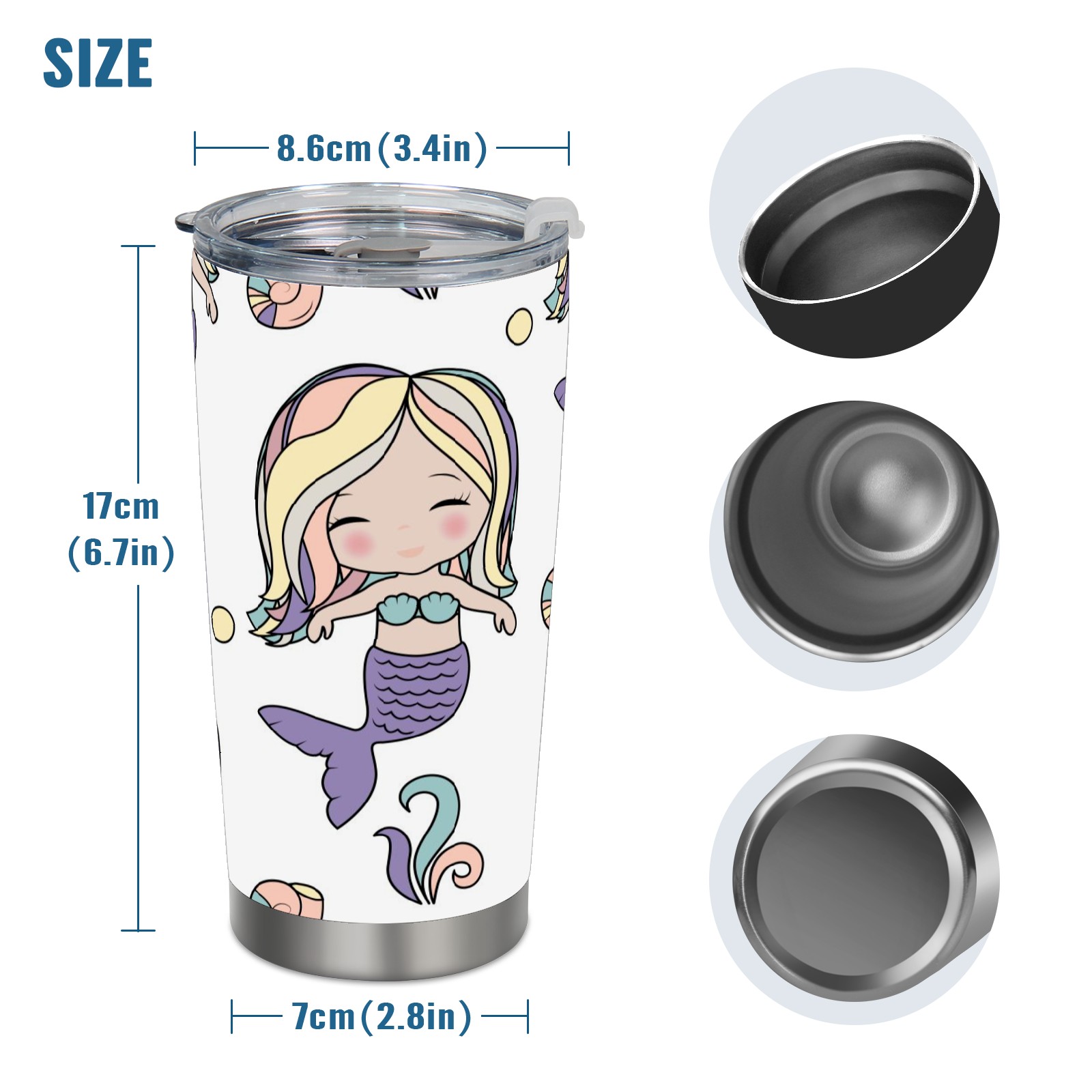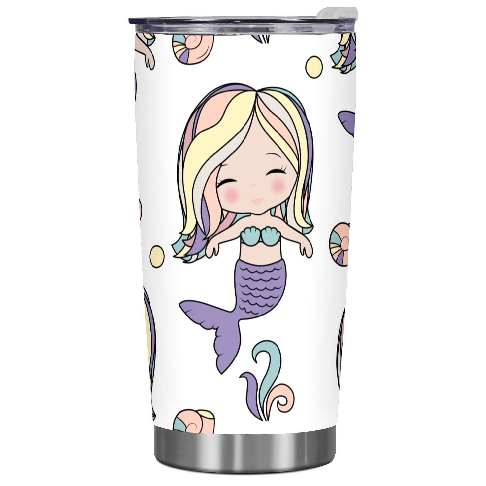 20 oz Tumbler Cute Mermaid Girl Pattern Stainless Steel Insulated Tumbler with Lid Double Wall Vacuum Insulated Travel Mug Cup for Coffee Ice Hot Drinks