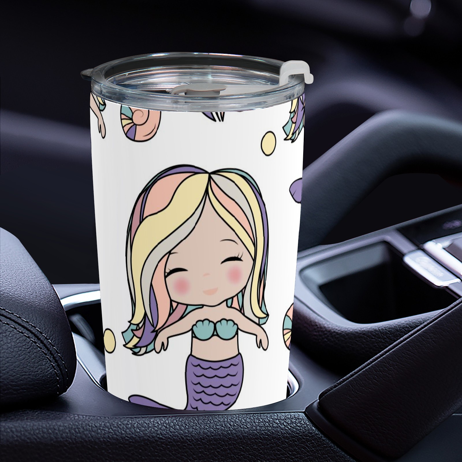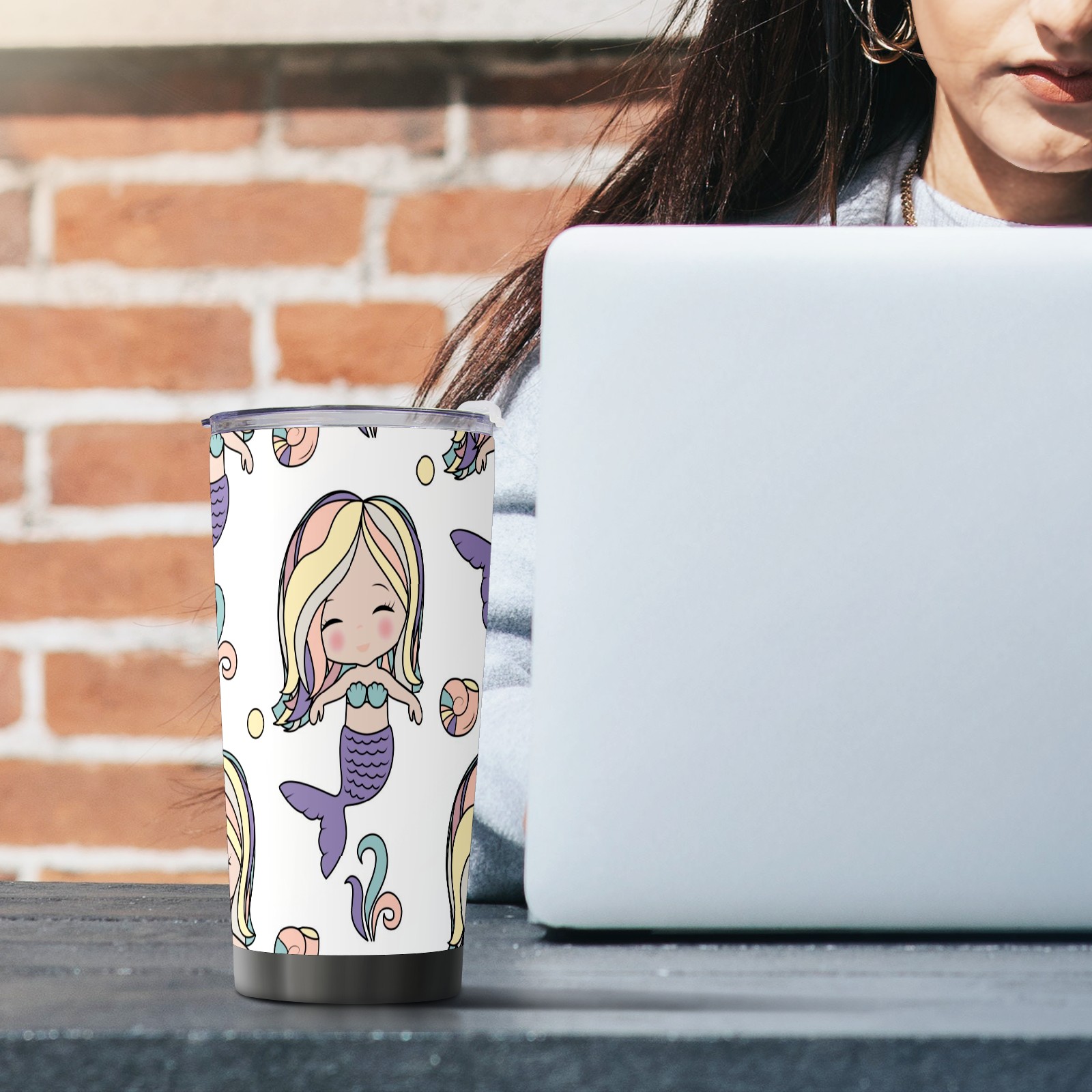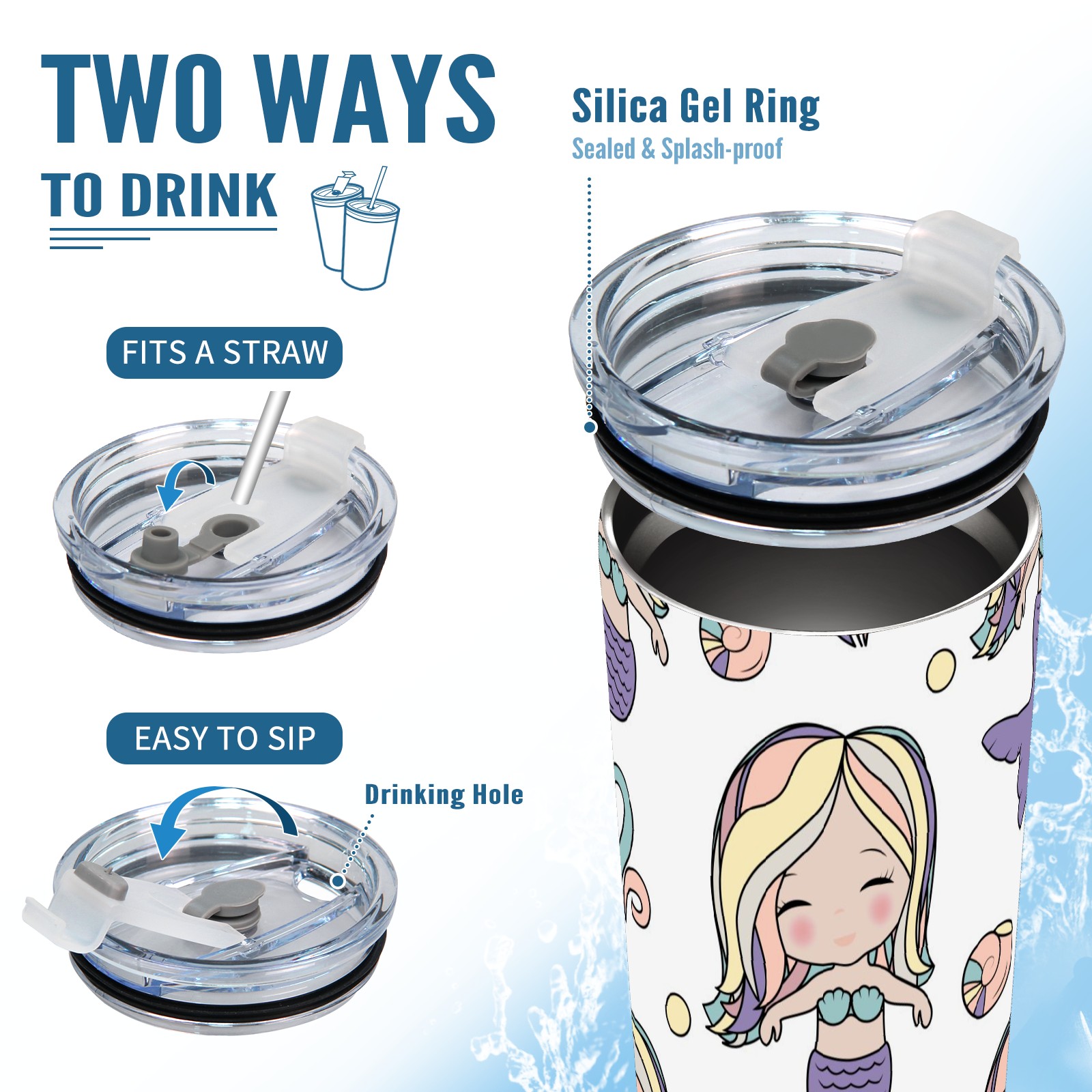 20 oz Tumbler Cute Mermaid Girl Pattern Stainless Steel Insulated Tumbler with Lid Double Wall Vacuum Insulated Travel Mug Cup for Coffee Ice Hot Drinks