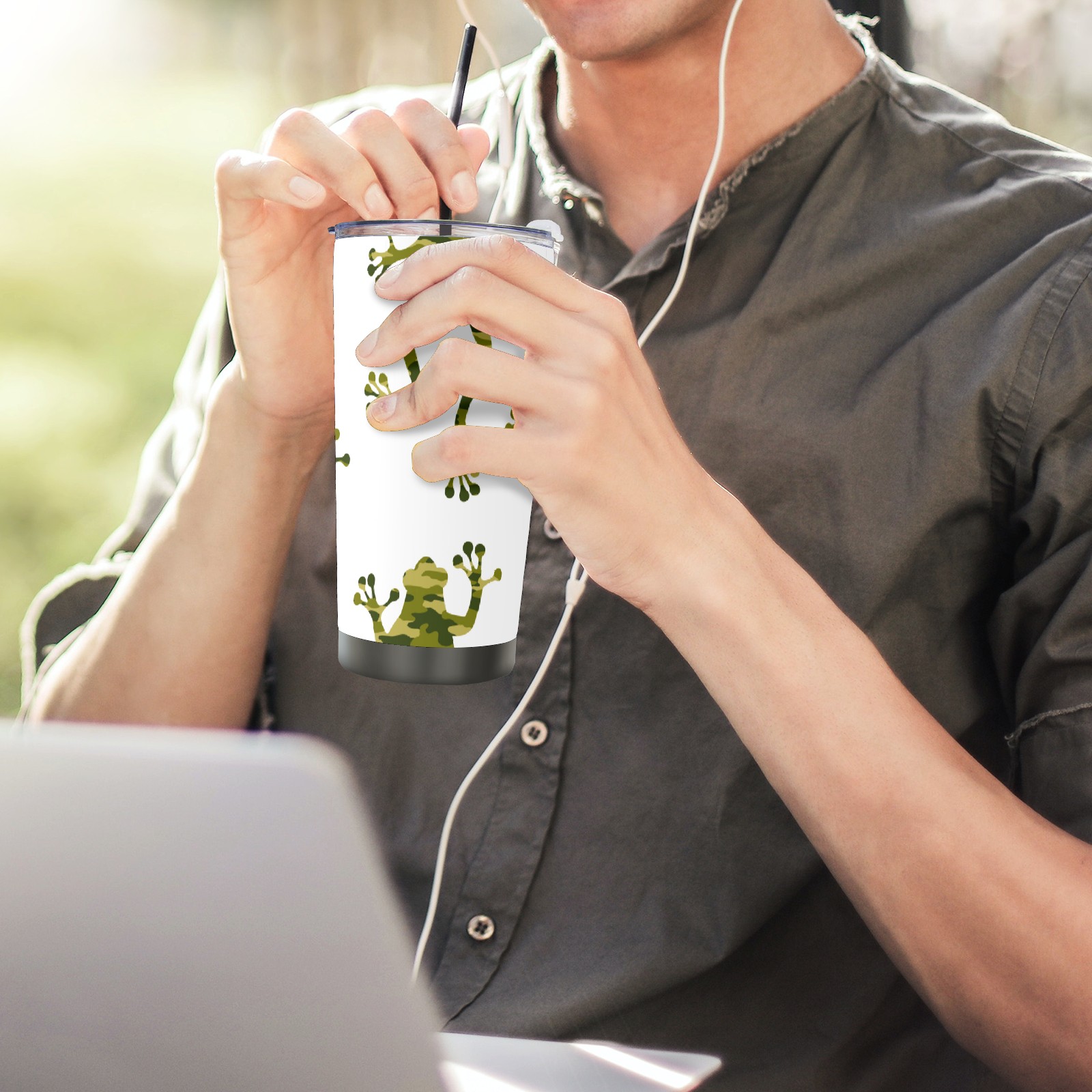 20 oz Tumbler Frog Green Sign Stainless Steel Insulated Tumbler with Lid Double Wall Vacuum Insulated Travel Mug Cup for Coffee Ice Hot Drinks