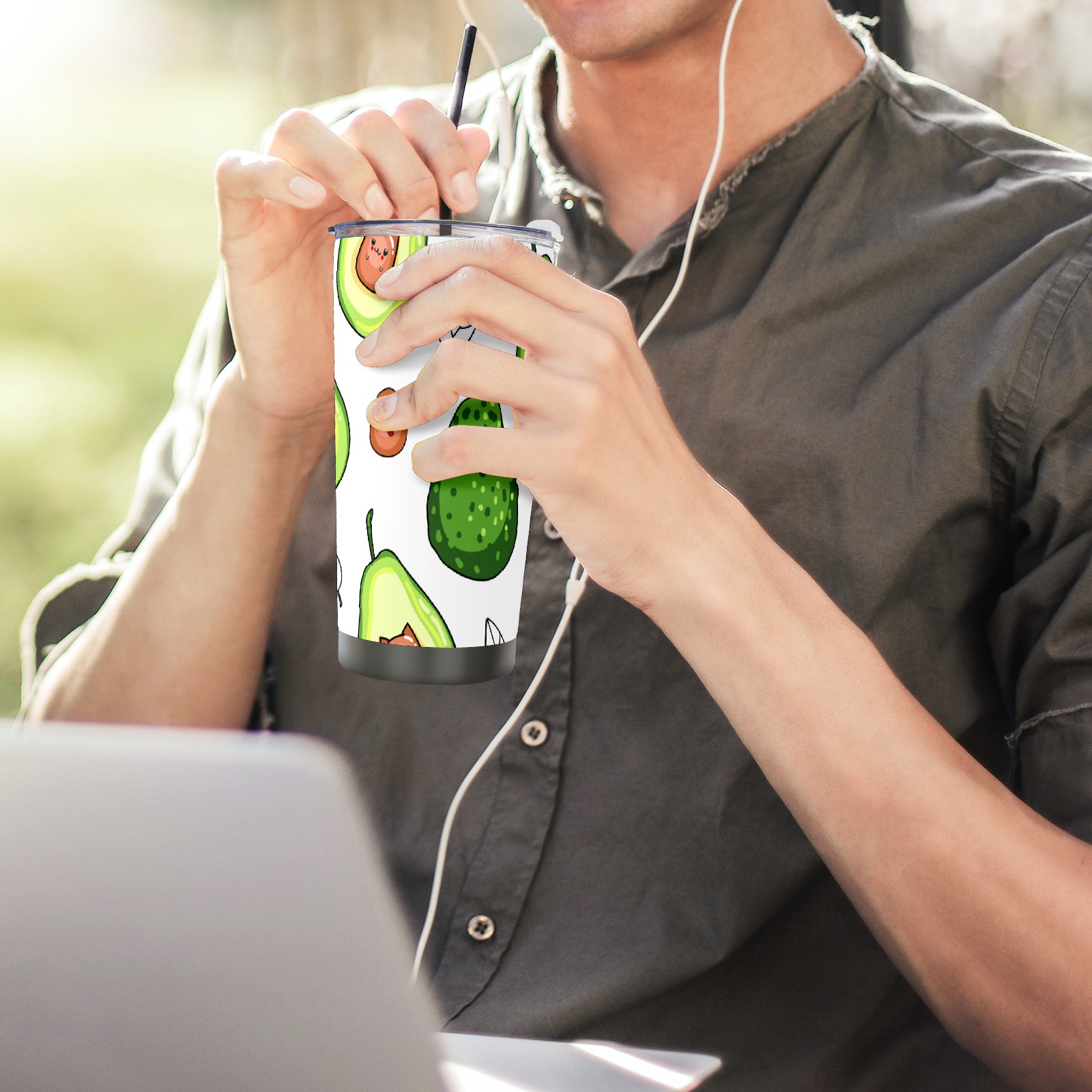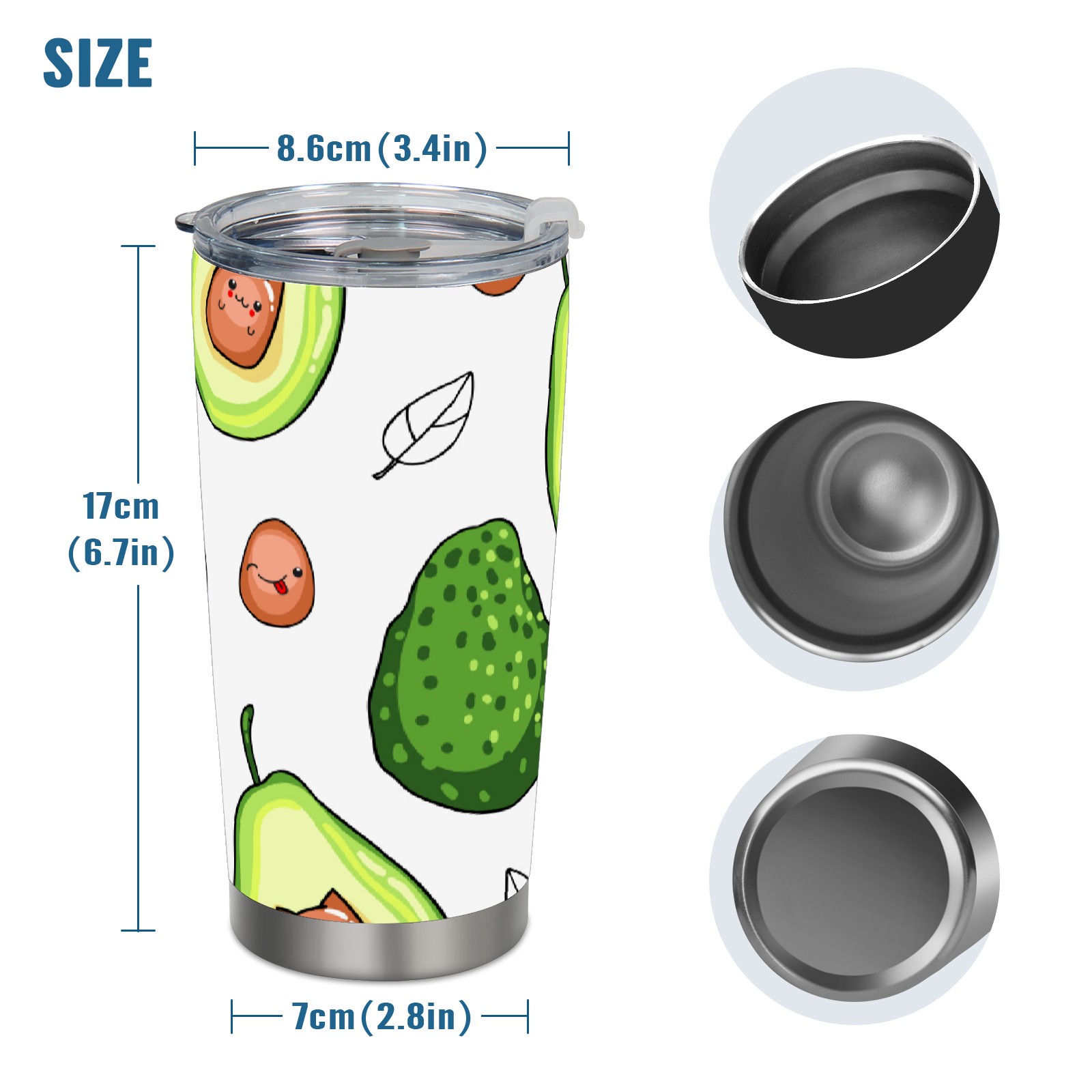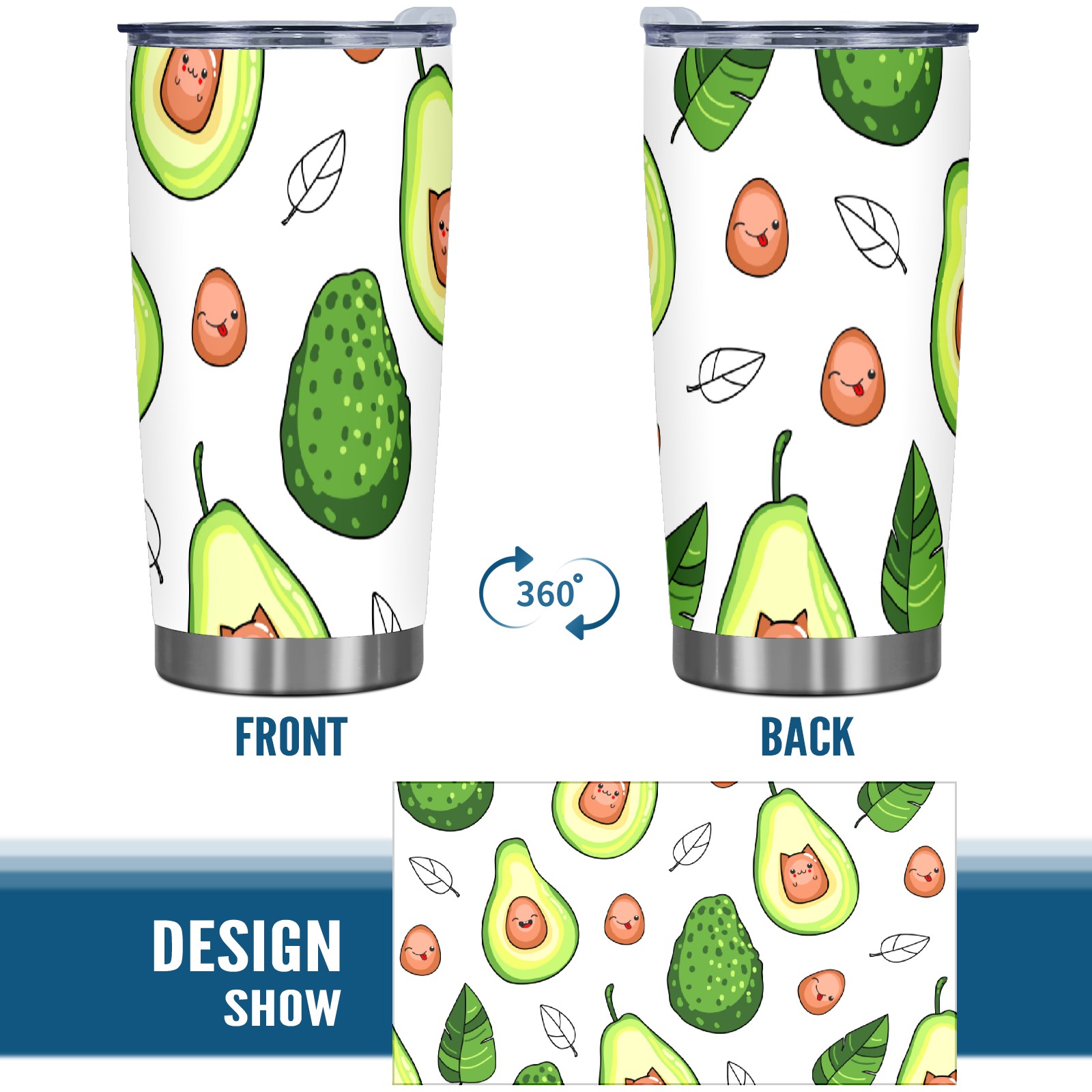 20 oz Tumbler Cute Green Avocado Pattern Stainless Steel Insulated Tumbler with Lid Double Wall Vacuum Insulated Travel Mug Cup for Coffee Ice Hot Drinks