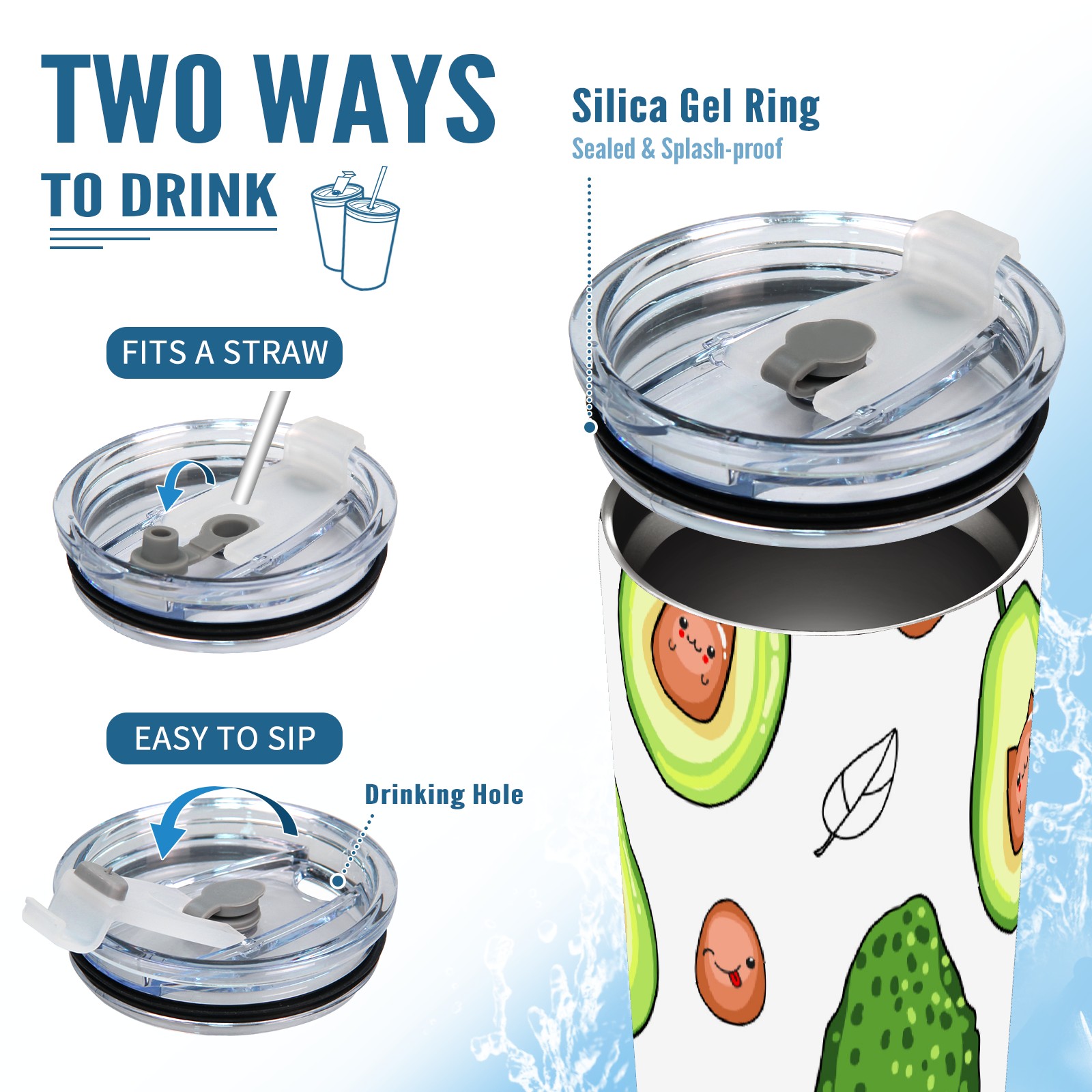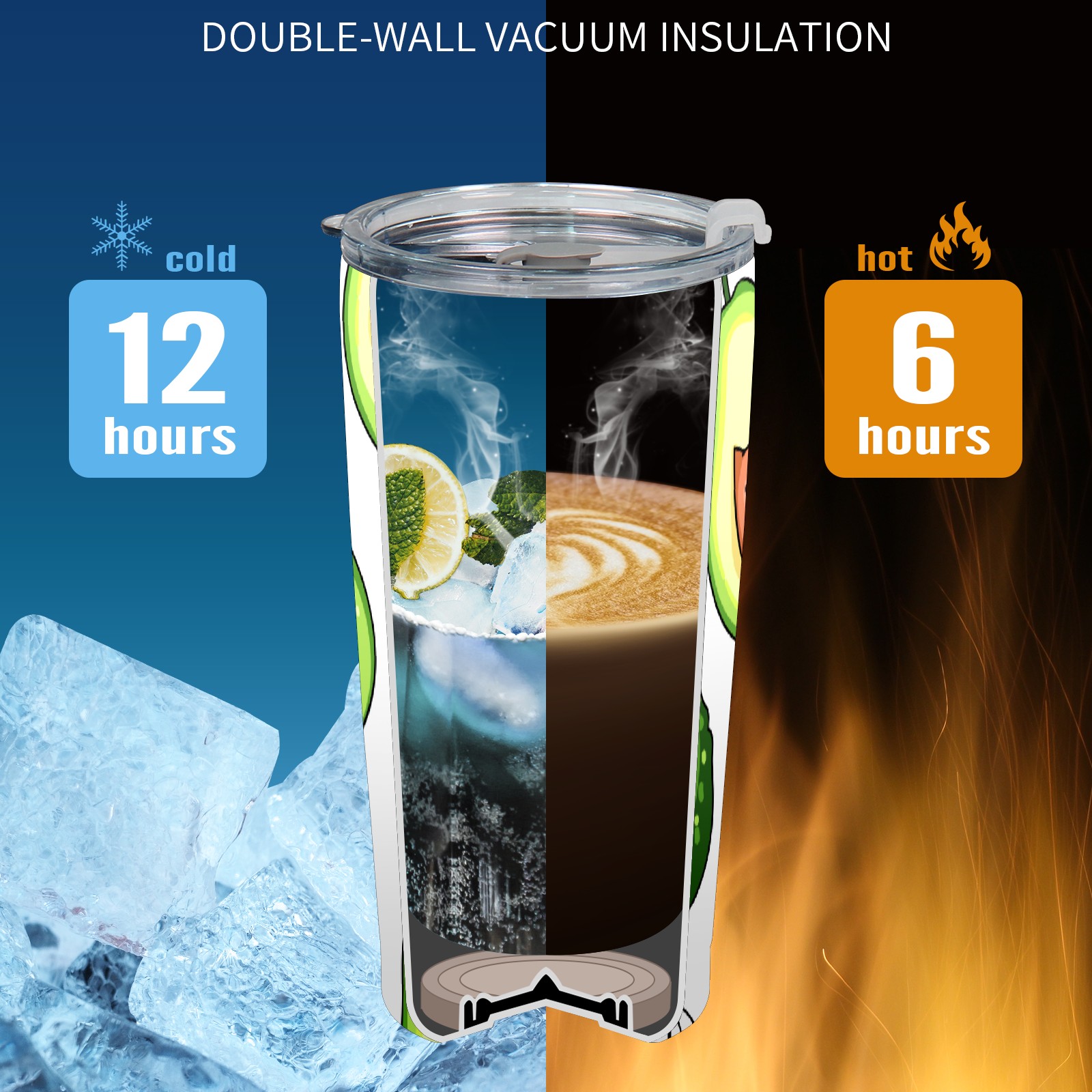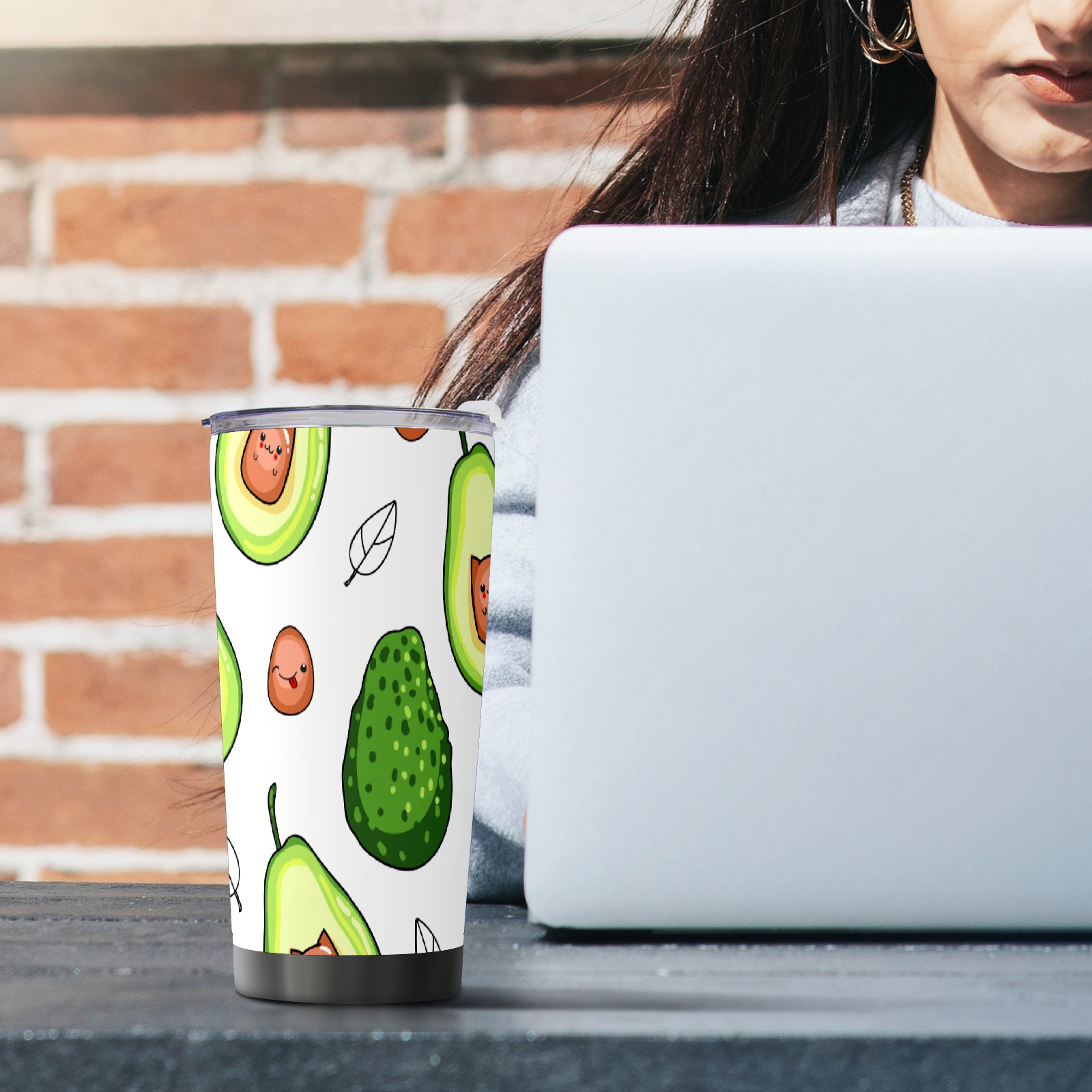 20 oz Tumbler Cute Green Avocado Pattern Stainless Steel Insulated Tumbler with Lid Double Wall Vacuum Insulated Travel Mug Cup for Coffee Ice Hot Drinks