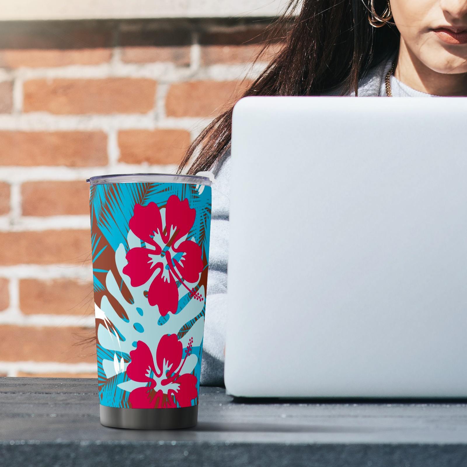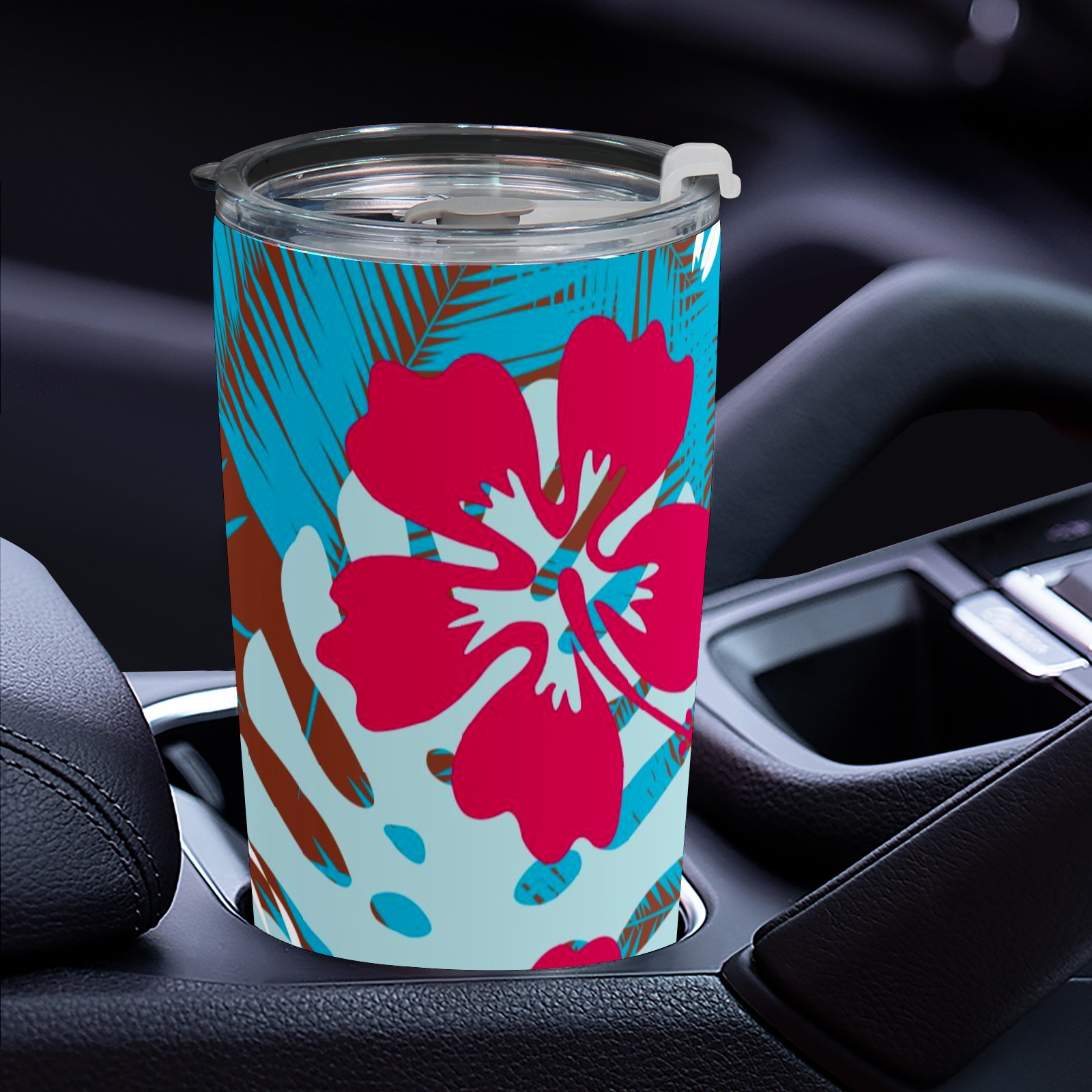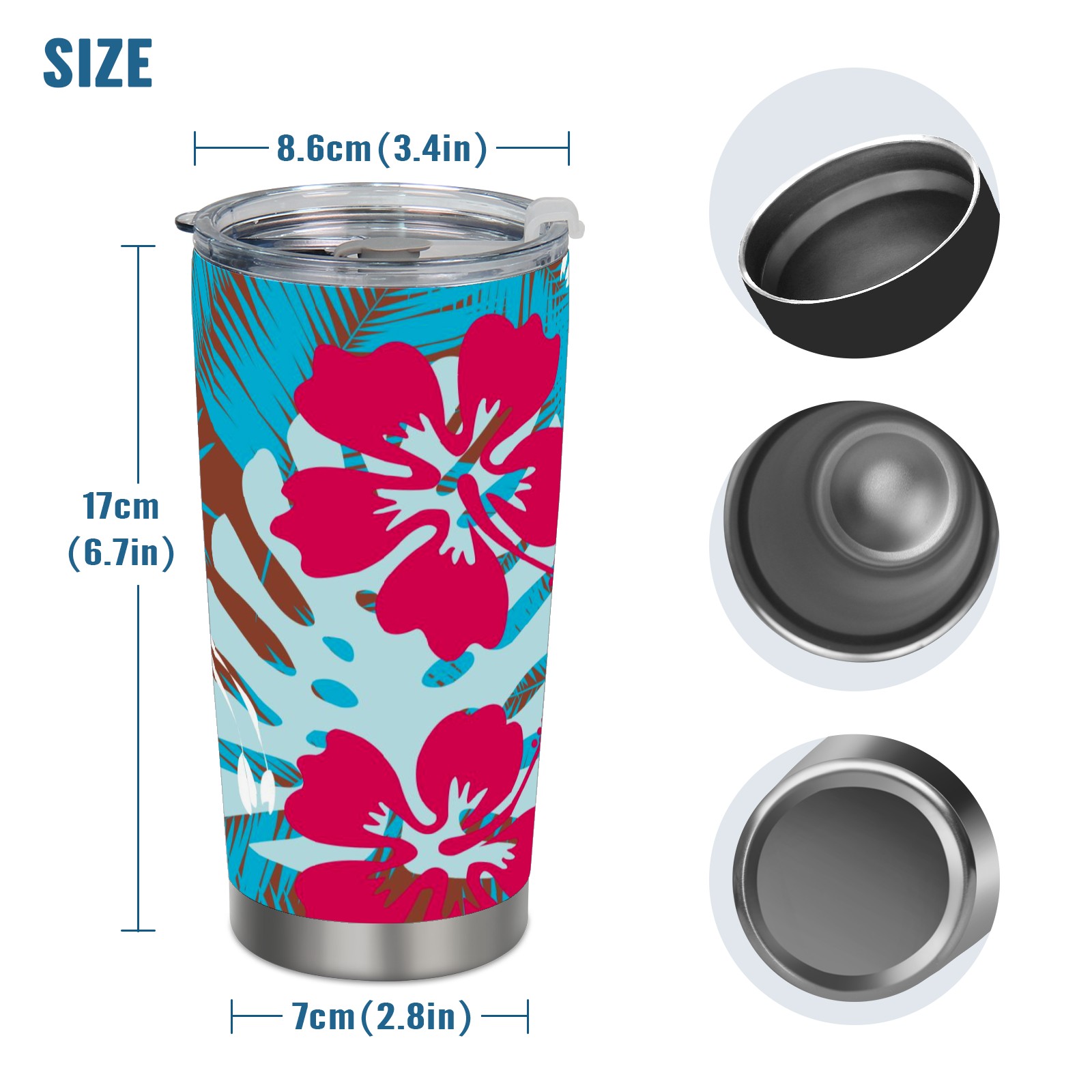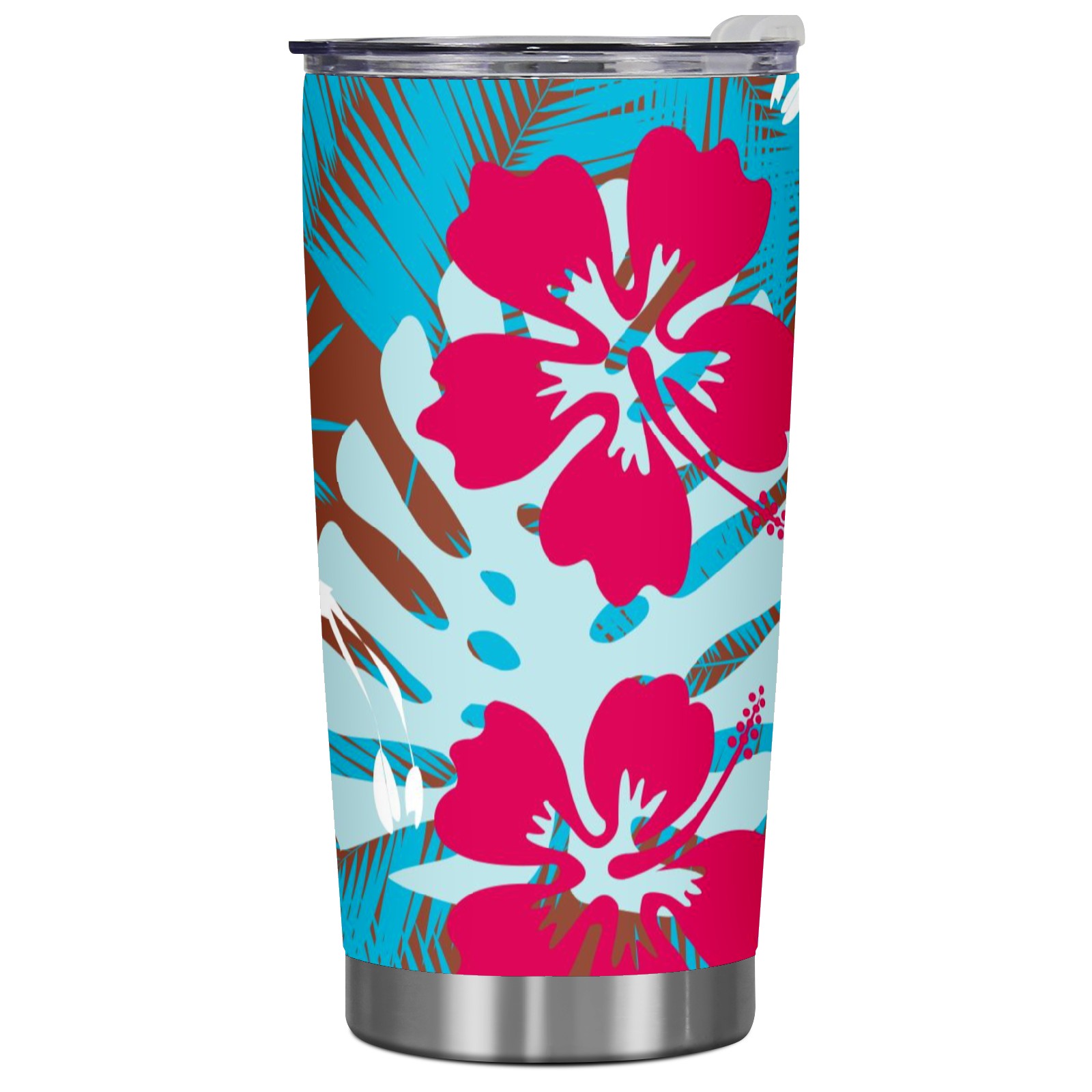 20 oz Tumbler Blue Leaf Red Flower Pattern Stainless Steel Insulated Tumbler with Lid Double Wall Vacuum Insulated Travel Mug Cup for Coffee Ice Hot Drinks