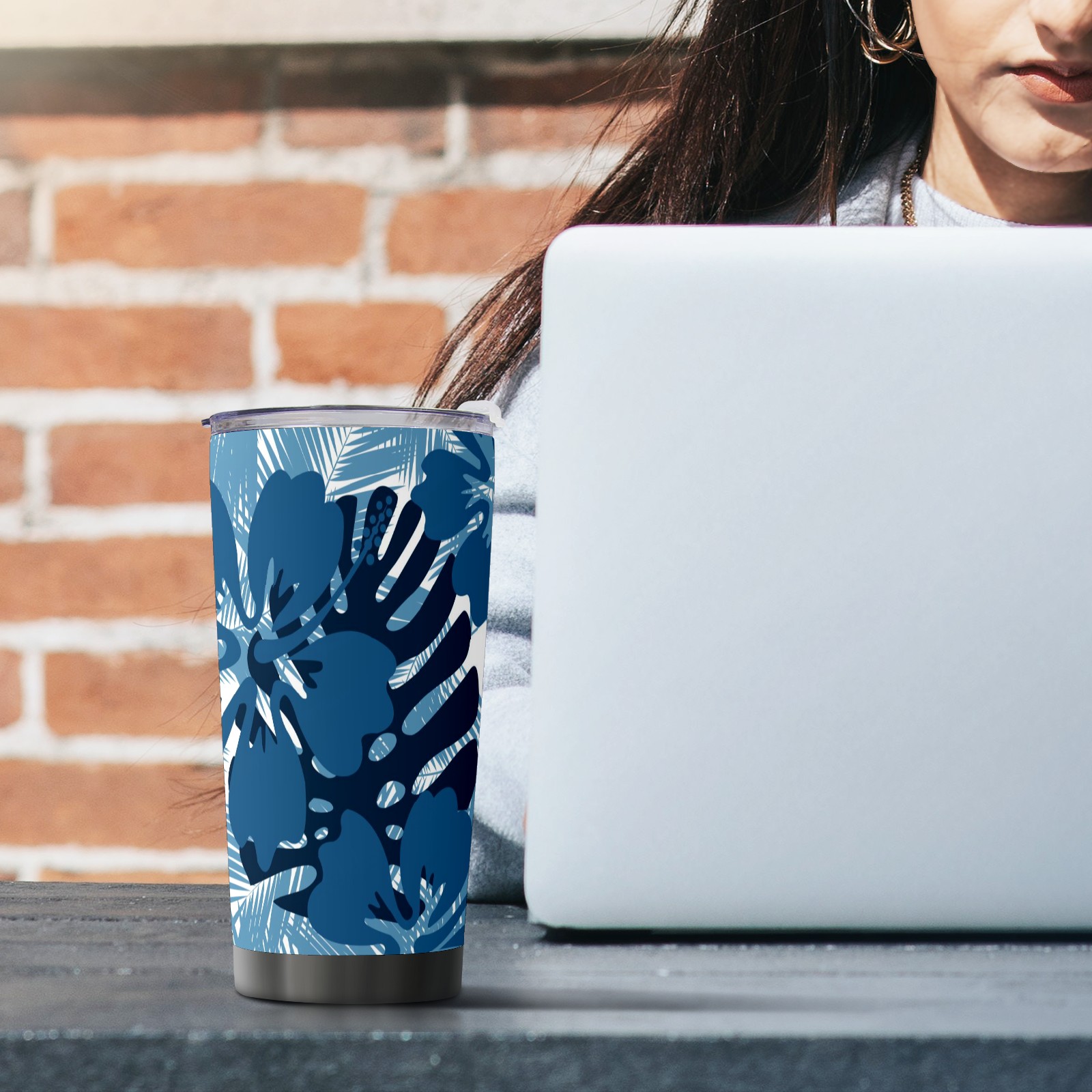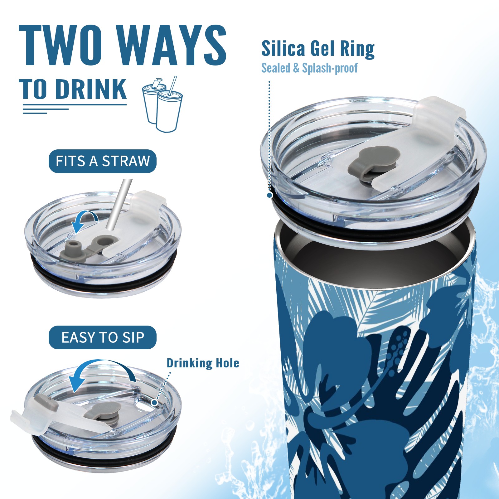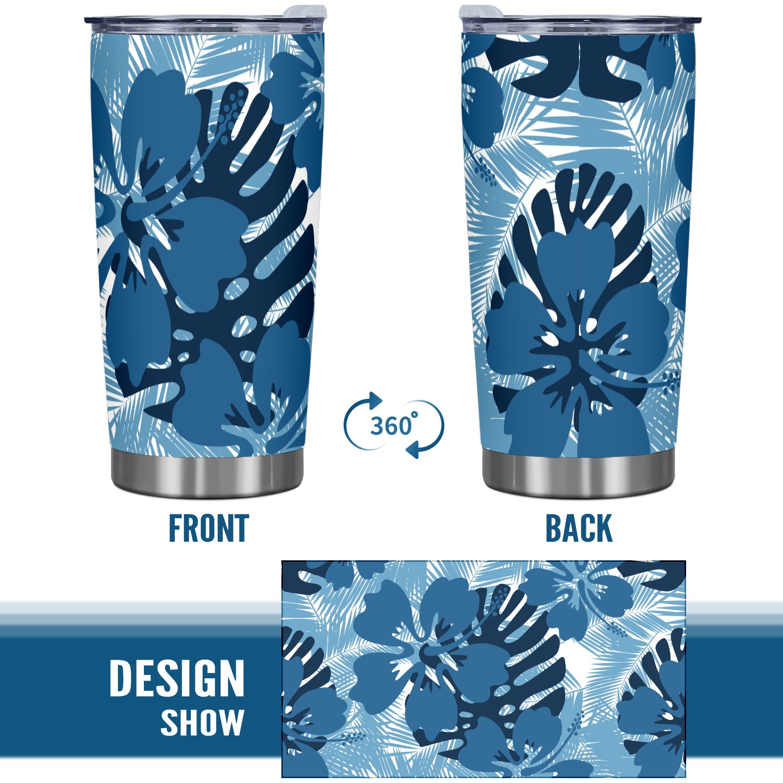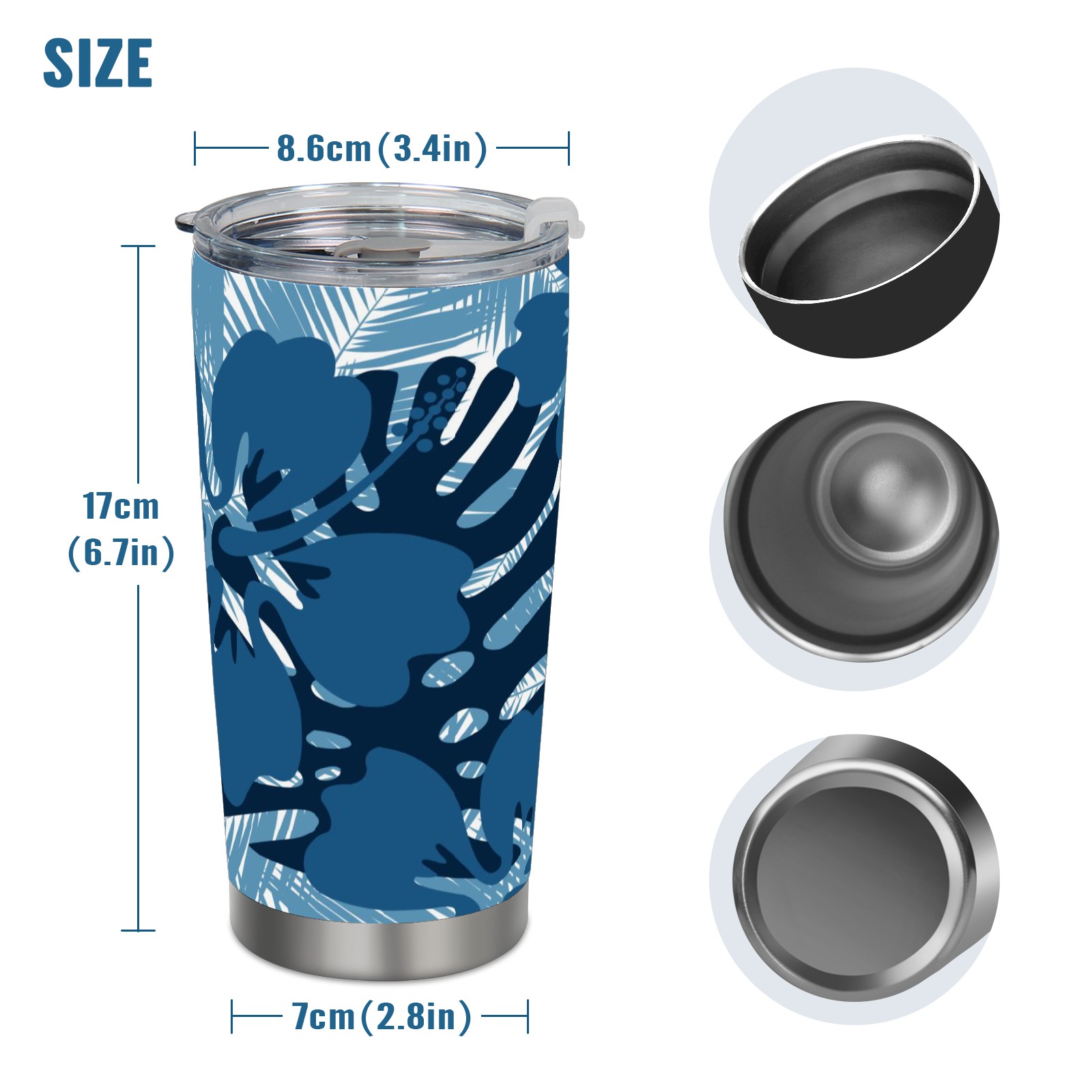 20 oz Tumbler Blue Leaf Pattern Stainless Steel Insulated Tumbler with Lid Double Wall Vacuum Insulated Travel Mug Cup for Coffee Ice Hot Drinks