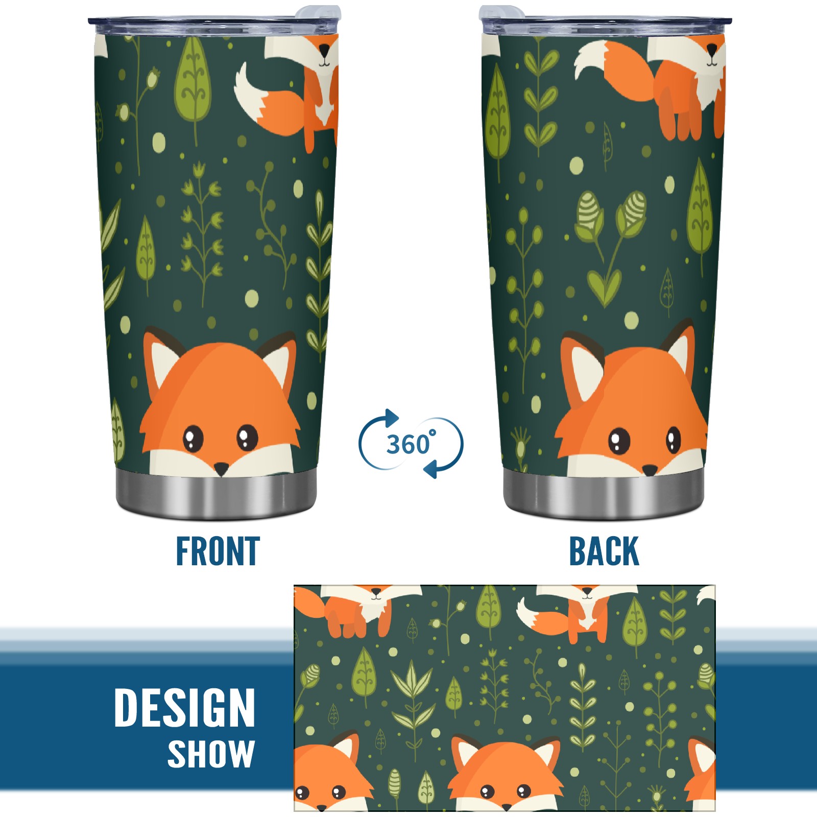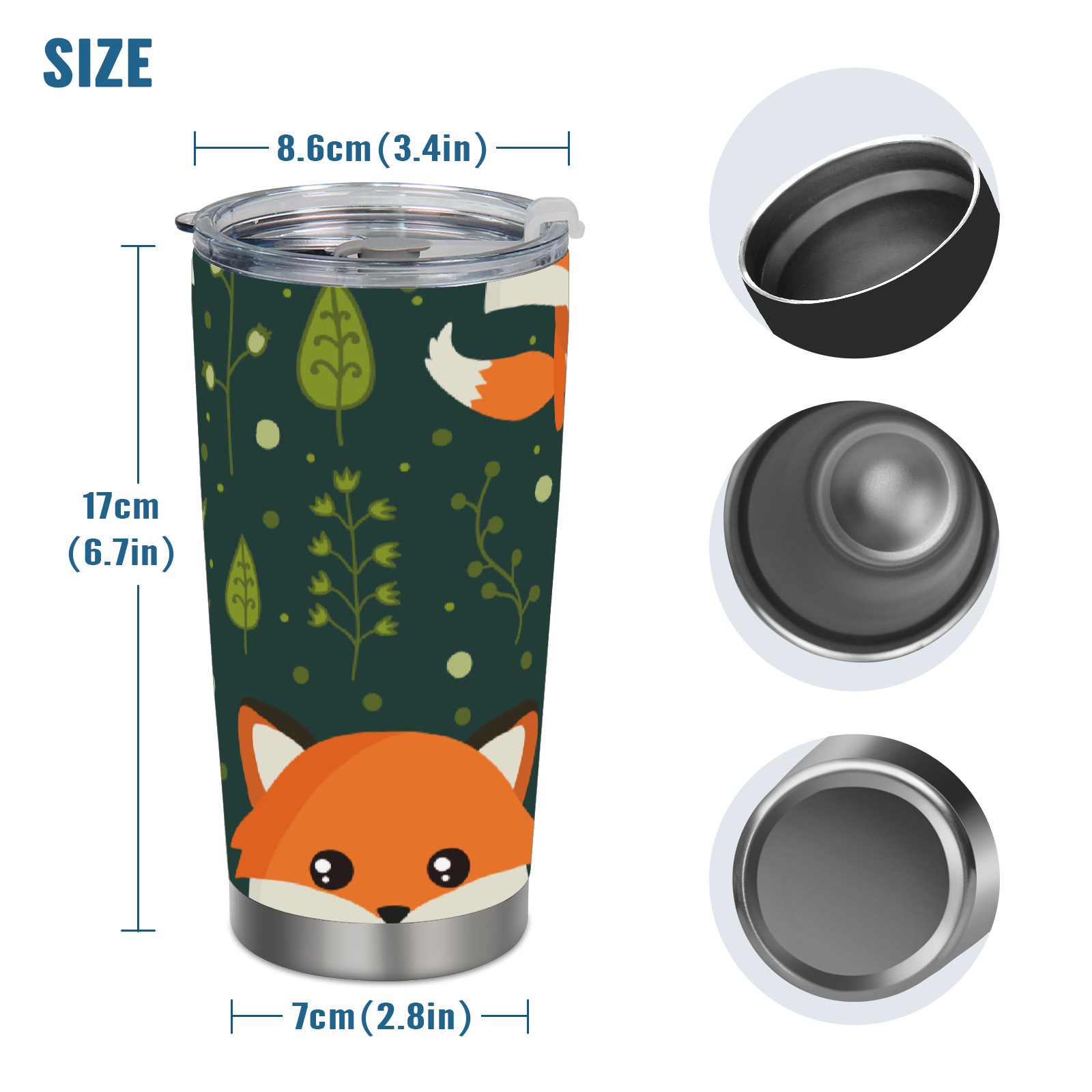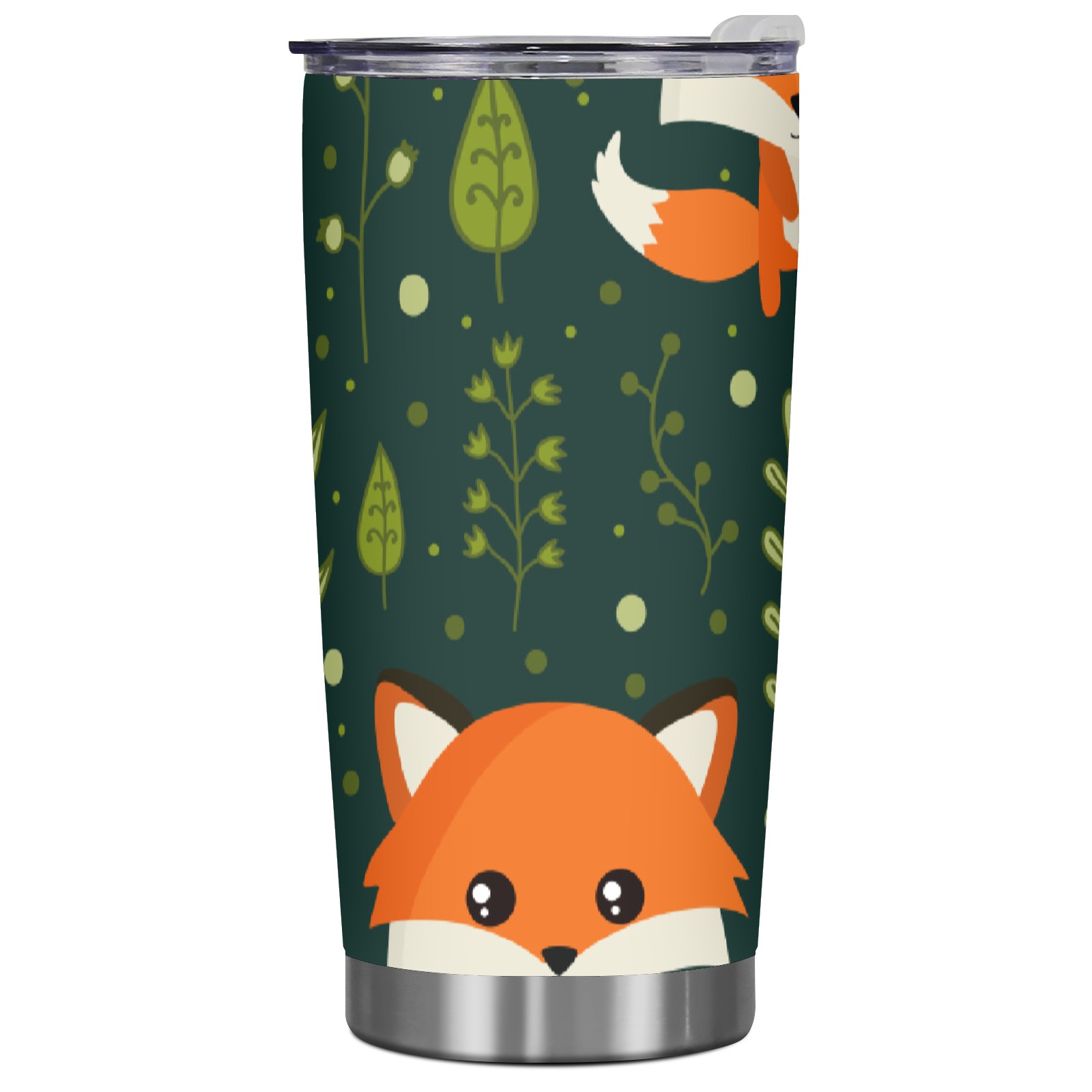 20 oz Tumbler Orange Fox Green Leaf Pattern Stainless Steel Insulated Tumbler with Lid Double Wall Vacuum Insulated Travel Mug Cup for Coffee Ice Hot Drinks