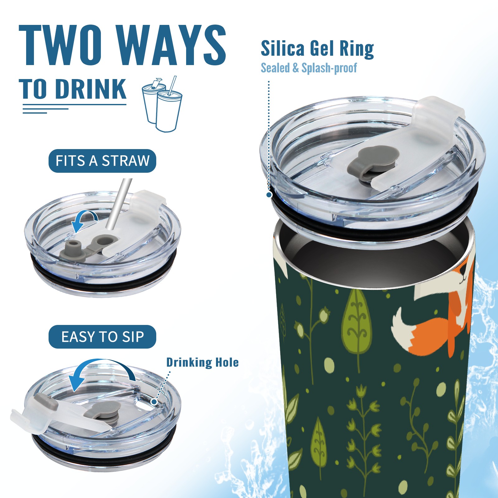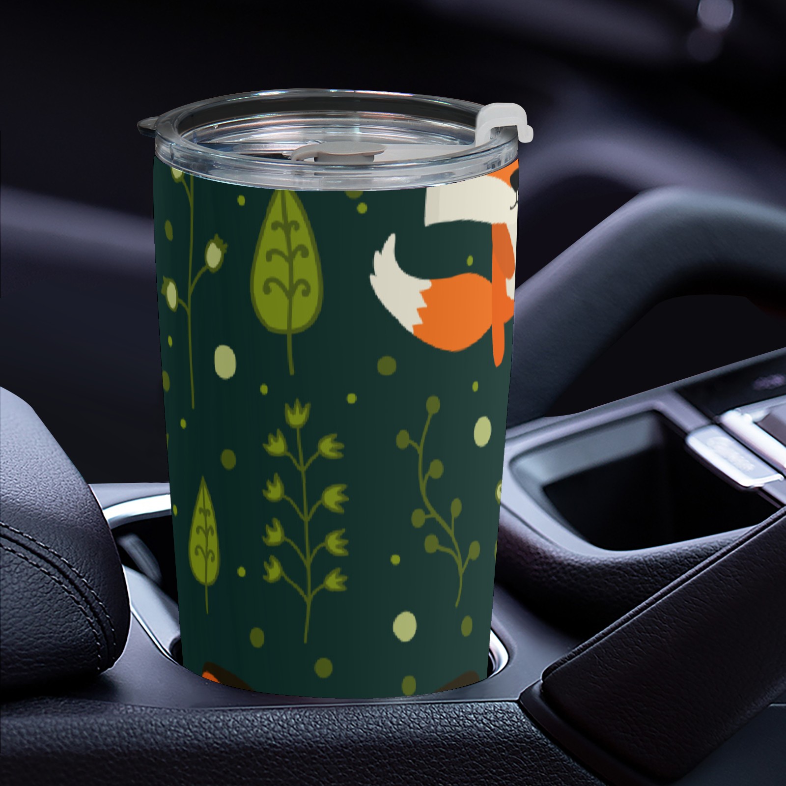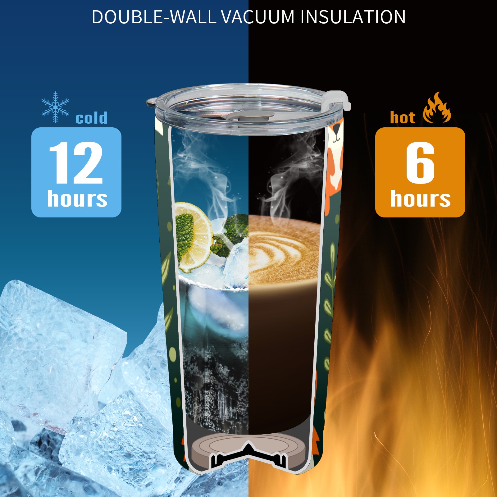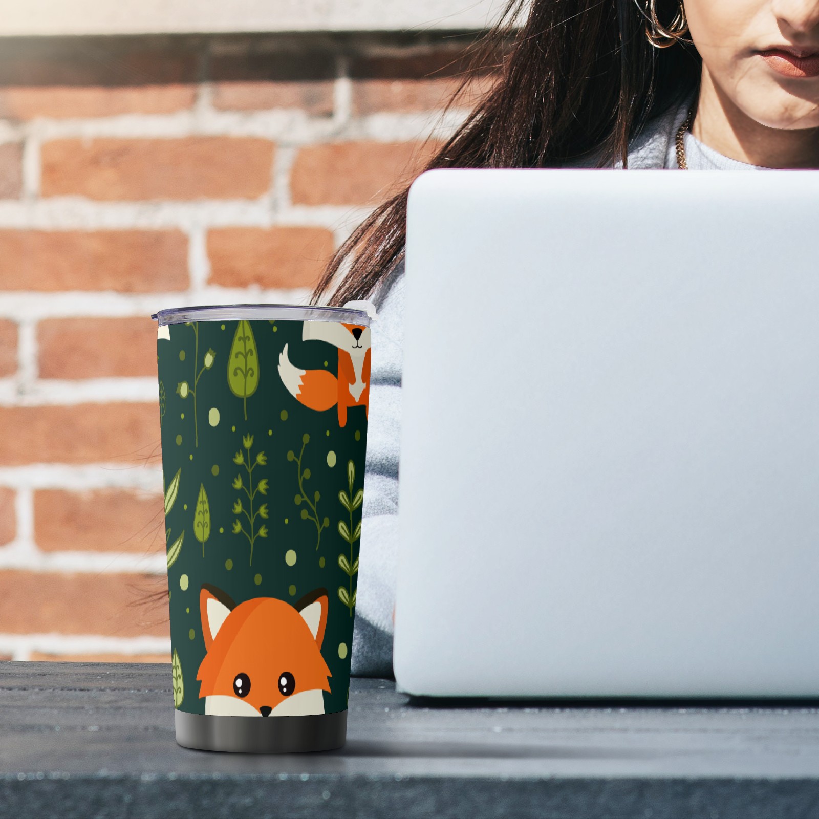 20 oz Tumbler Orange Fox Green Leaf Pattern Stainless Steel Insulated Tumbler with Lid Double Wall Vacuum Insulated Travel Mug Cup for Coffee Ice Hot Drinks