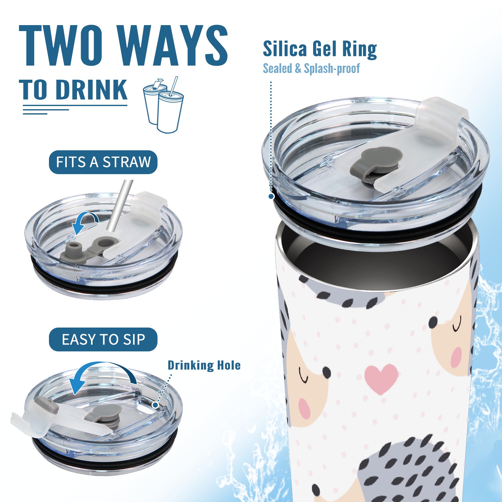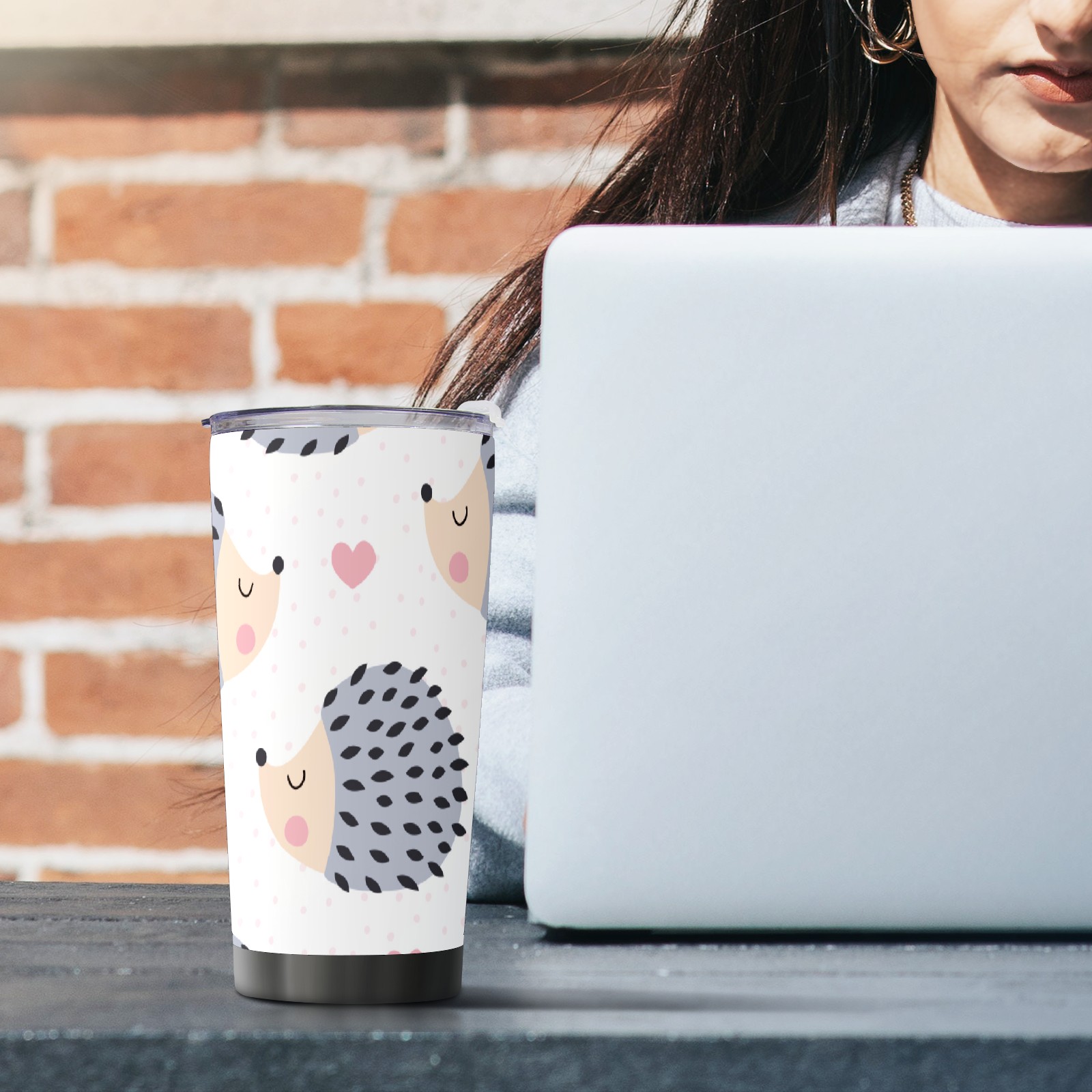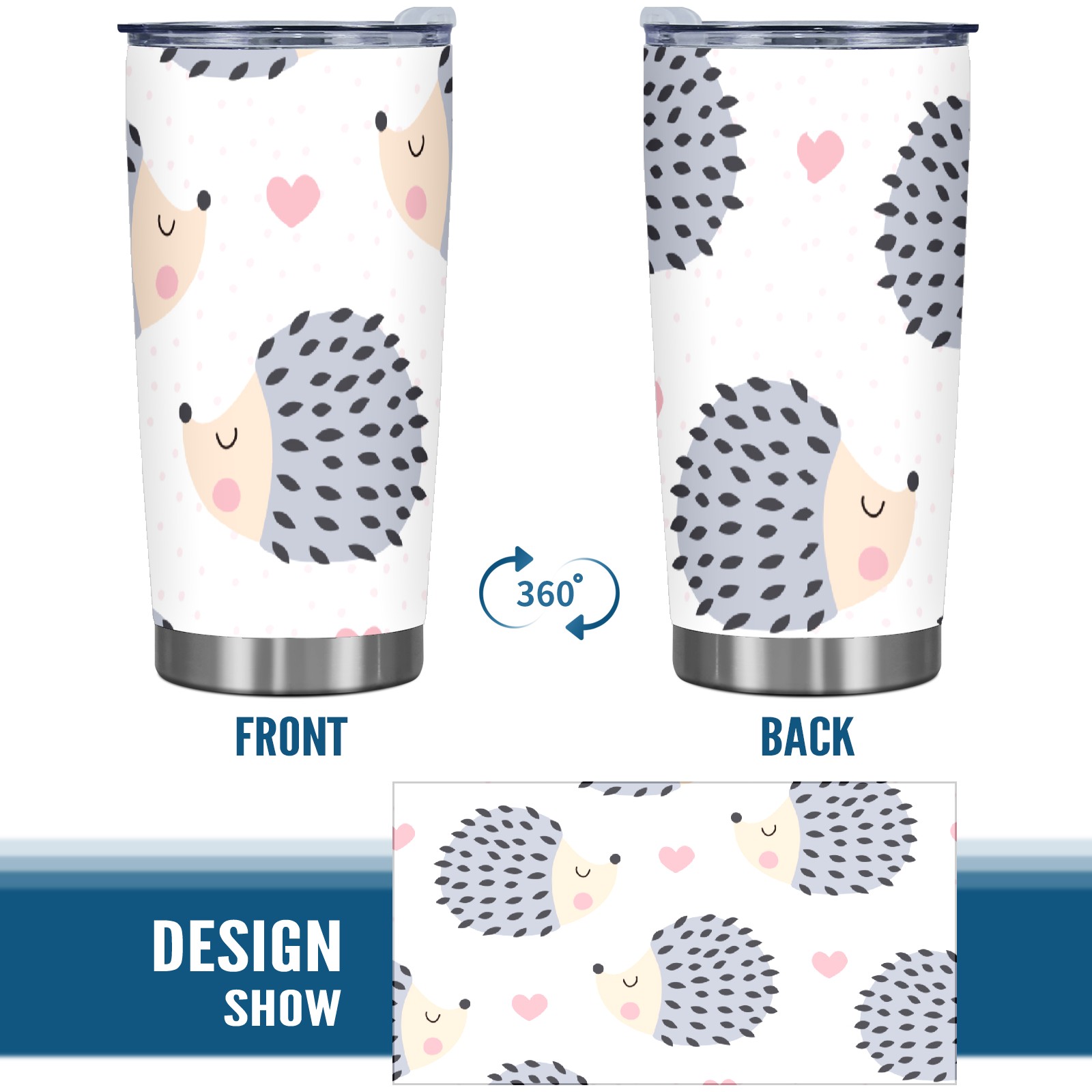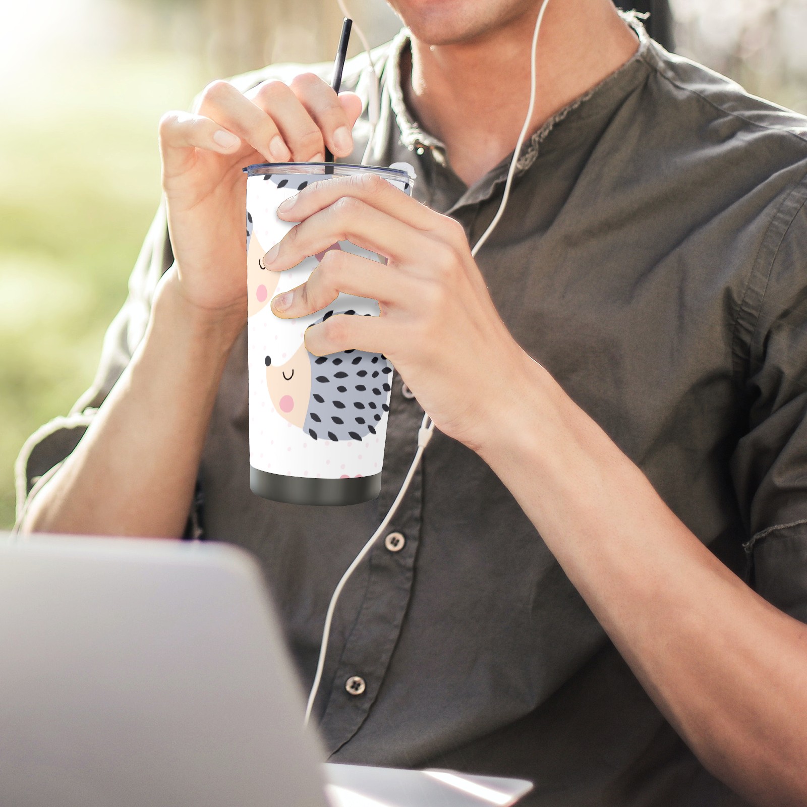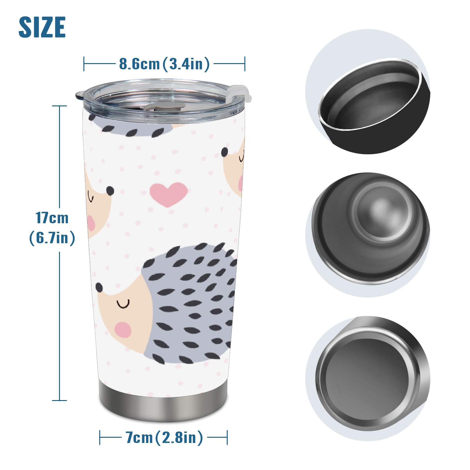20 oz Tumbler Cartoon Hedgehog Pattern Stainless Steel Insulated Tumbler with Lid Double Wall Vacuum Insulated Travel Mug Cup for Coffee Ice Hot Drinks