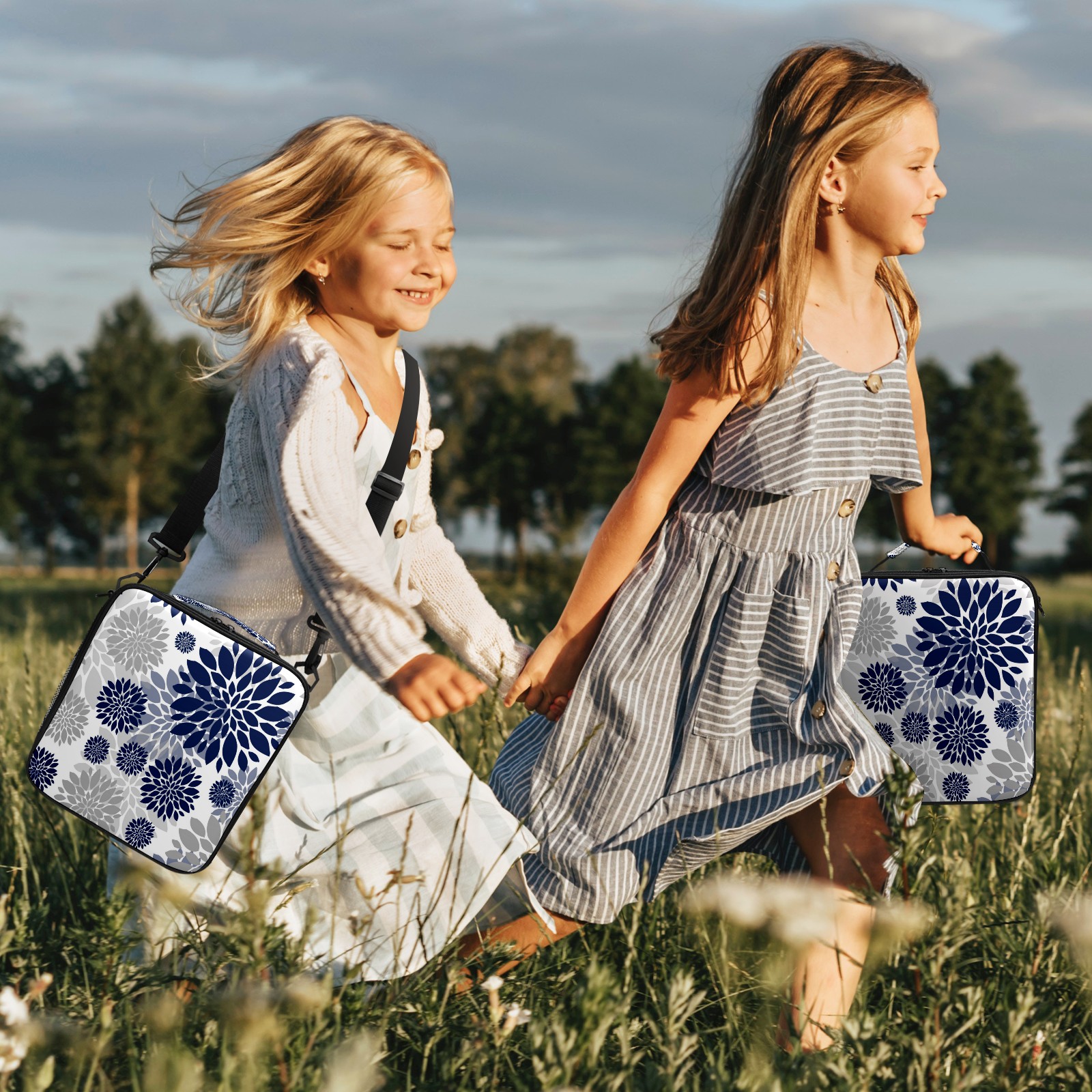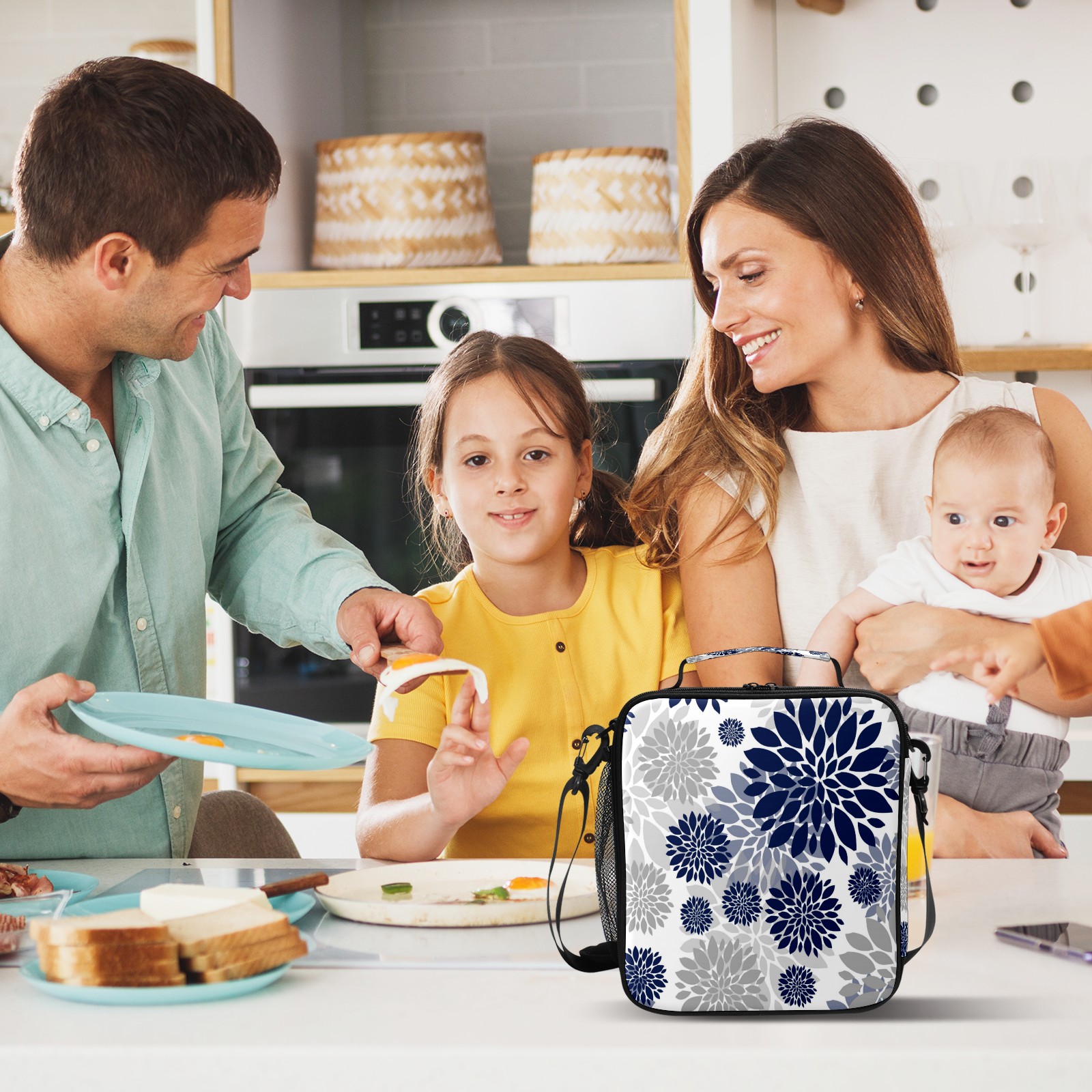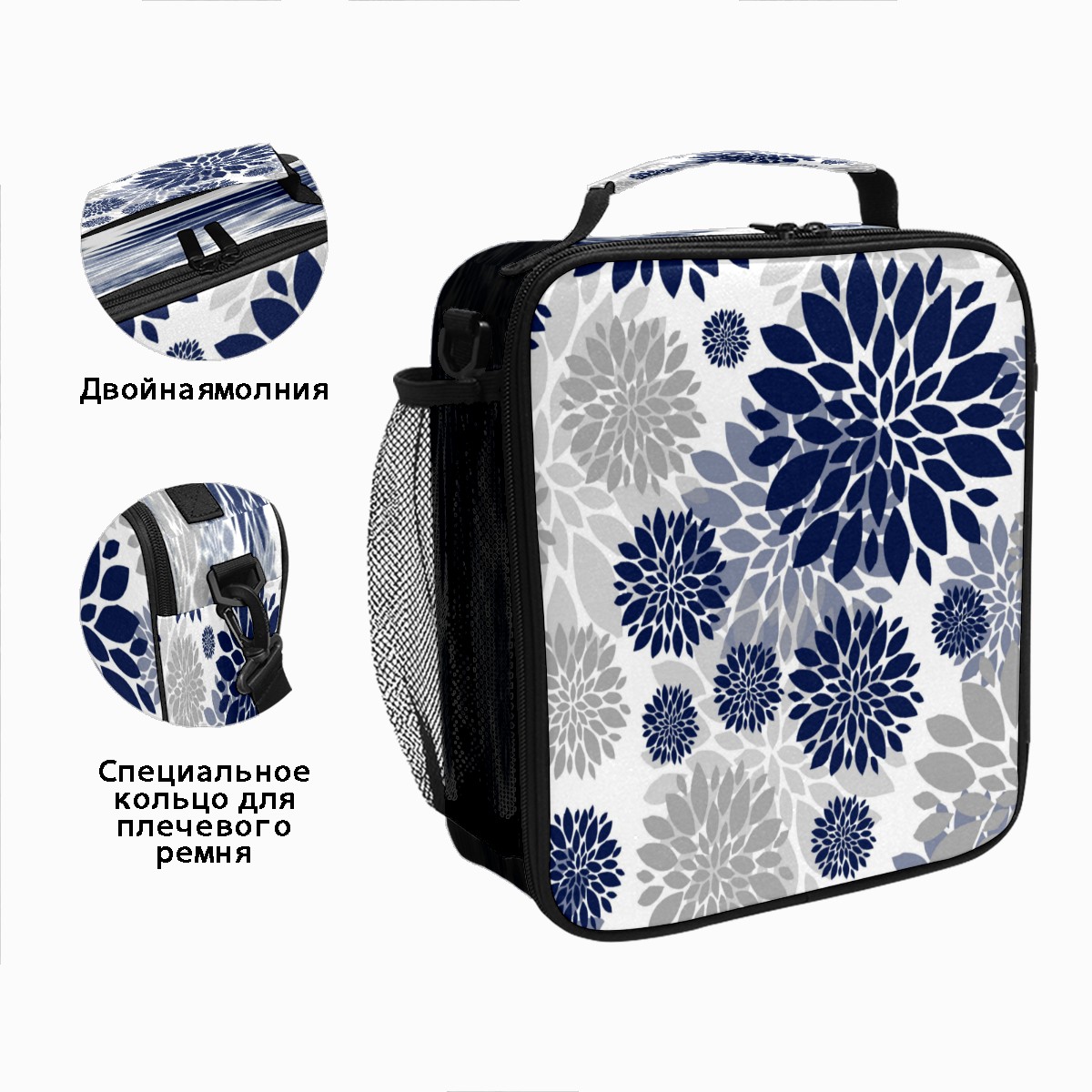 方形餐包 Navy Blue Gray Dahlia Flower Floral