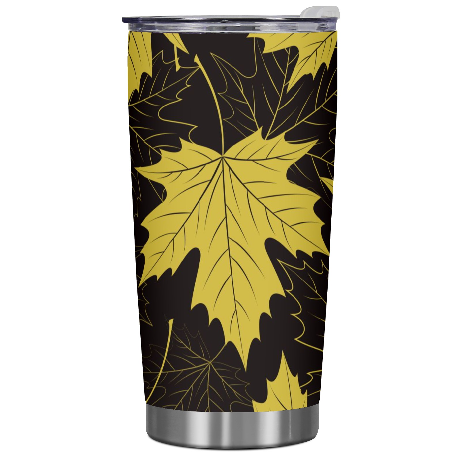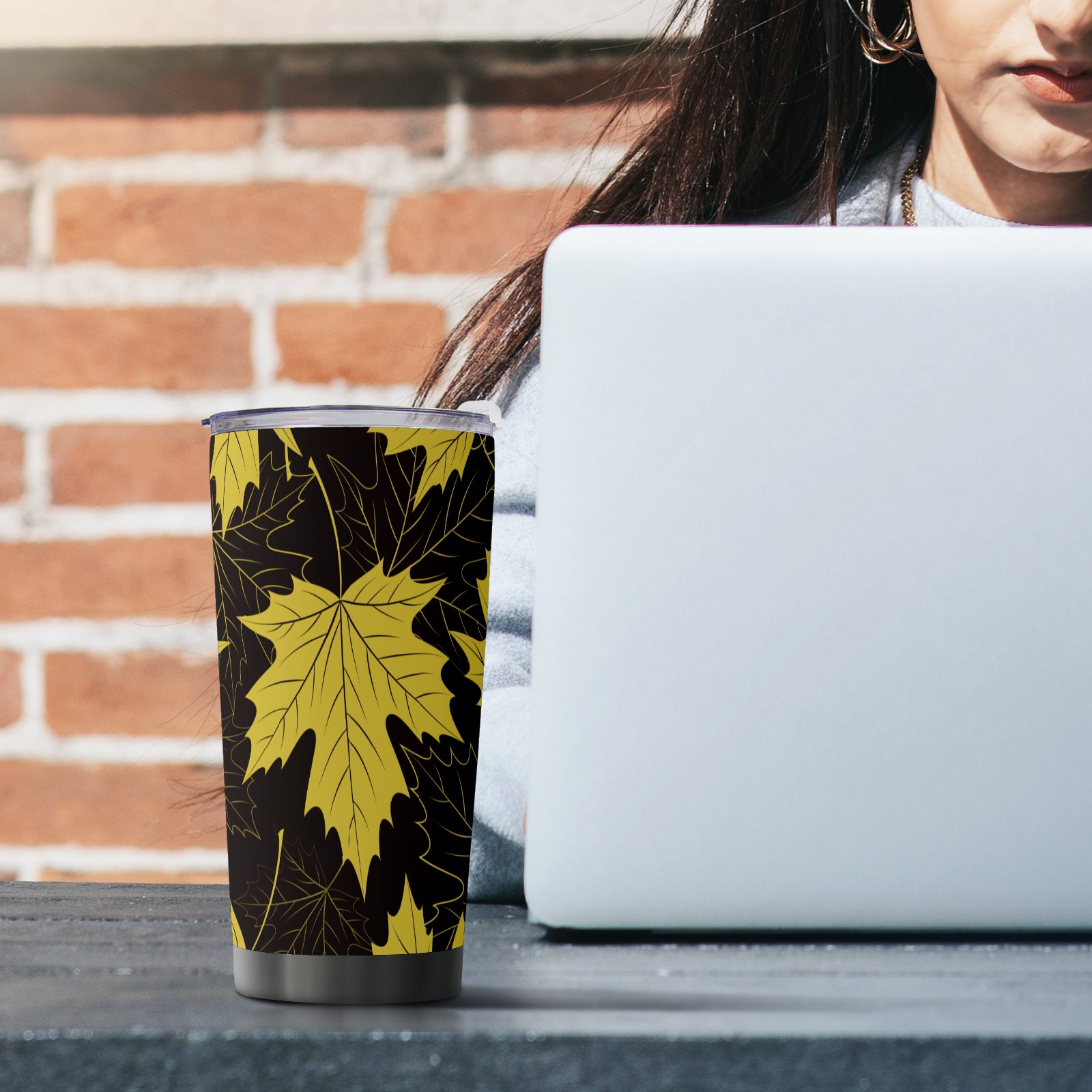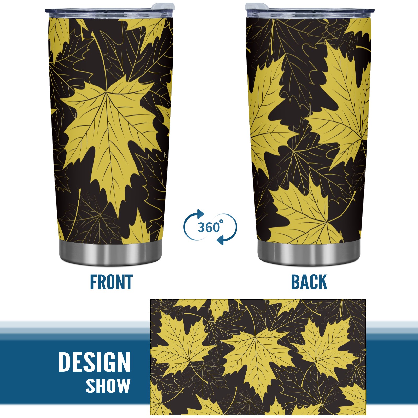 20 oz Tumbler Golden Maple Leaf Grey Pattern Stainless Steel Insulated Tumbler with Lid Double Wall Vacuum Insulated Travel Mug Cup for Coffee Ice Hot Drinks