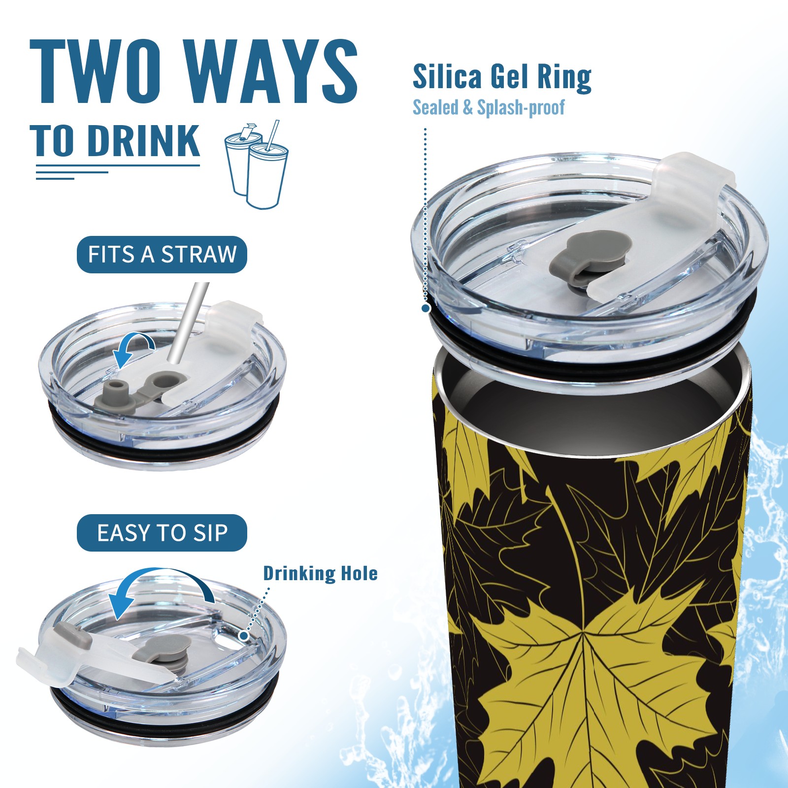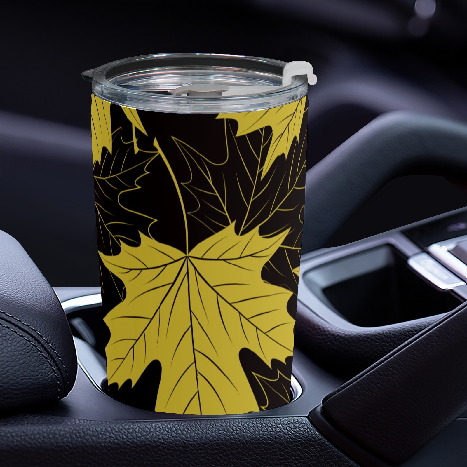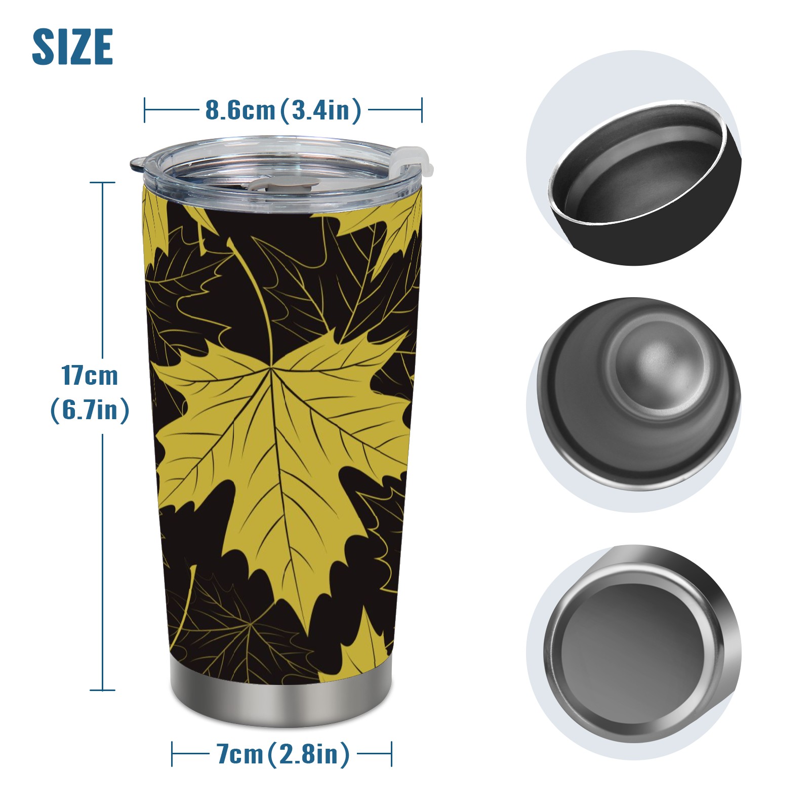 20 oz Tumbler Golden Maple Leaf Grey Pattern Stainless Steel Insulated Tumbler with Lid Double Wall Vacuum Insulated Travel Mug Cup for Coffee Ice Hot Drinks