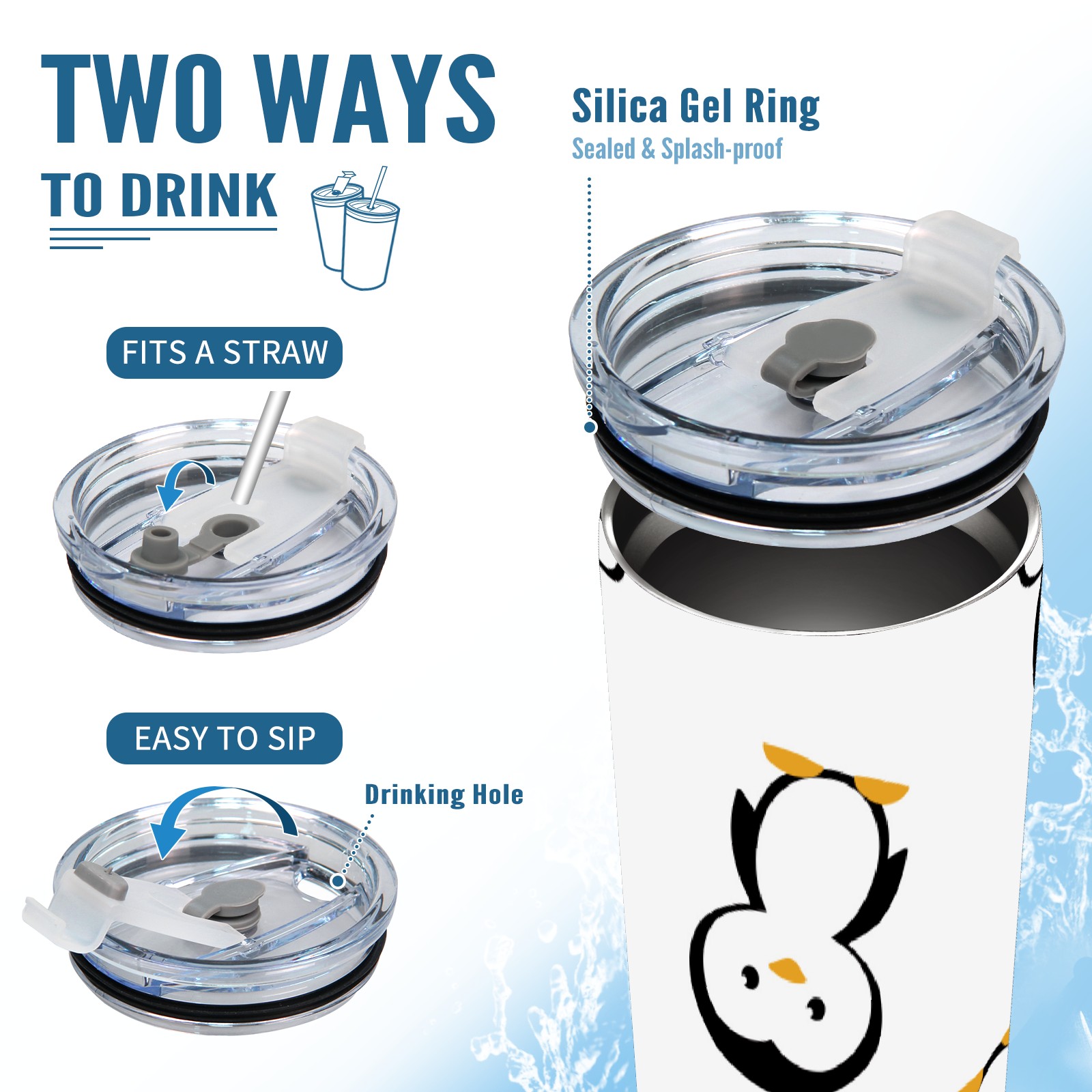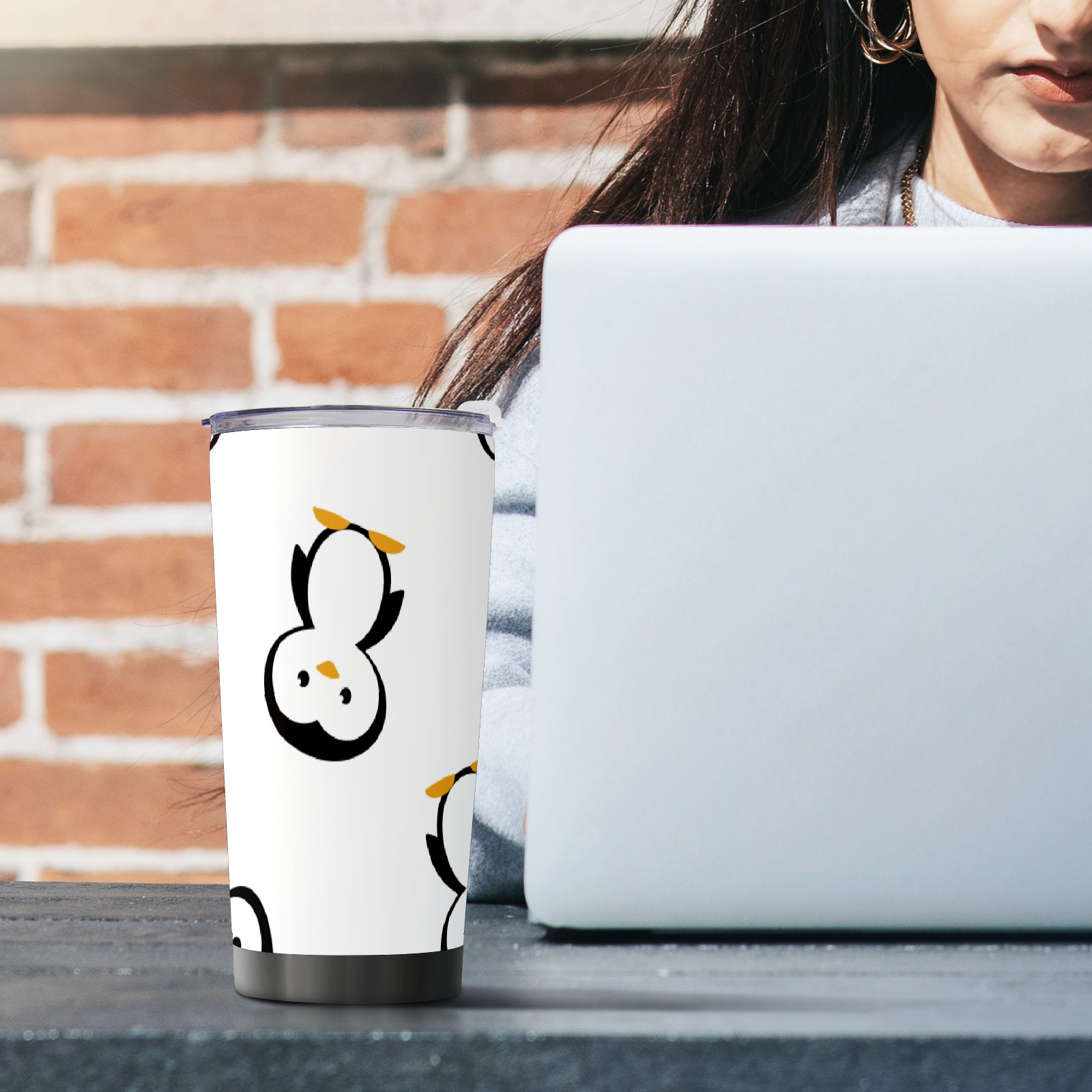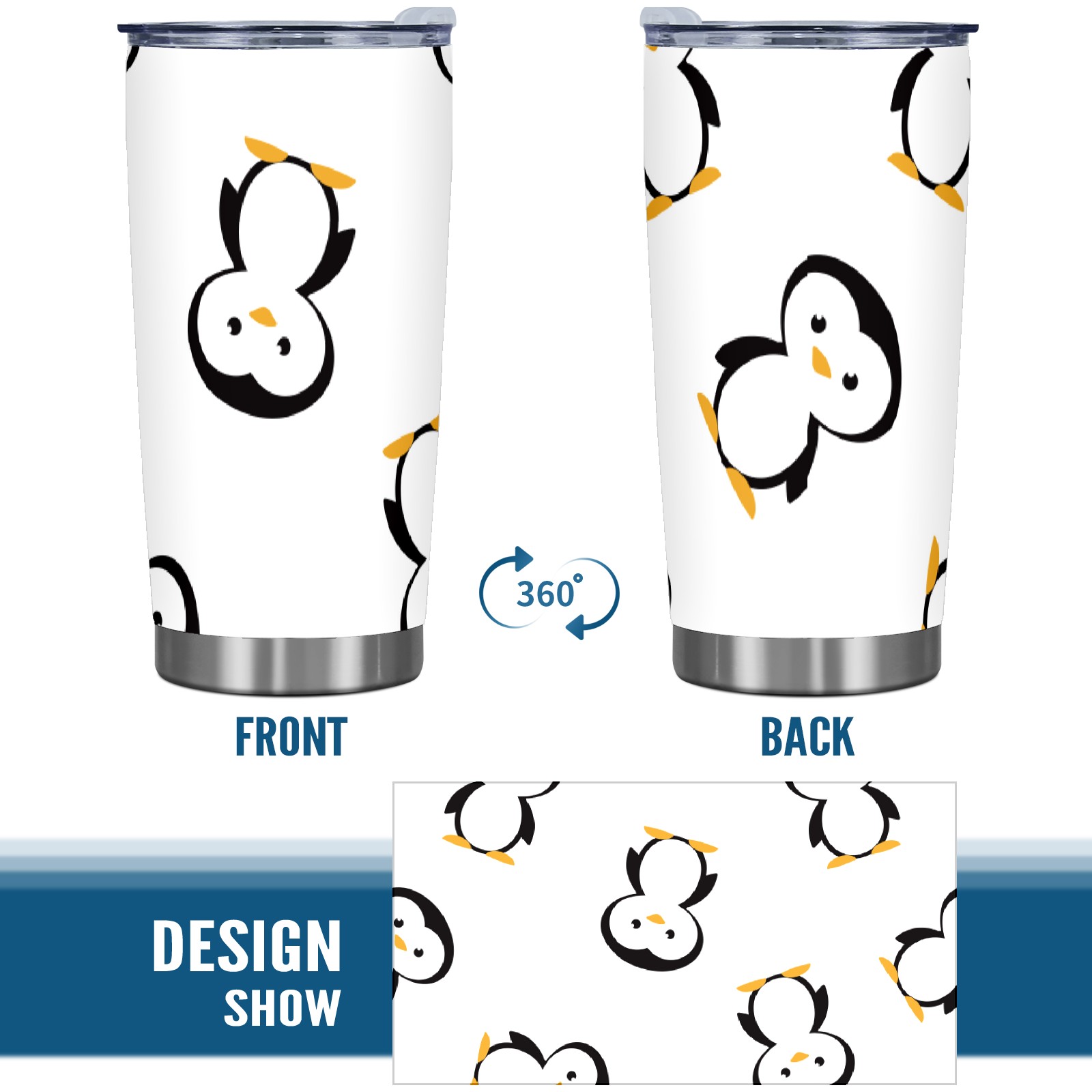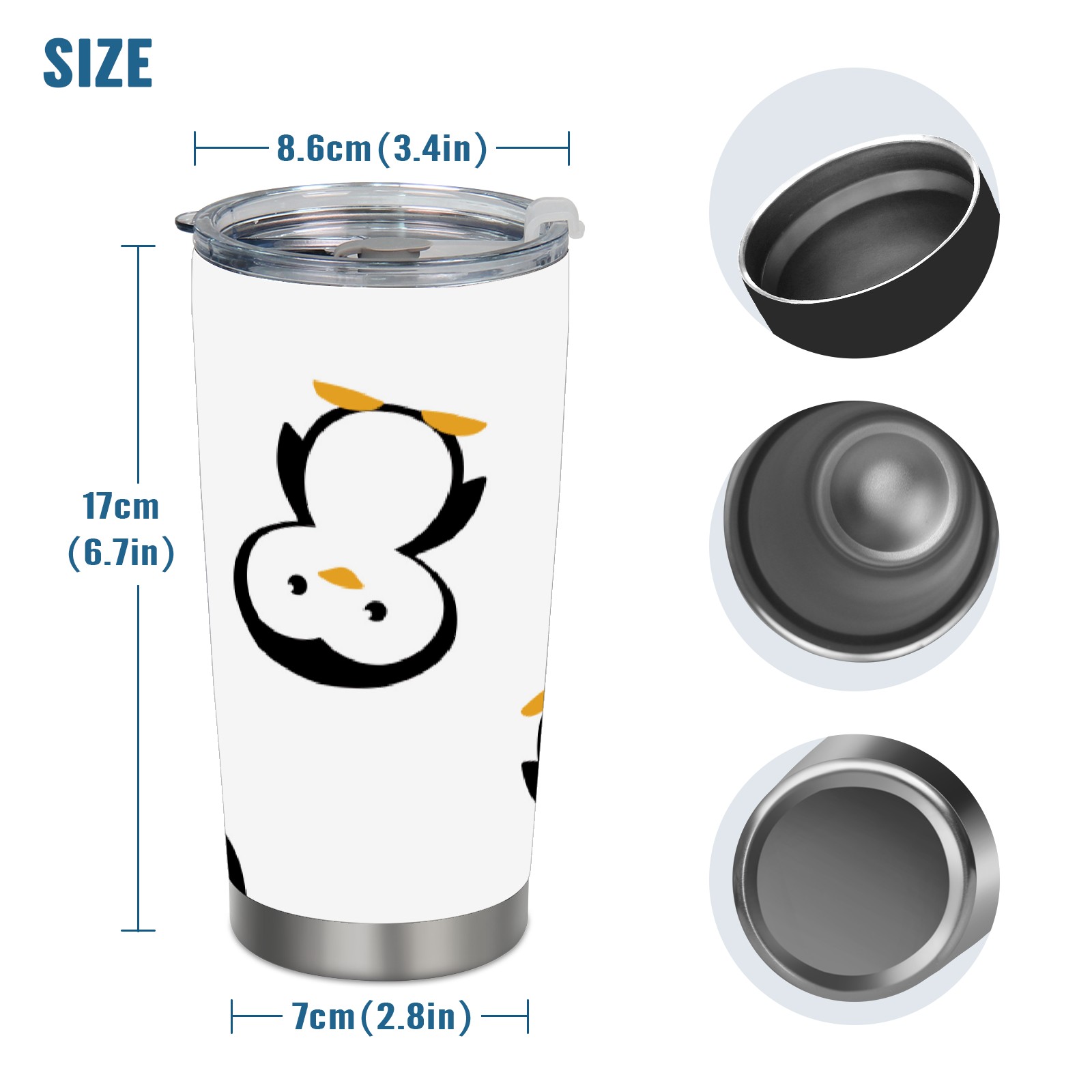 20 oz Tumbler Cute Penguin Cartoon Pattern Stainless Steel Insulated Tumbler with Lid Double Wall Vacuum Insulated Travel Mug Cup for Coffee Ice Hot Drinks