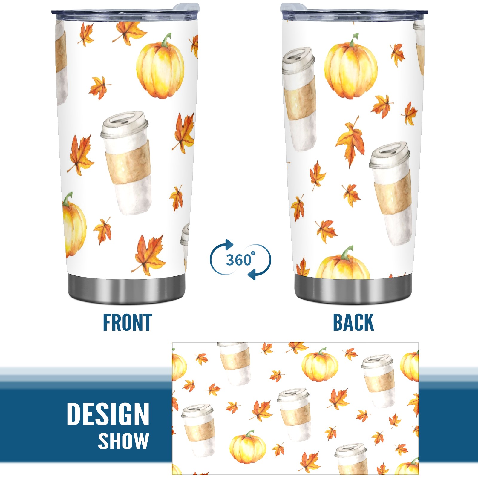20 oz Tumbler Coffee Pumpkin Maple Leaf Stainless Steel Insulated Tumbler with Lid Double Wall Vacuum Insulated Travel Mug Cup for Coffee Ice Hot Drinks