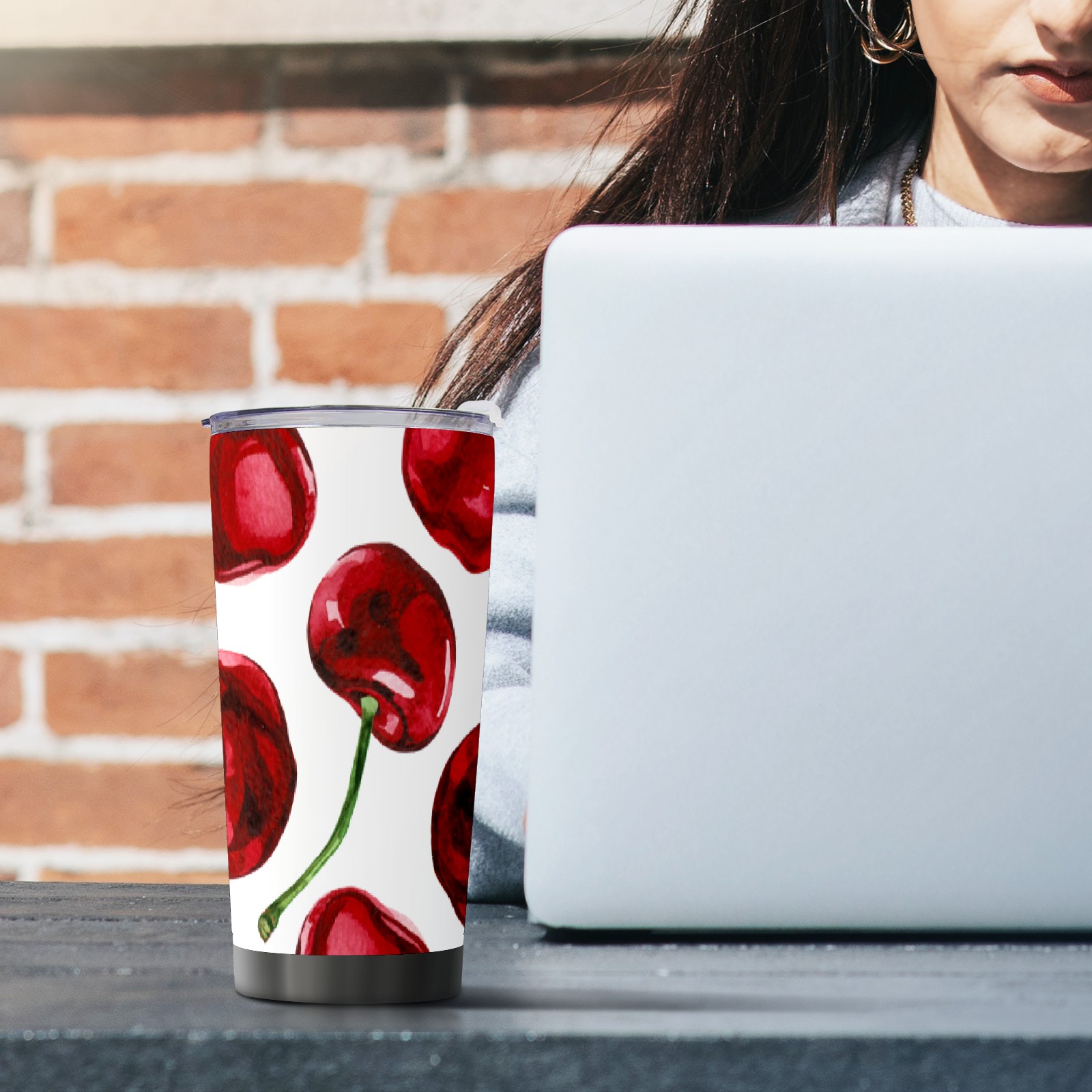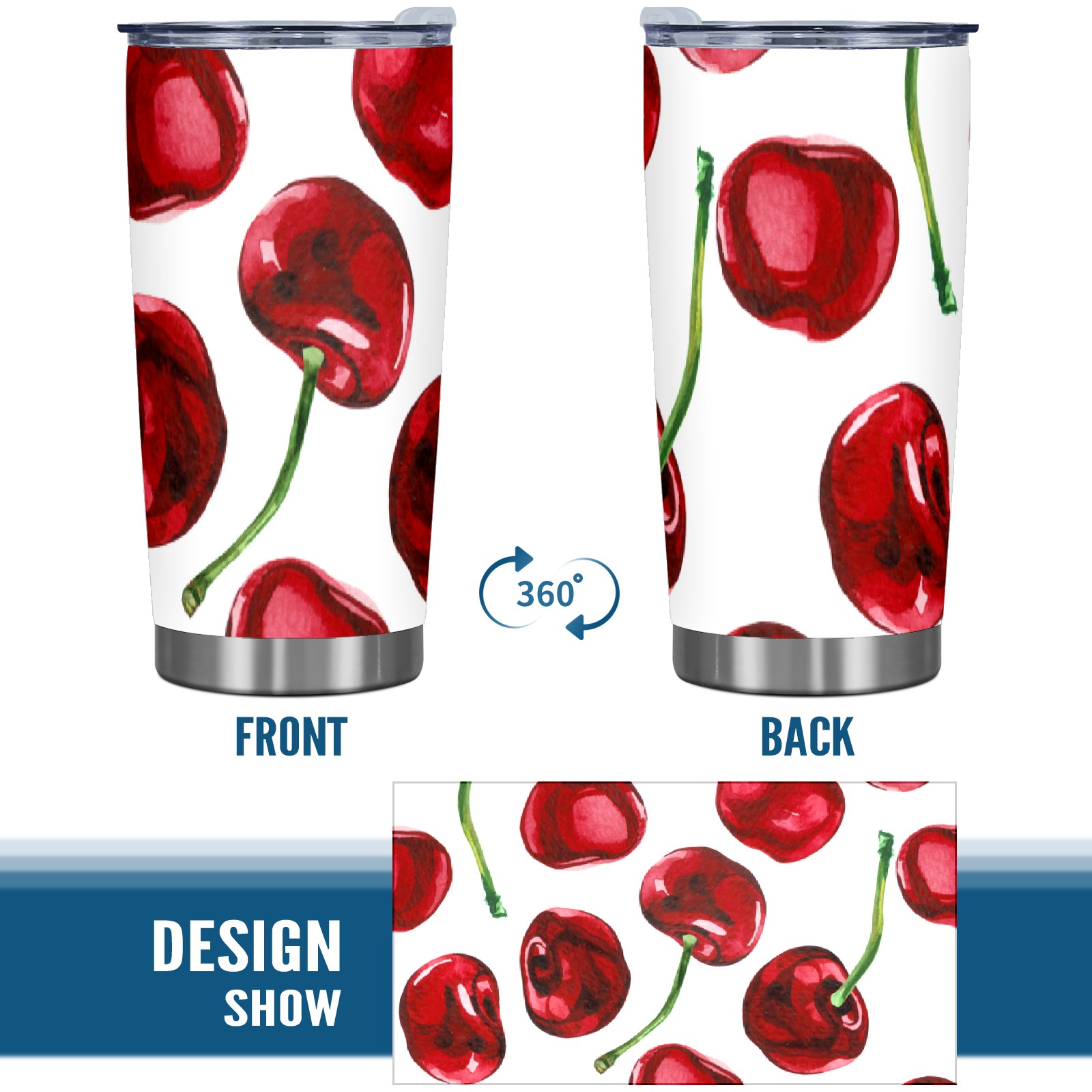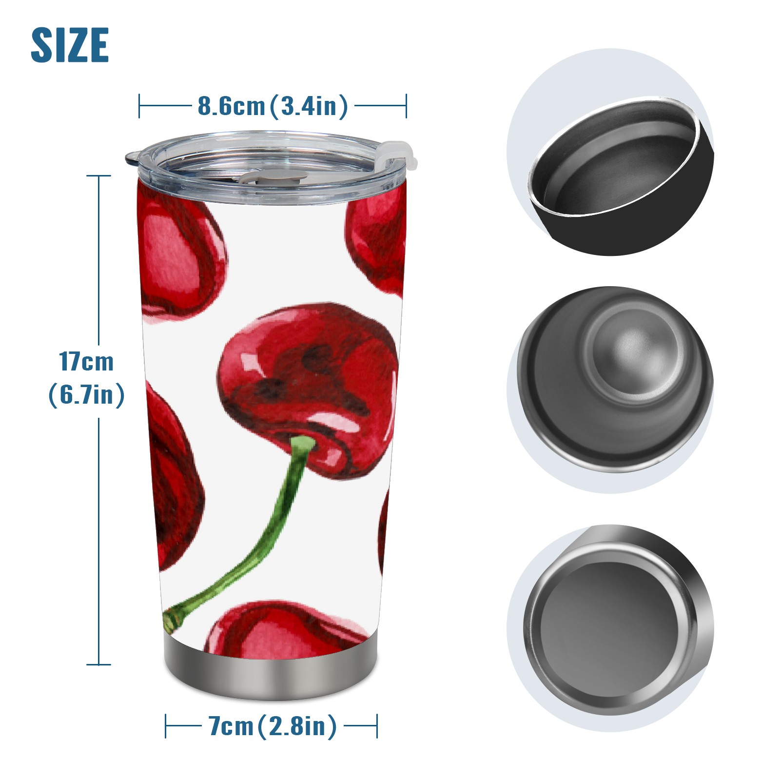 20 oz Tumbler Red Cherry Pattern Stainless Steel Insulated Tumbler with Lid Double Wall Vacuum Insulated Travel Mug Cup for Coffee Ice Hot Drinks